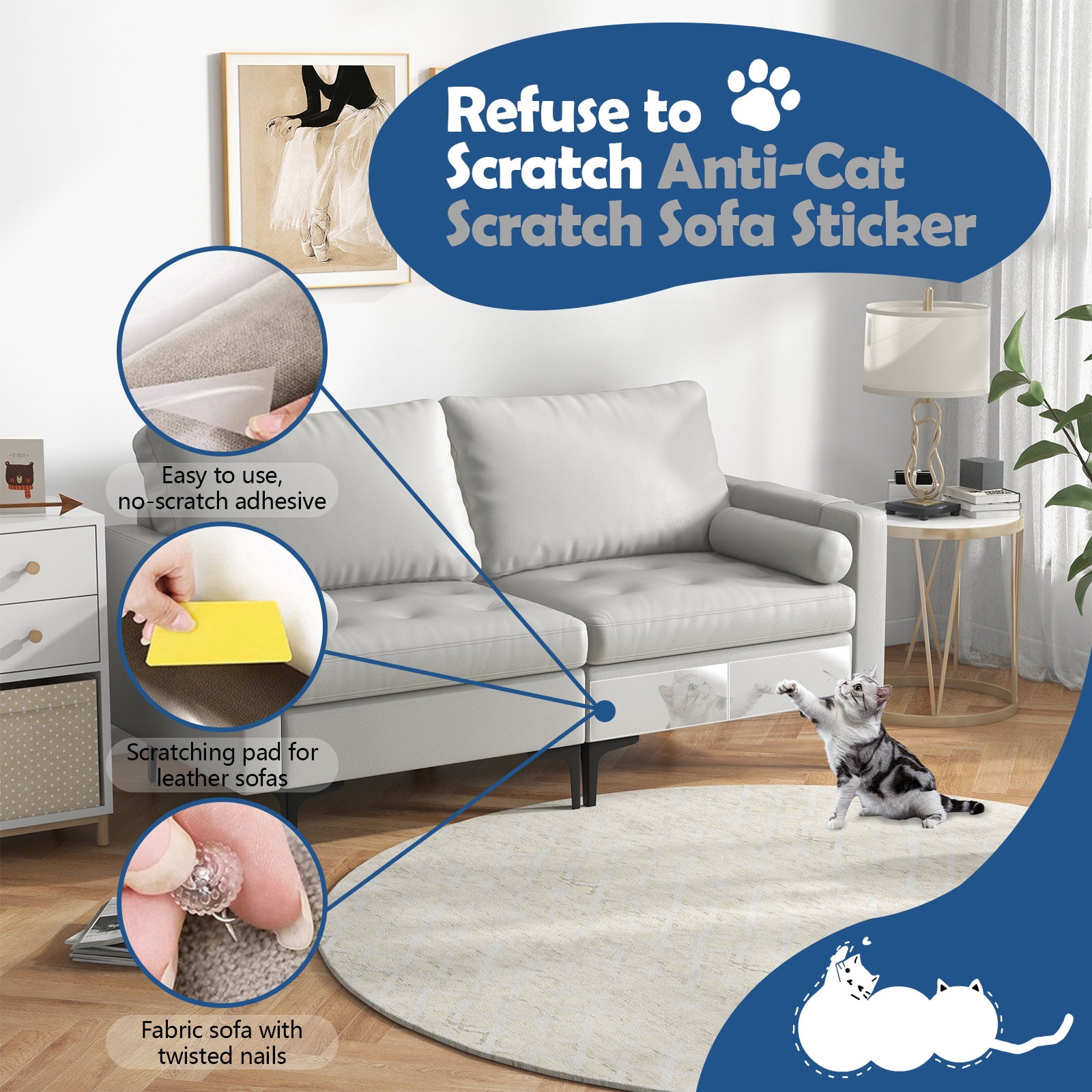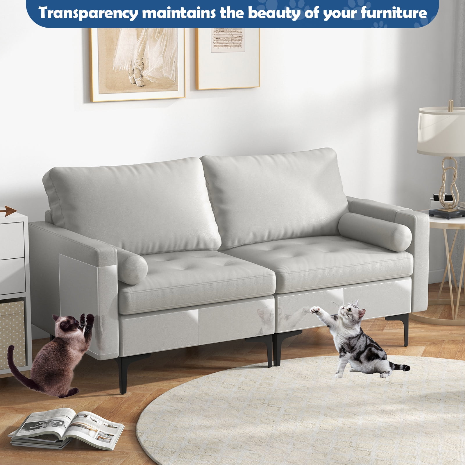 • 【Easy to Use】Our clear furniture scratch guards for cats are easy to use, you can use scissors to cut shape you want freely. They are self-adhesive, can be stuck firmly on your various of sofas, also easy to tear off without leaving glue.