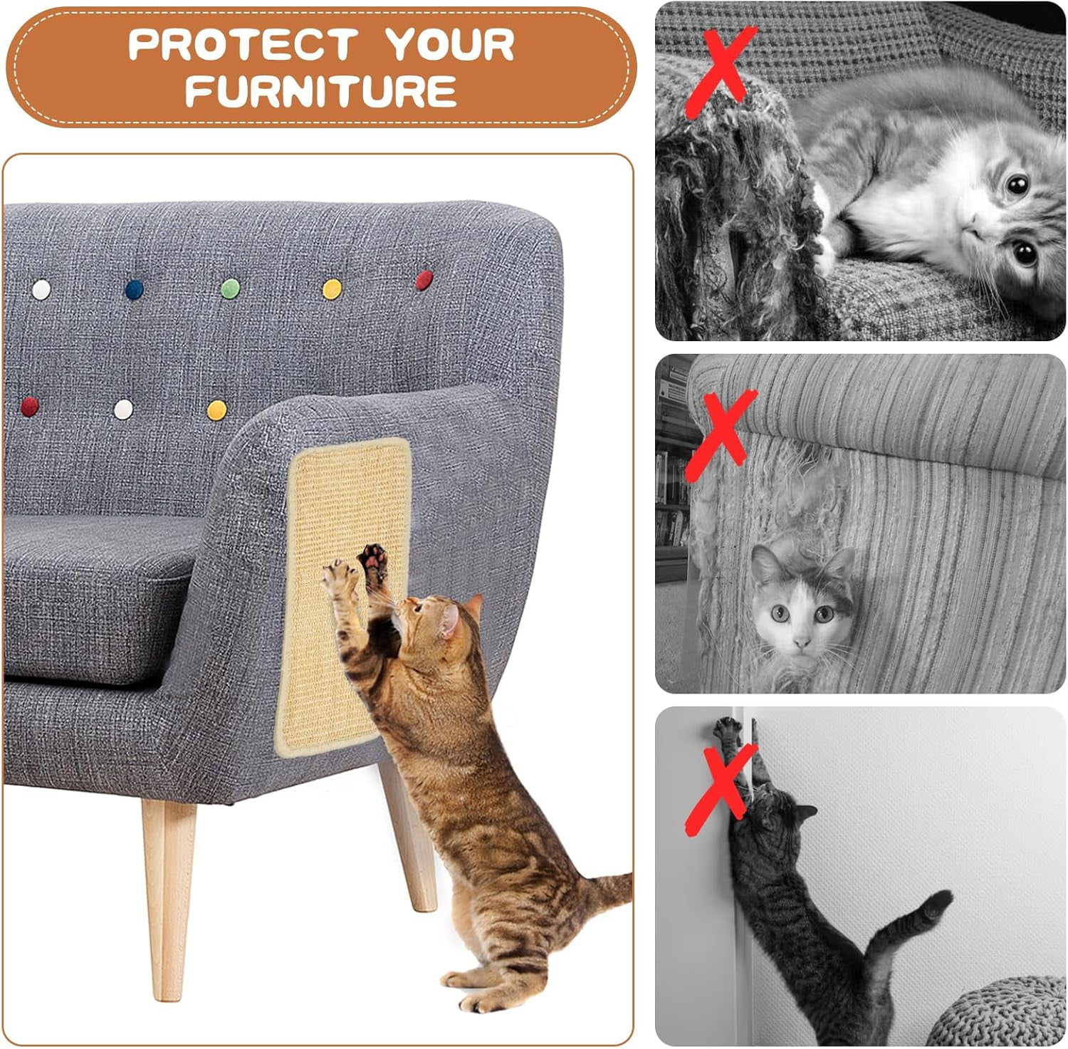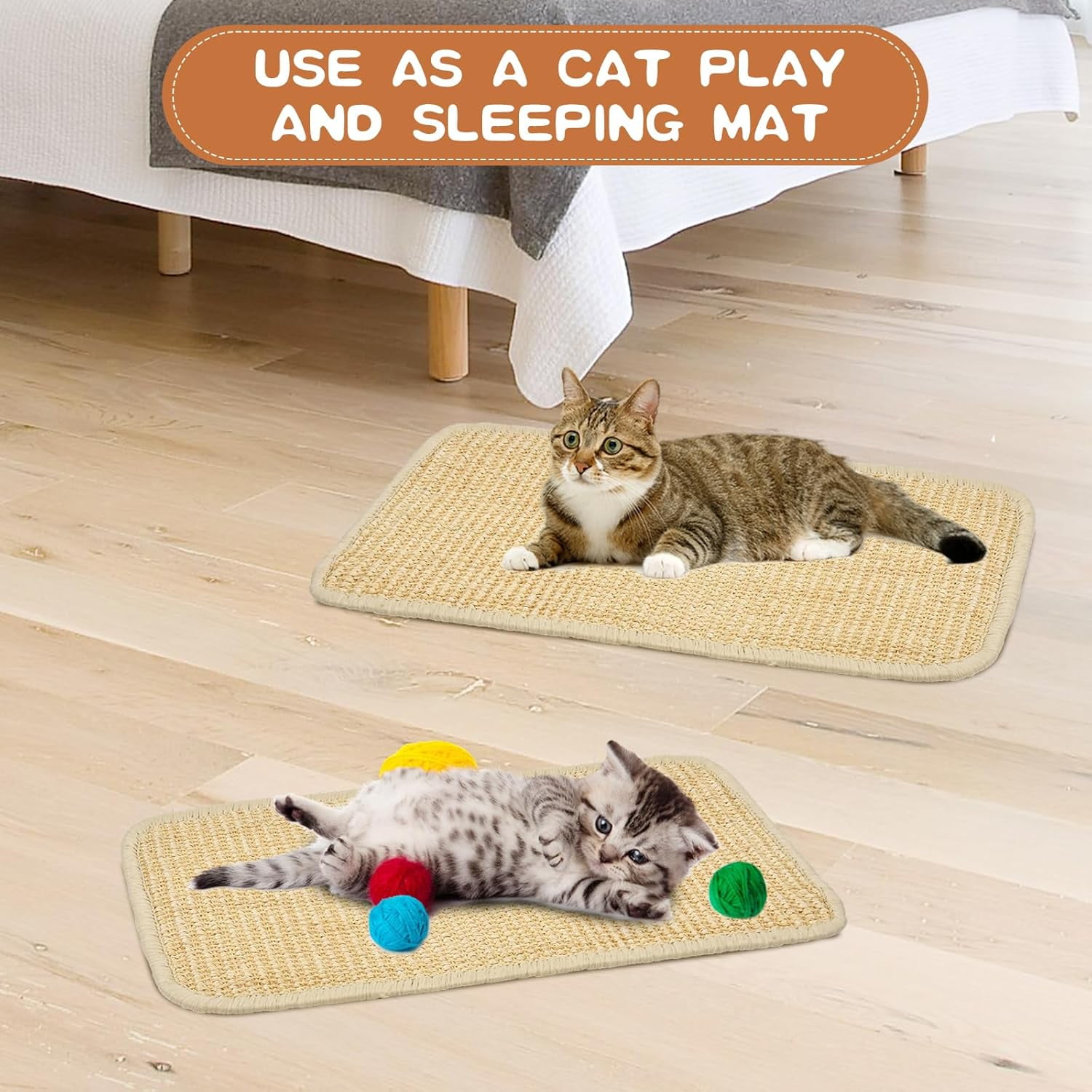 • GOOD PROTECTION: Cat can use the sisal scratch mat to grind the claws instead of scratching the furniture, perfectly protect our sofa, wall, chair, door and other furniture, and also help cat sharpen claws, relieve energy and stress, a good tool for cats’ health.
