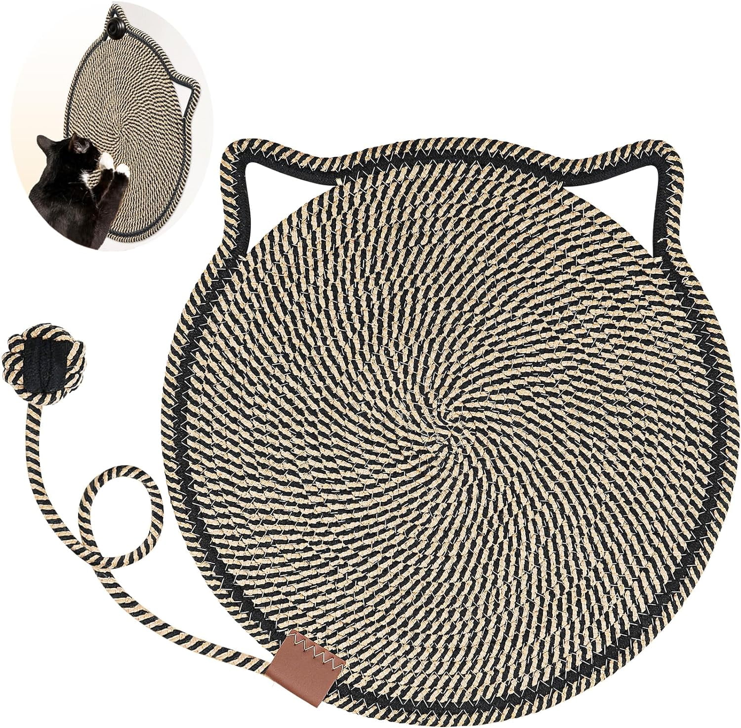 - Safe and Non-Toxic: Our new design cat scratcher mat is hand-made from 100% natural cotton rope material, the scratching surface is chemical-free, eco-friendly and non-toxic, ensuring the safety of your cat and the environment.