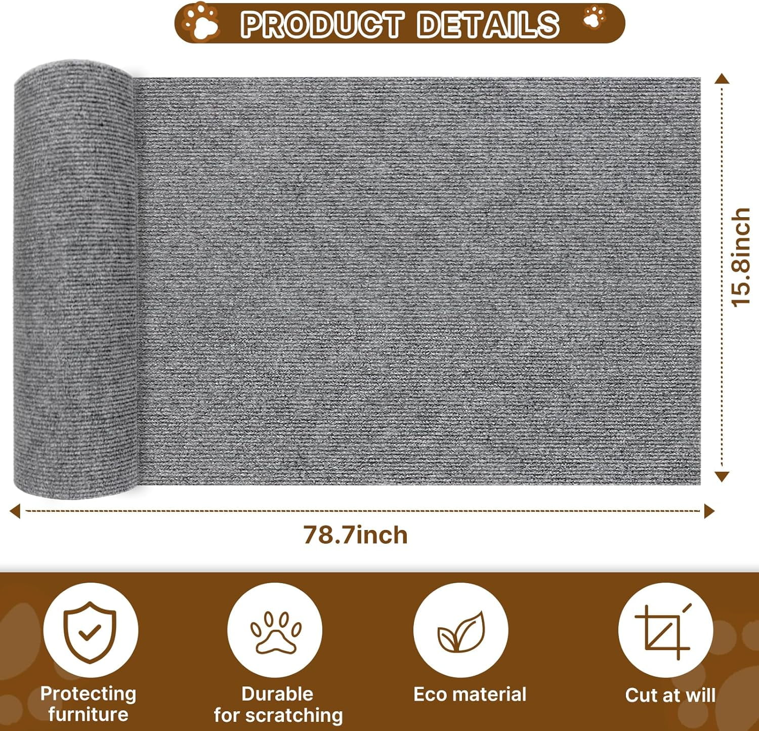 Cat Scratching Mat, 78.7″x15.7″ Trimmable Self-Adhesive Carpet, DIY Climbing Cat Scratcher for Replacement Pads Covering Posts Furniture Protection