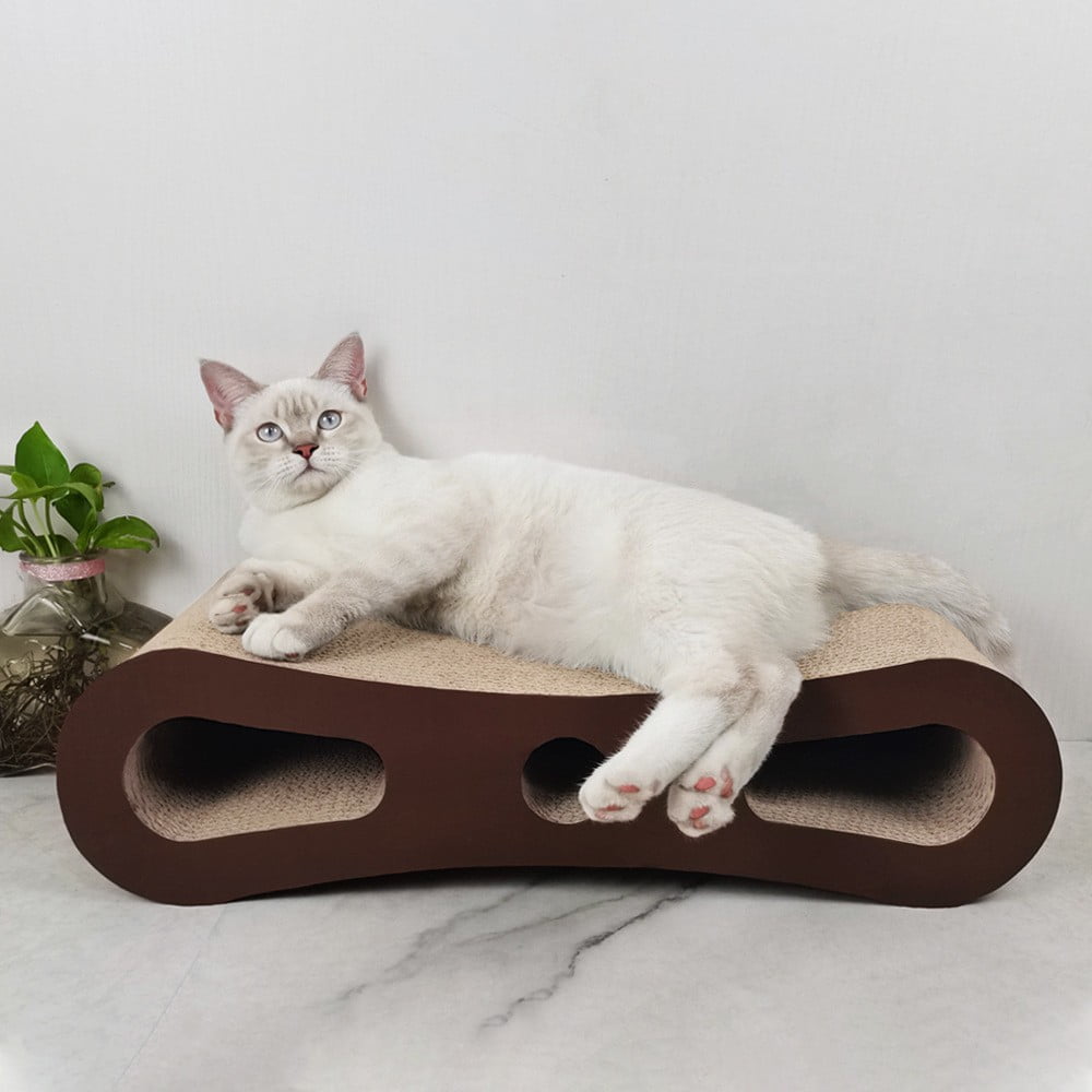 Cat Tunnel with Hole, Large Coffee Color Figure-8 Cat Scratcher Board for Grinding Claws Scratch Resistant & Durable