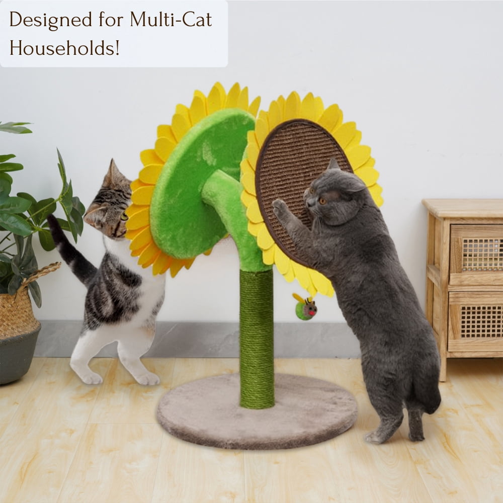 Catry 26″ Sunflower Cat Scratcher with Replaceable Sisal Post, Double Jute Scratching Pads, for Multi-cat Home