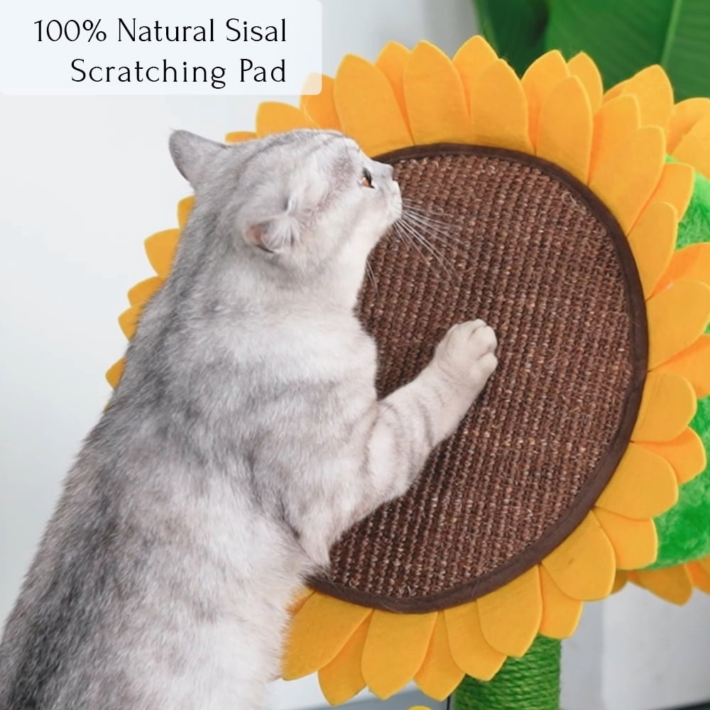- AESTHETICALLY DESIGNED CAT SCRATCHER! Brightened up your home with this cute cat scratcher designed as adorable sunflowers! The scratching pads are cleverly designed as part of the sunflower while the scratching post is made as the stem of the flower.