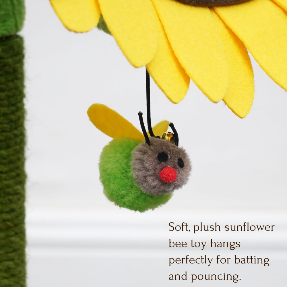 - FUN STRETCHING! This flower cat scratcher has a connected dangling toy that entices your cat by providing great joy and stimulating time to play for your kitty while you are away.