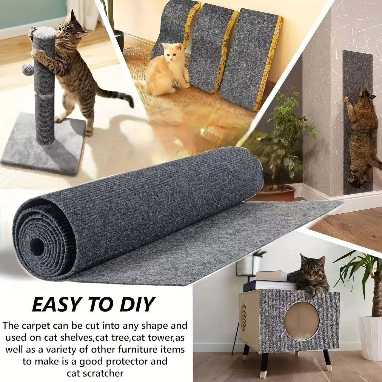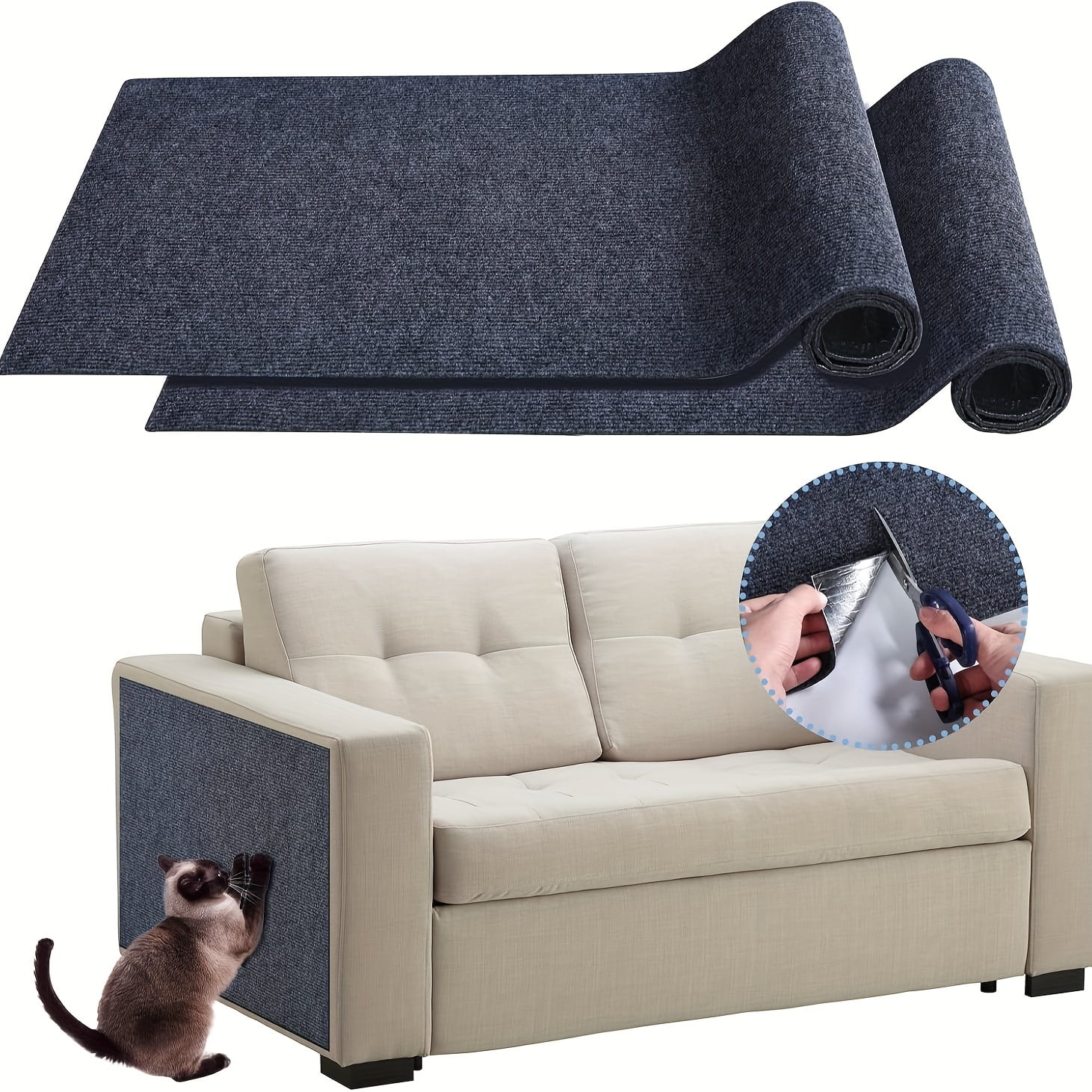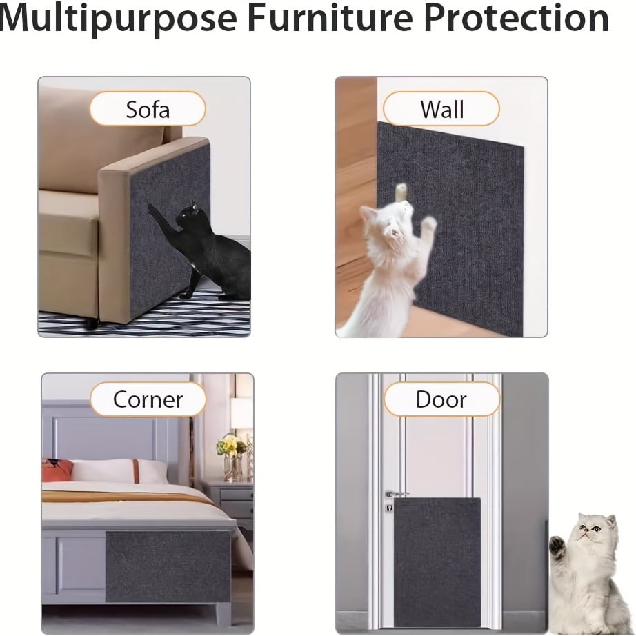 • Custom-Fit Cat Scratch Mat Furniture Protector This cat scratch material is trimmable and flexible, making it ideal for any space-sofa arms, corners. Simply cut to size for full coverage and long-lasting protection from claw mark