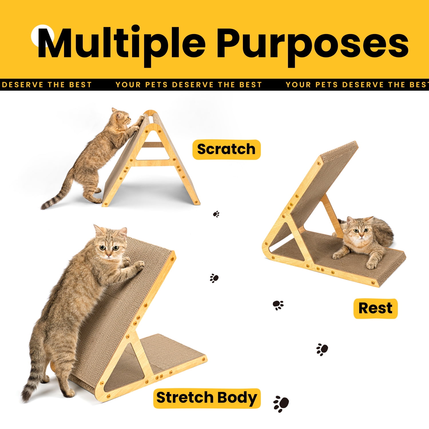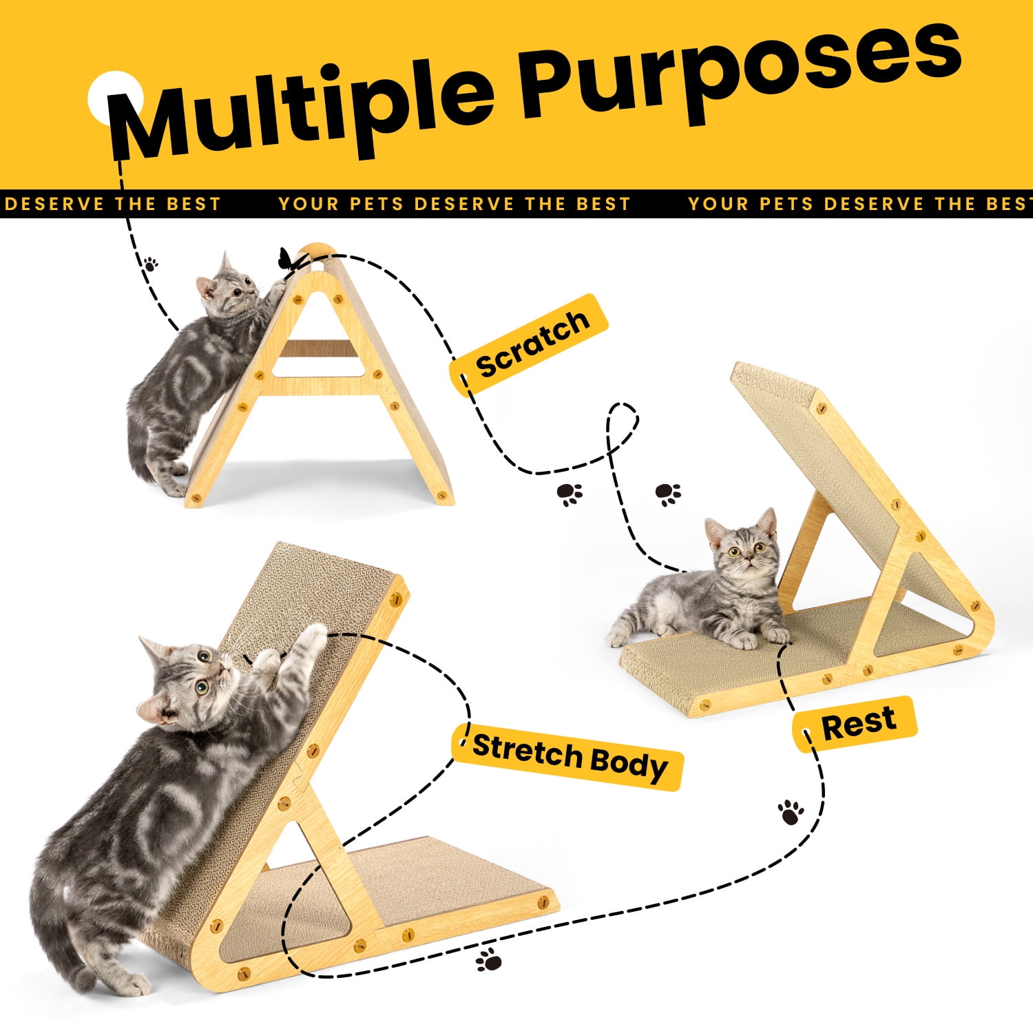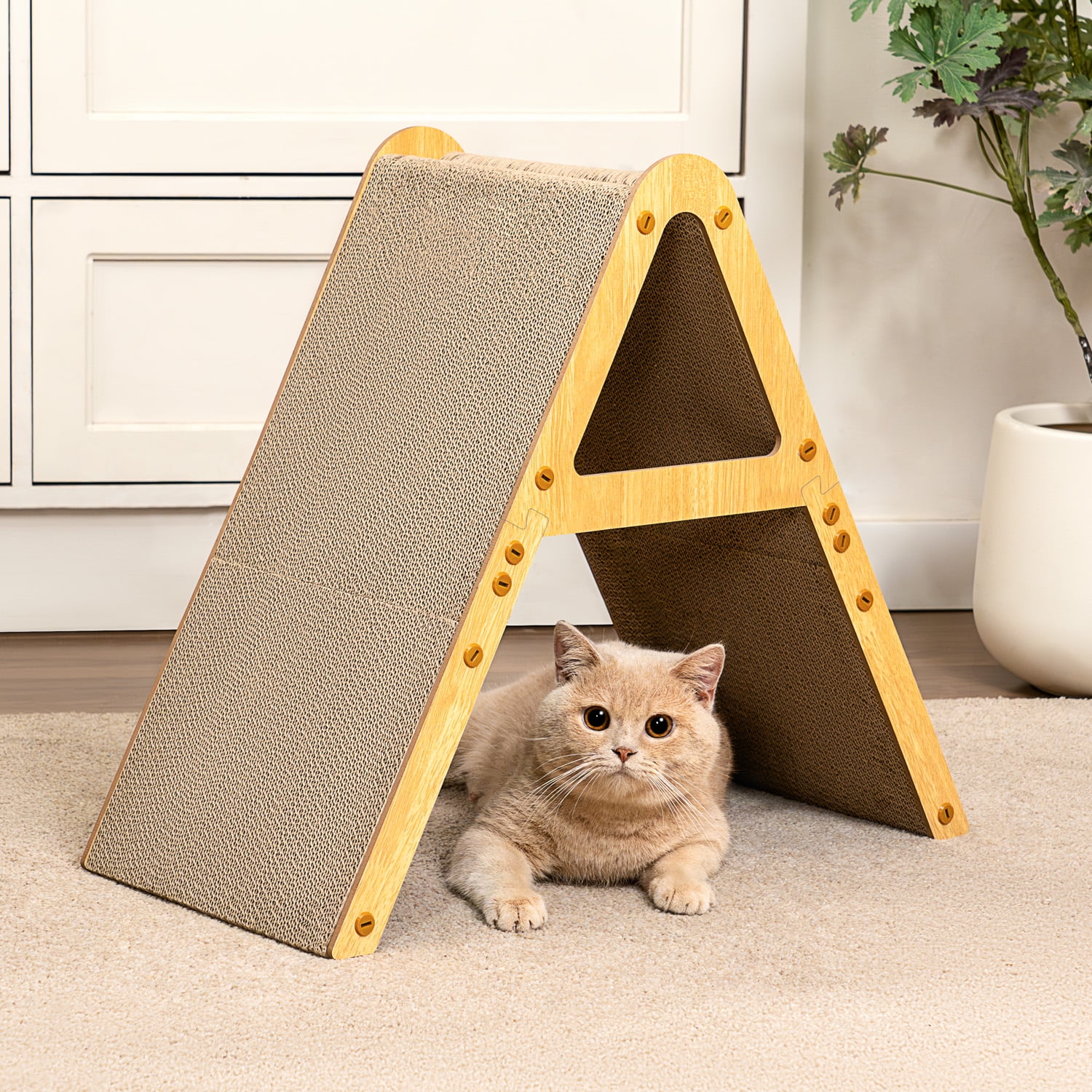 - 【3-IN-1 VERSATILE DESIGN】: Tired of boring flat pads? This A-frame cat scratcher offers 3 distinct angles: vertical , horizontal (flat), and a semi-reclined lounge mode. Whether your kitten loves to stretch, scratch, or nap, this dynamic design keeps them engaged and entertained far longer than standard boards.