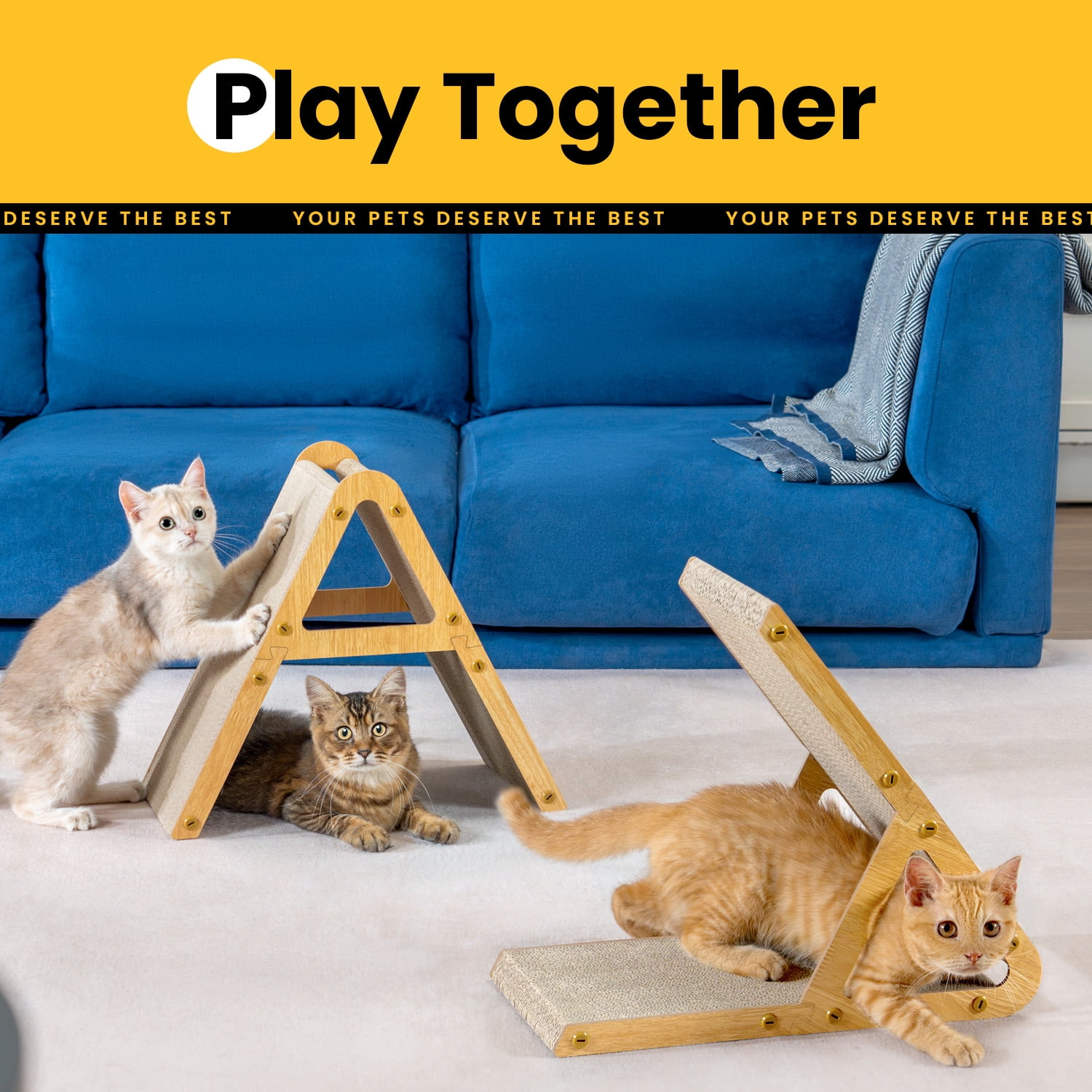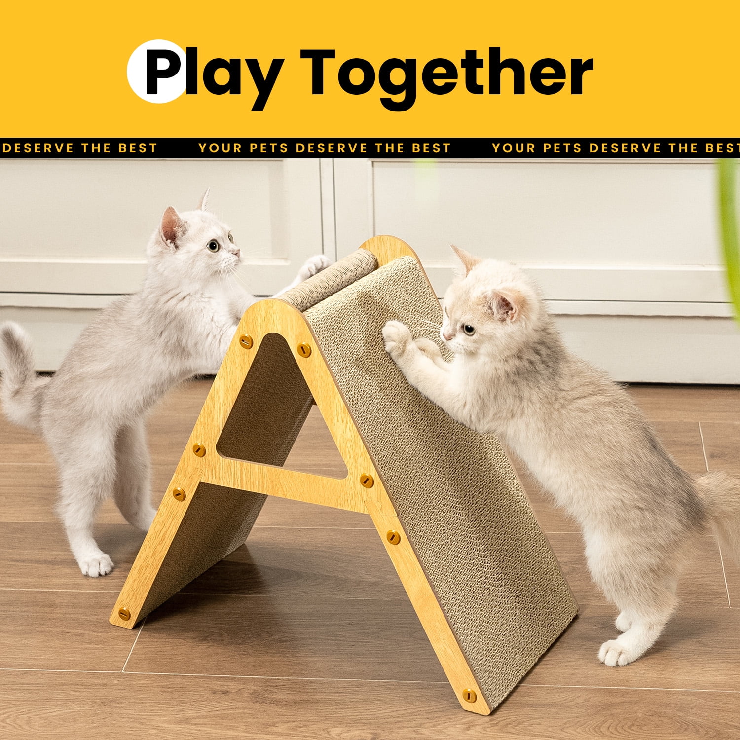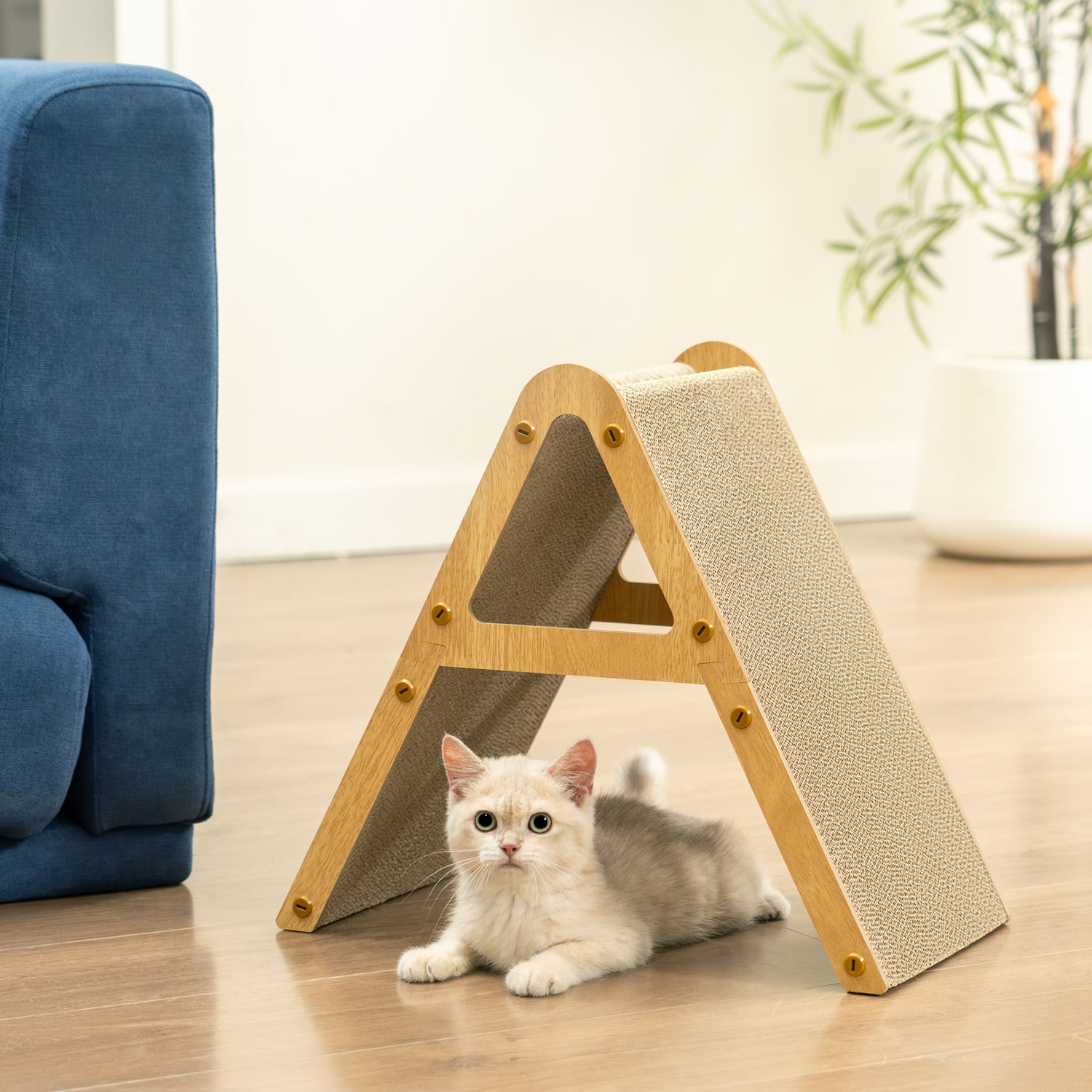 - 【3-IN-1 VERSATILE DESIGN】: Tired of boring flat pads? This A-frame cat scratcher offers 3 distinct angles: vertical , horizontal (flat), and a semi-reclined lounge mode. Whether your kitten loves to stretch, scratch, or nap, this dynamic design keeps them engaged and entertained far longer than standard boards.