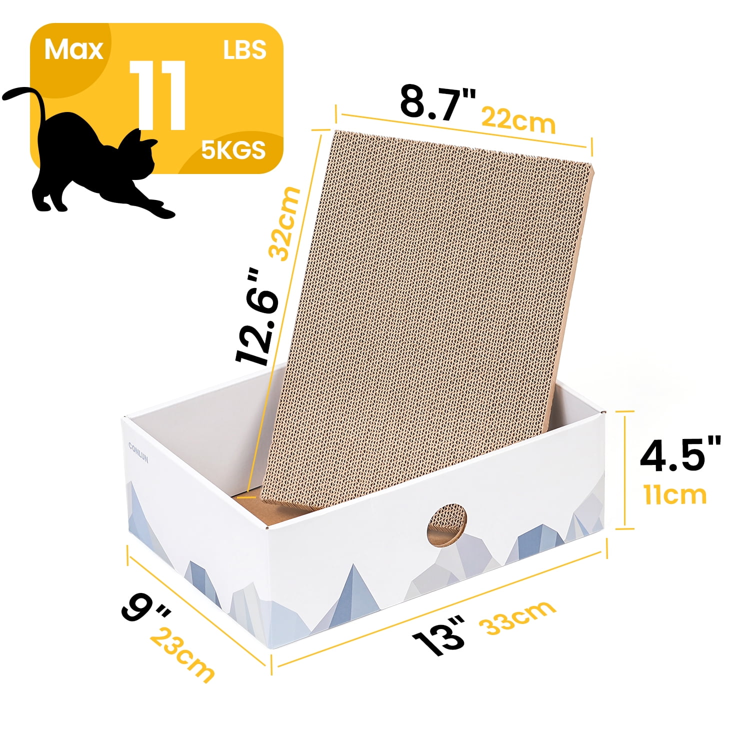 Conlun Cat Scratcher Box with Cat Scratching Pad,Double-Sided Cardboard Lounger,Cat Bed for Indoor Cats Interactive Hole Design,Medium