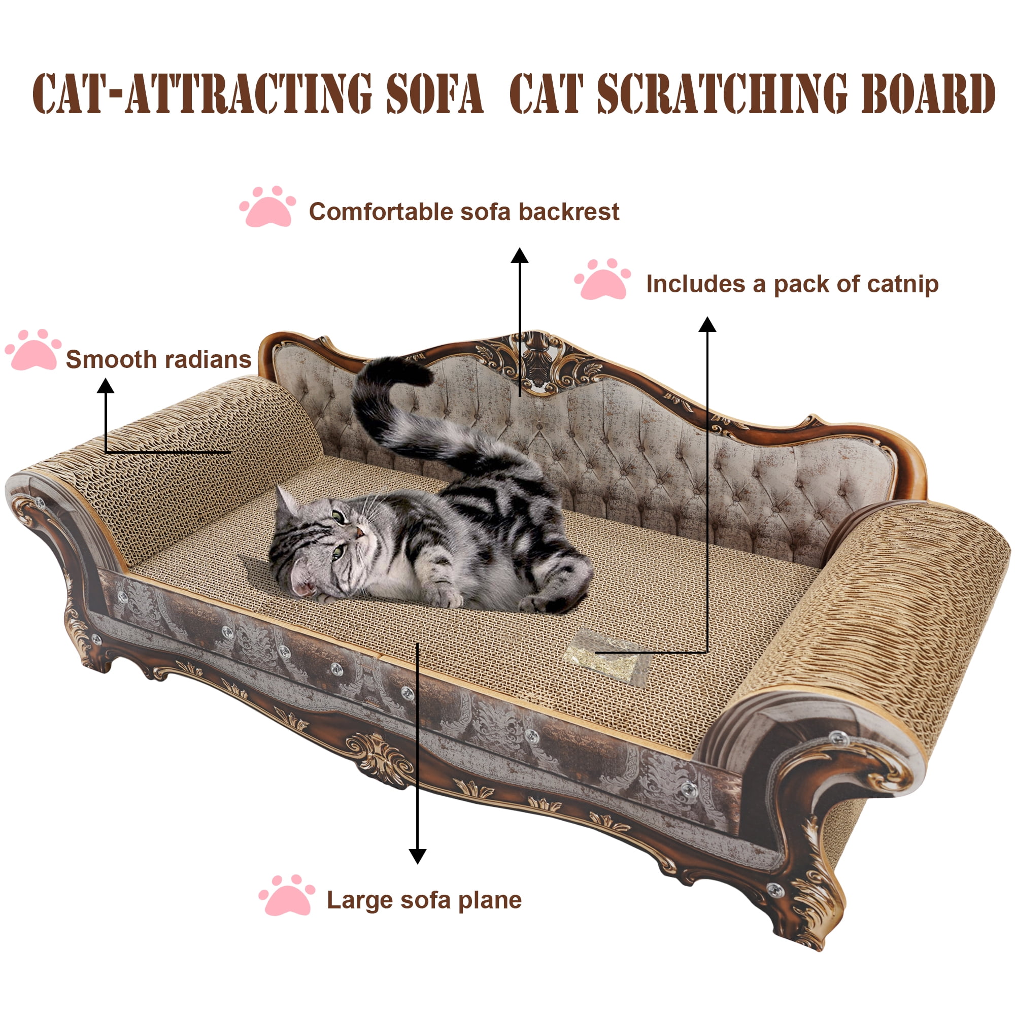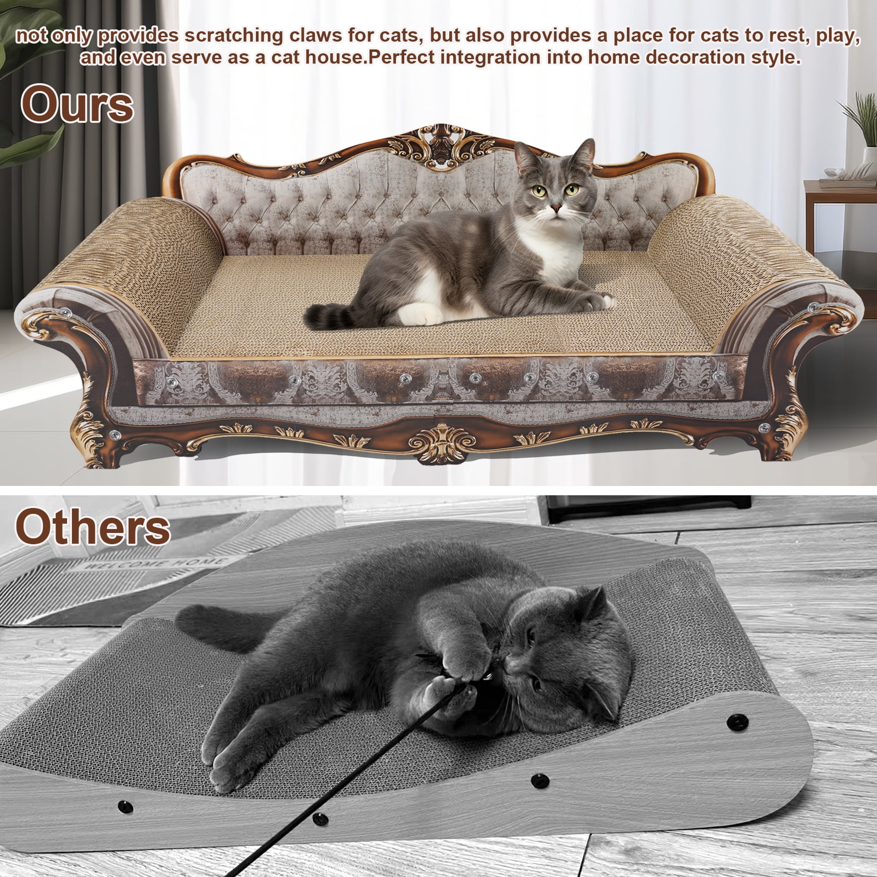 • Cat Scratching Toys: This premium cardboard cat sofa provides a good scratching field for cats, with large space for multiple cats to sleep, play, roll around and scratch on the sofa.