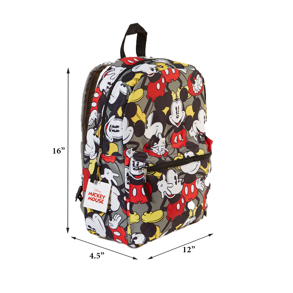 - Eye-Catching Print: Features an all-over print of Mickey Mouse on the front, sides, and straps, making it a fun addition to school and travel essentials.