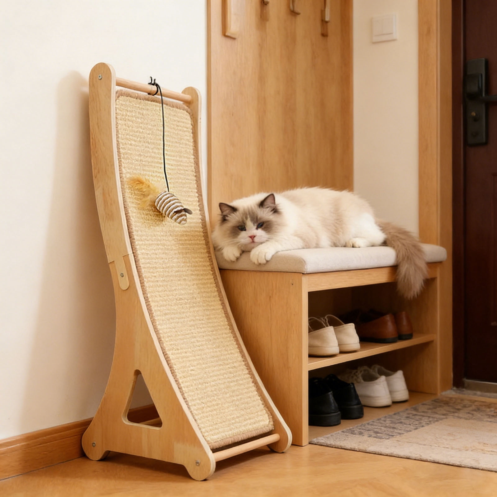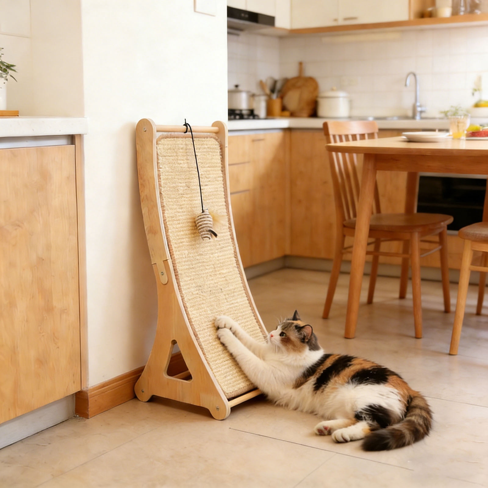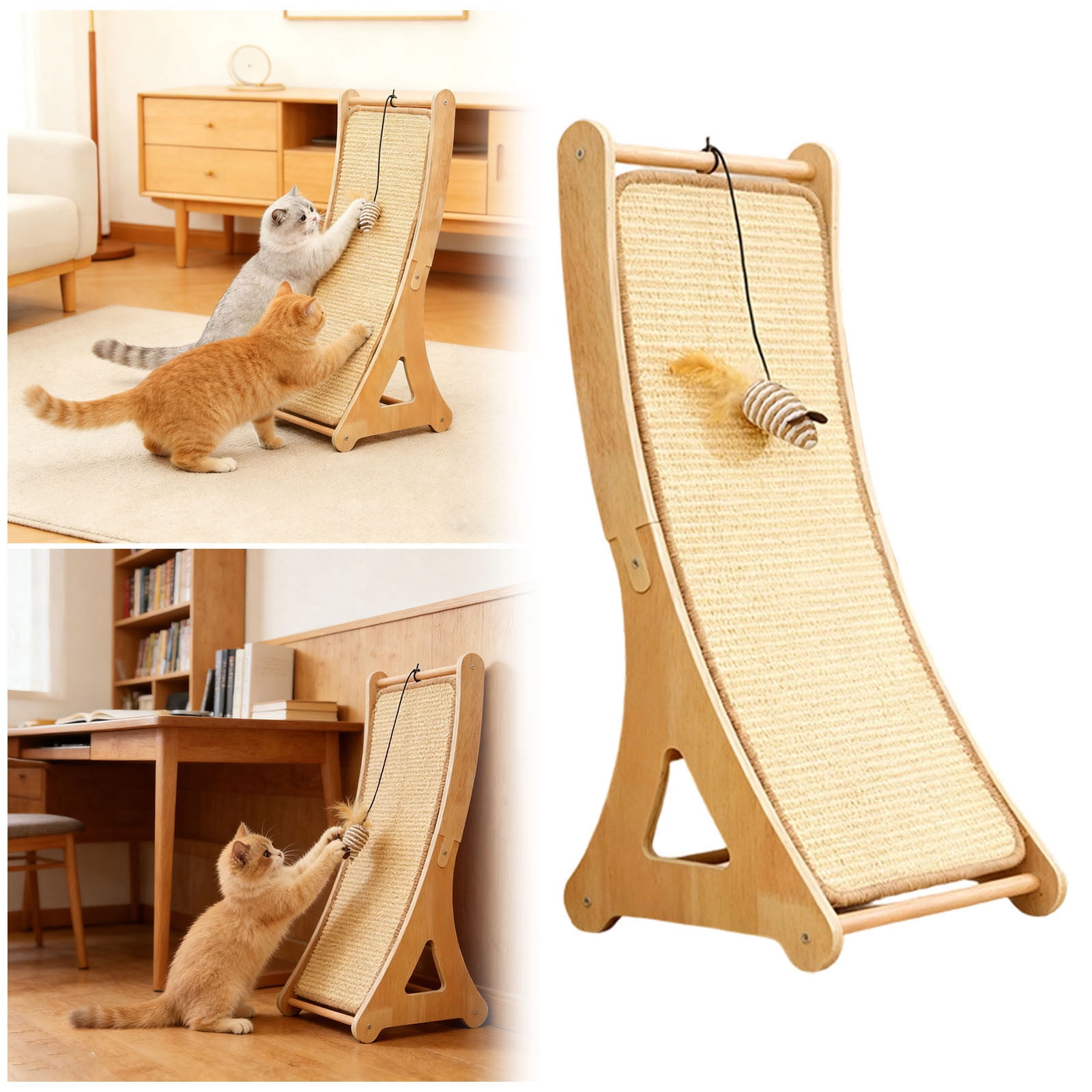 Durable Cat Scratcher With Natural Sisal Design Features: Crafted from sturdy natural material providing a durable and satisfying for cats to scratch and maintain Designed to fulfill indoor cats natural scratching instincts helping your carpets and home from damage an play solution to keep your feline companion entertained stimulated and mentally occupied during the day Stable and construction the scratcher stays firmly in place during vigorous scratching and playful activities An for cat owners promoting positive behavior and contributing to your cats overall well-being and happiness Product Description: Durable cat scratcher with natural sisal design Material: Wood Color: as the picture shows, (Due to the difference between different monitors, the picture may have slight color difference. please make sure you do not mind before ordering, Thank you!) Package weight: 1850g Package size: 35x29x10cm,(Please allow 1-3mm error due to manual measurement. please make sure you do not mind before ordering.)