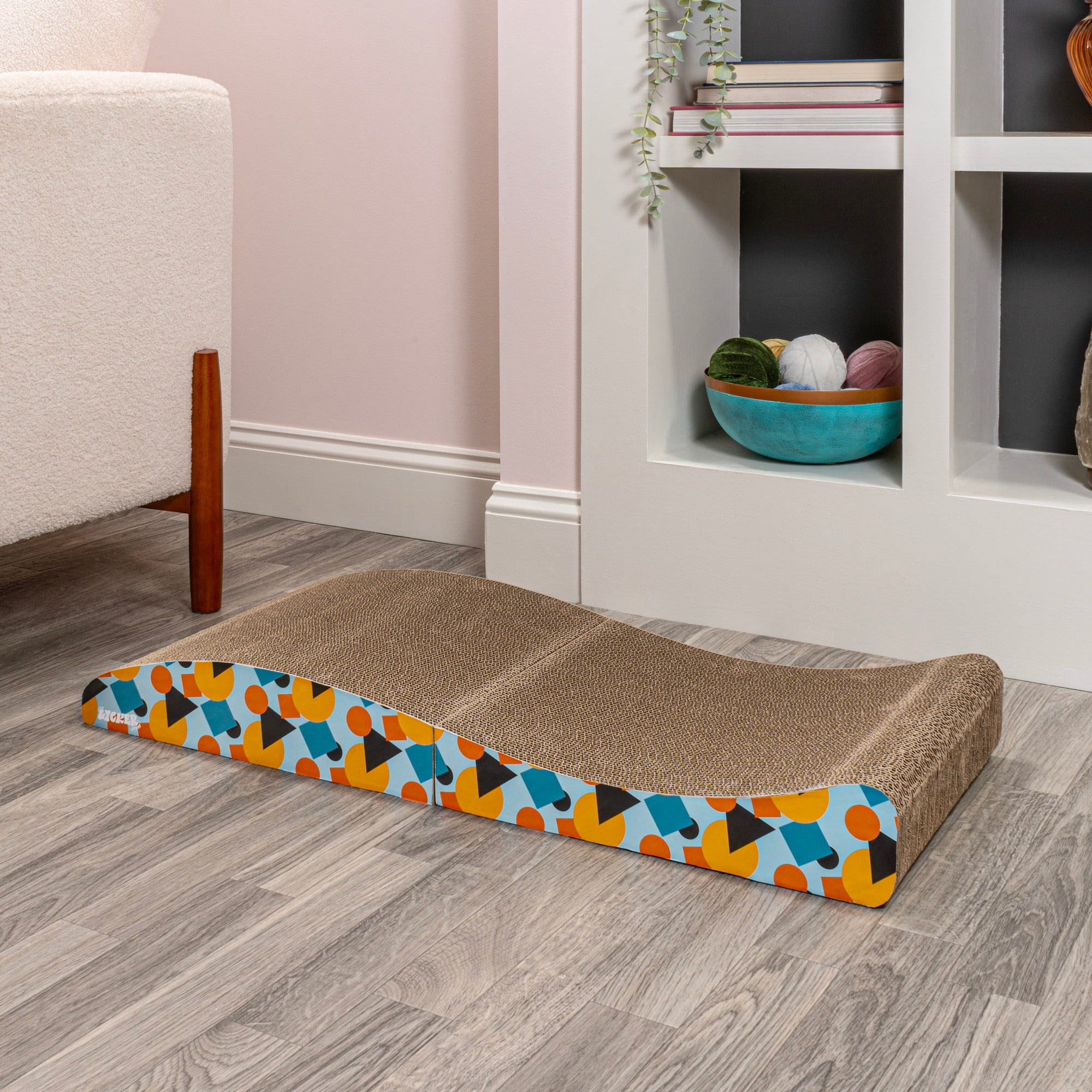 THE LICKER STORE Eero 32″ Modern Cardboard Foldable Lounge Cat Scratcher with Catnip, Blue/Orange, CSR1011A