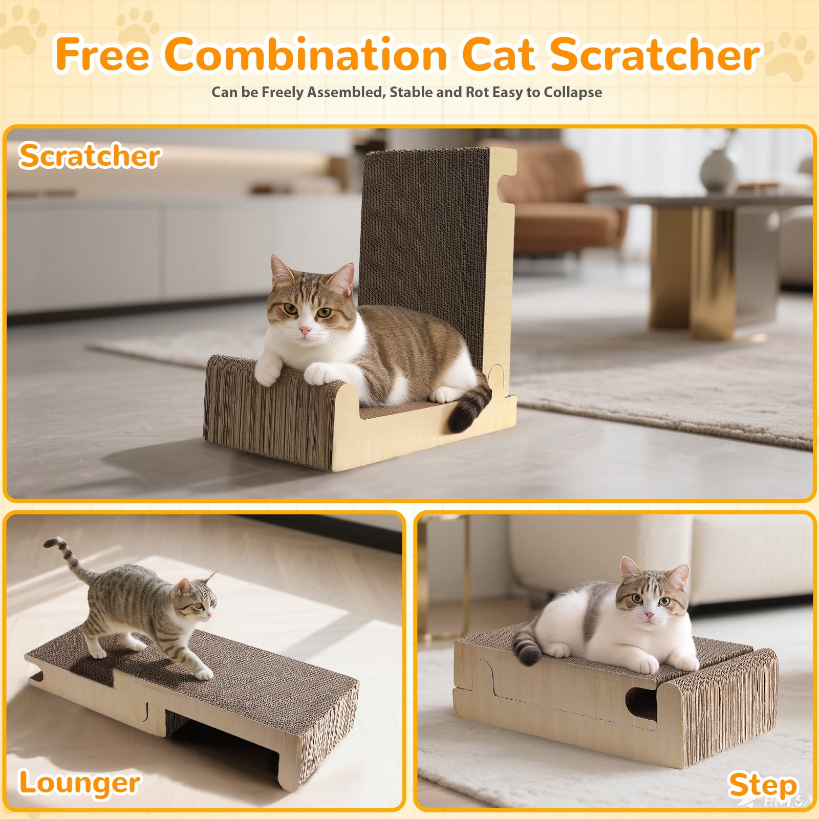 - [Customizable Cat Scratching Board with Multiple Shapes]: Create endless configurations with this versatile Cat Scratching Board. It easily transforms into L-shaped, V-shaped, or straight layouts, offering fun and variety while saving space in your home.