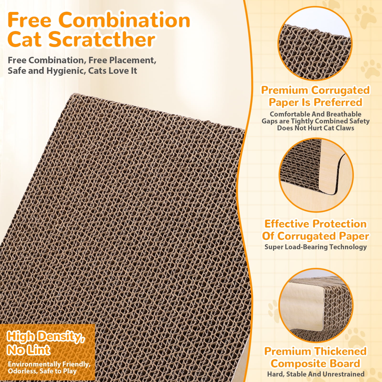 - [Durable & Safe High-Density Corrugated Cardboard]: Crafted from premium, high-density corrugated cardboard, this Cat Scratcher is safe, breathable, and gentle on your cat’s paws, with tightly wrapped edges that minimize debris and keep your home clean.