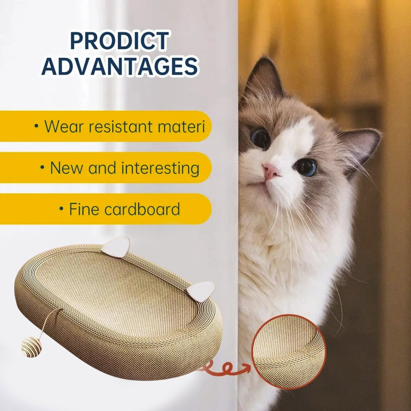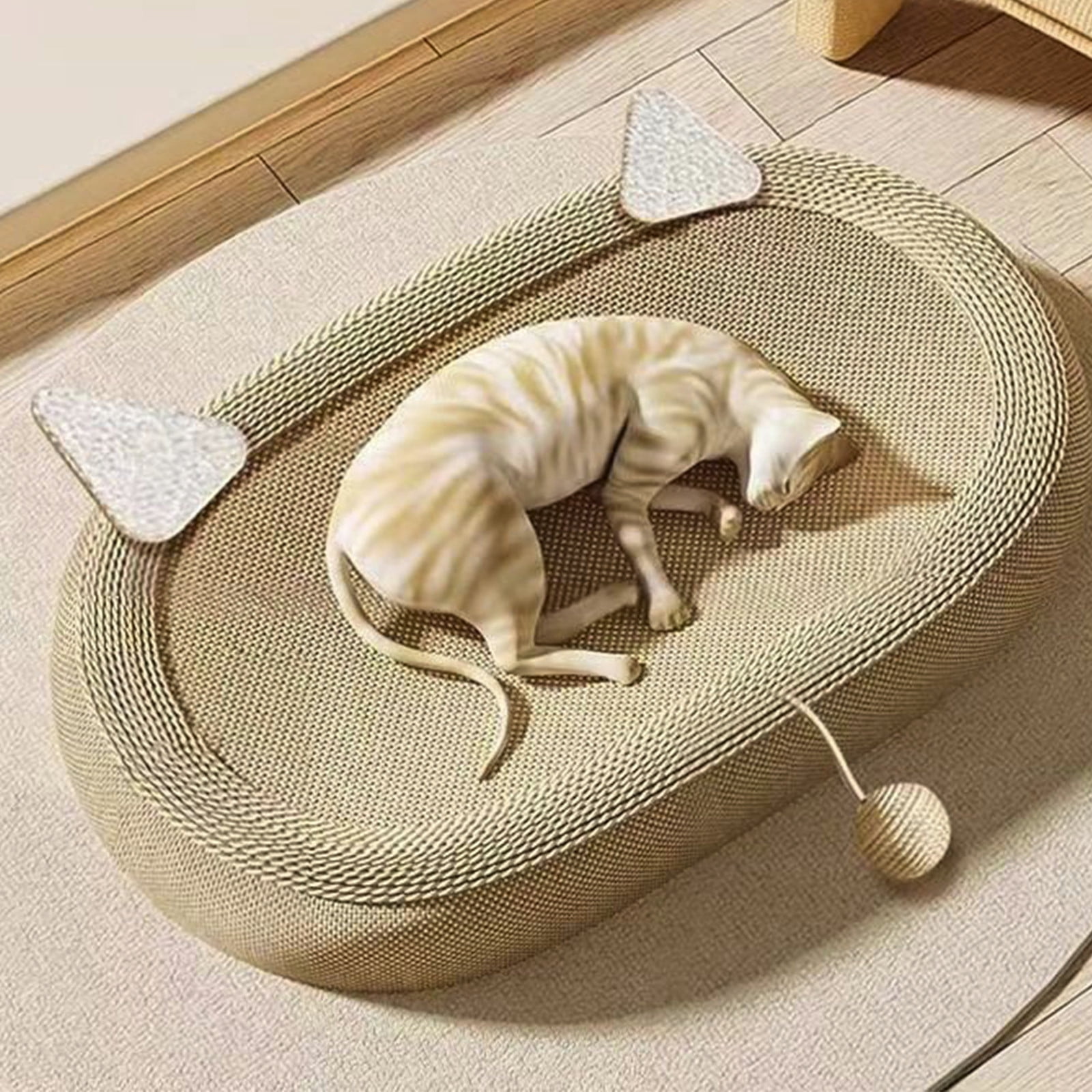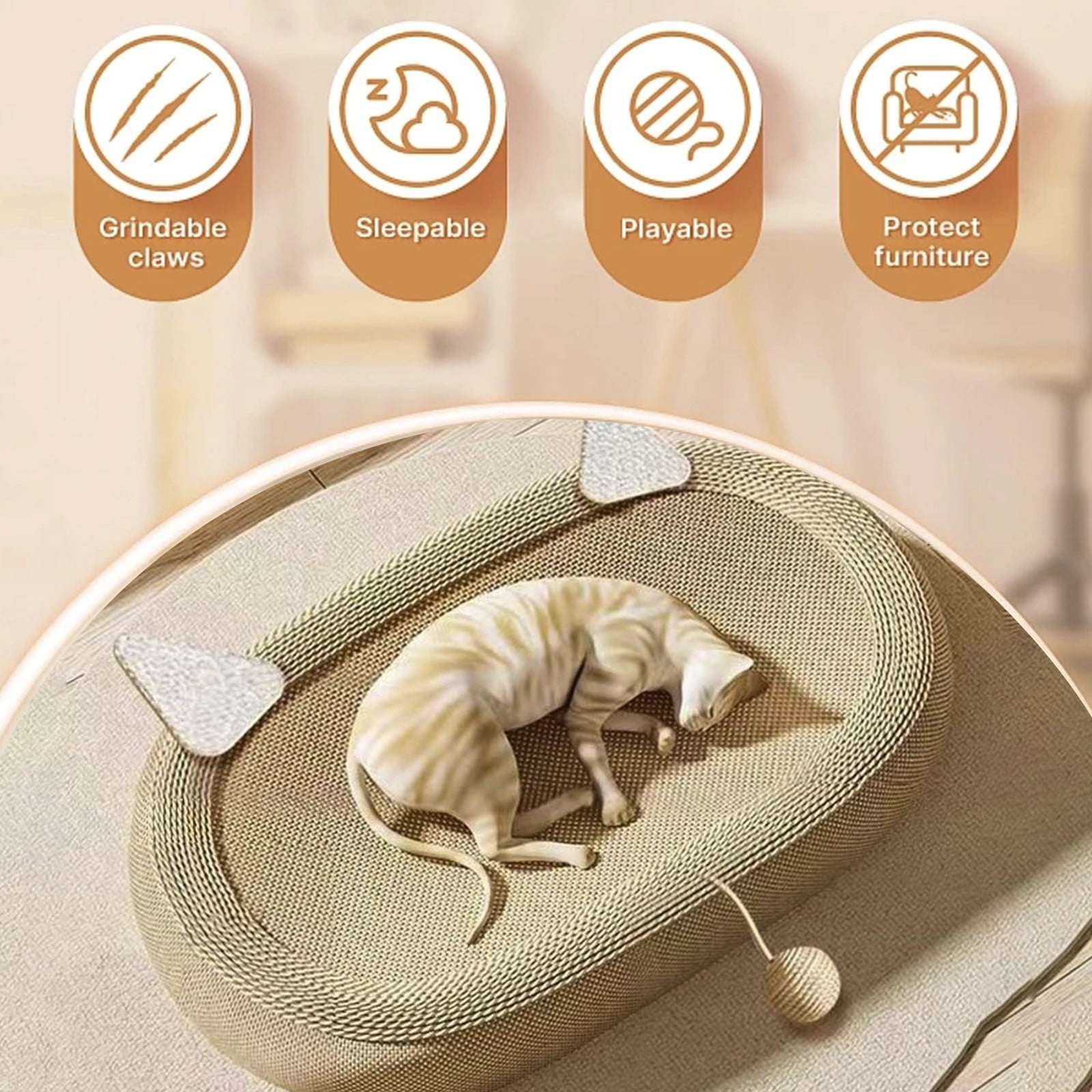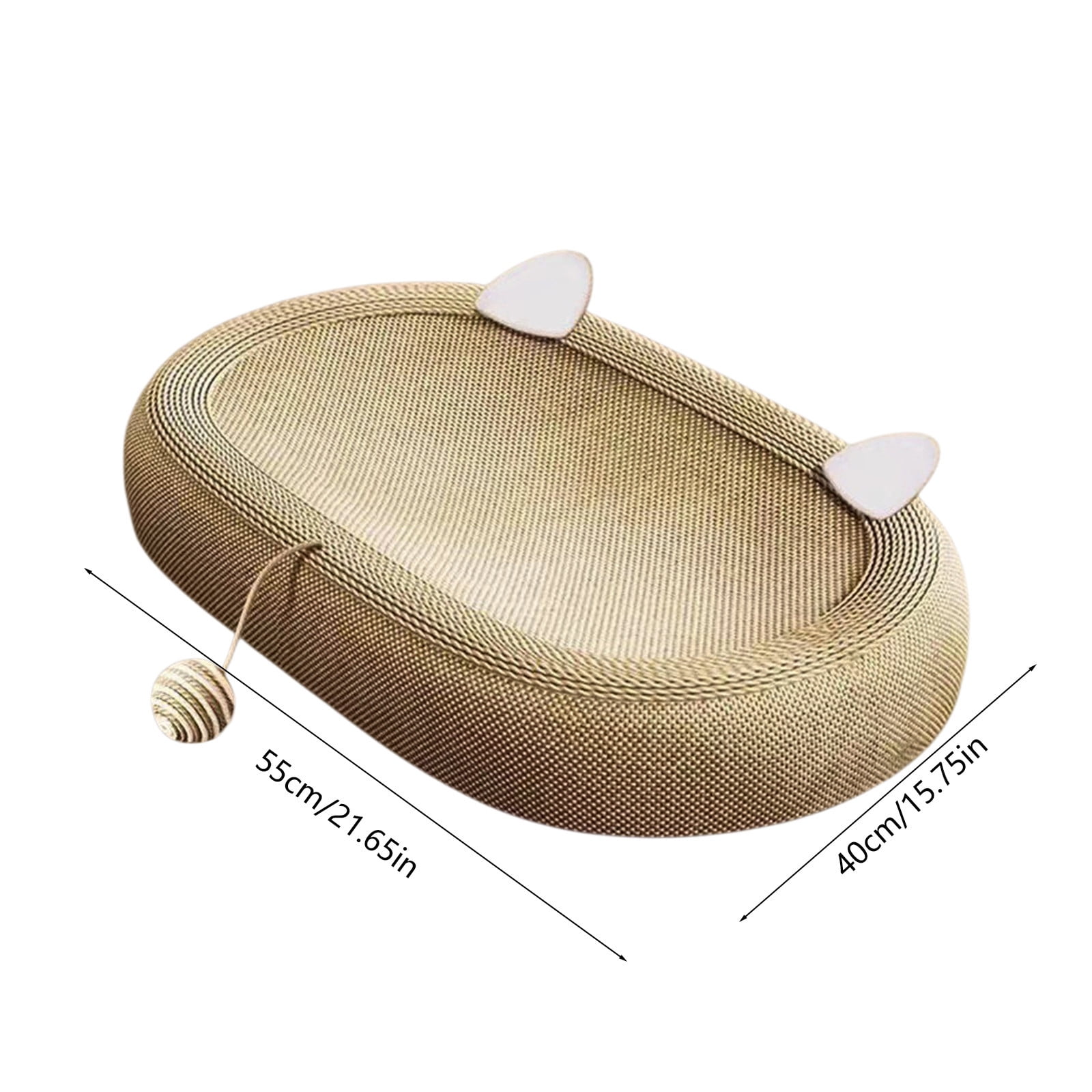 Flax Cat Scratcher – 21.65″ Cat Scratcher Cardboard, 3 in 1 Oval Cat Scratching Bed Pad with Play Ball, Cat Scratch Lounge for Indoor Cats, Kittens & Puppies