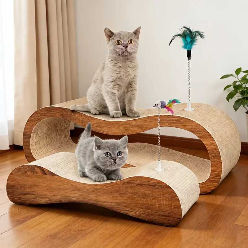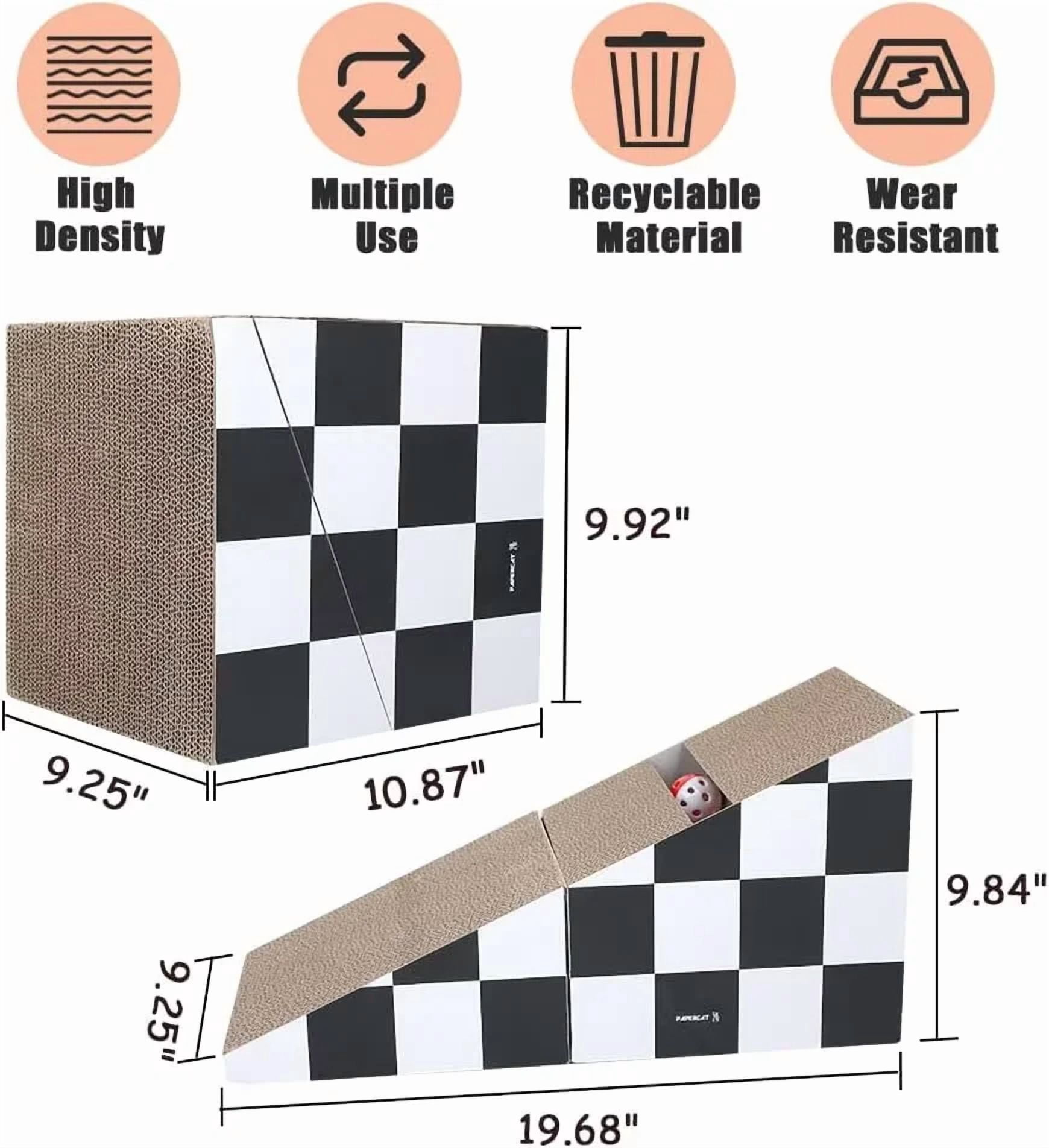 - 😺[KEEPS CLAWS HEALTHY]-High-density cardboard is used to create a more durable scratching surface for your kitty that can withstand playful pawing while keeping claws healthy.