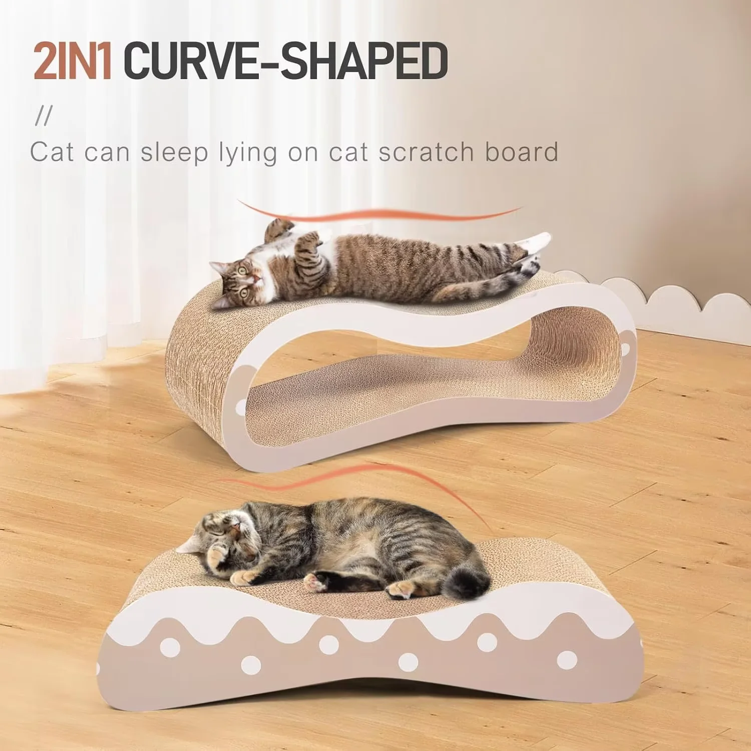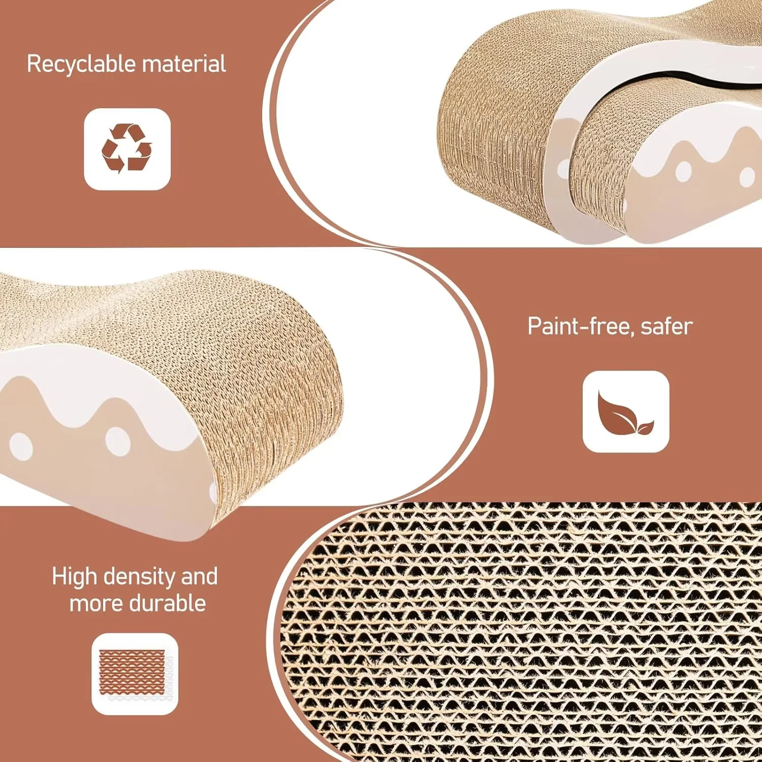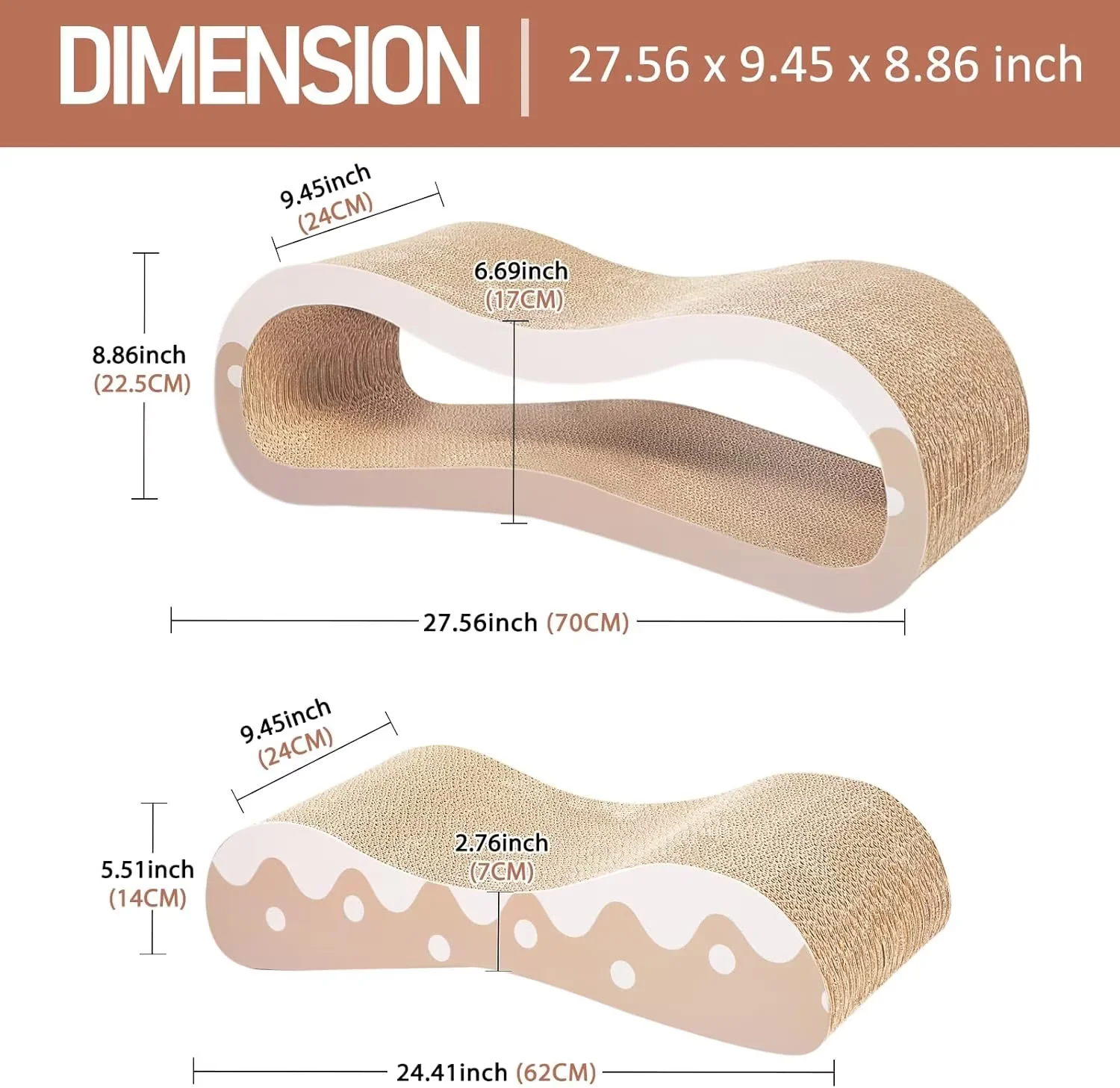 - 😺[REST & PLAY]-Lounge-shaped corrugated cardboard scratcher is a perfect place for rest & play. Apart from scratching it, cats treats it like bed and lie on it.