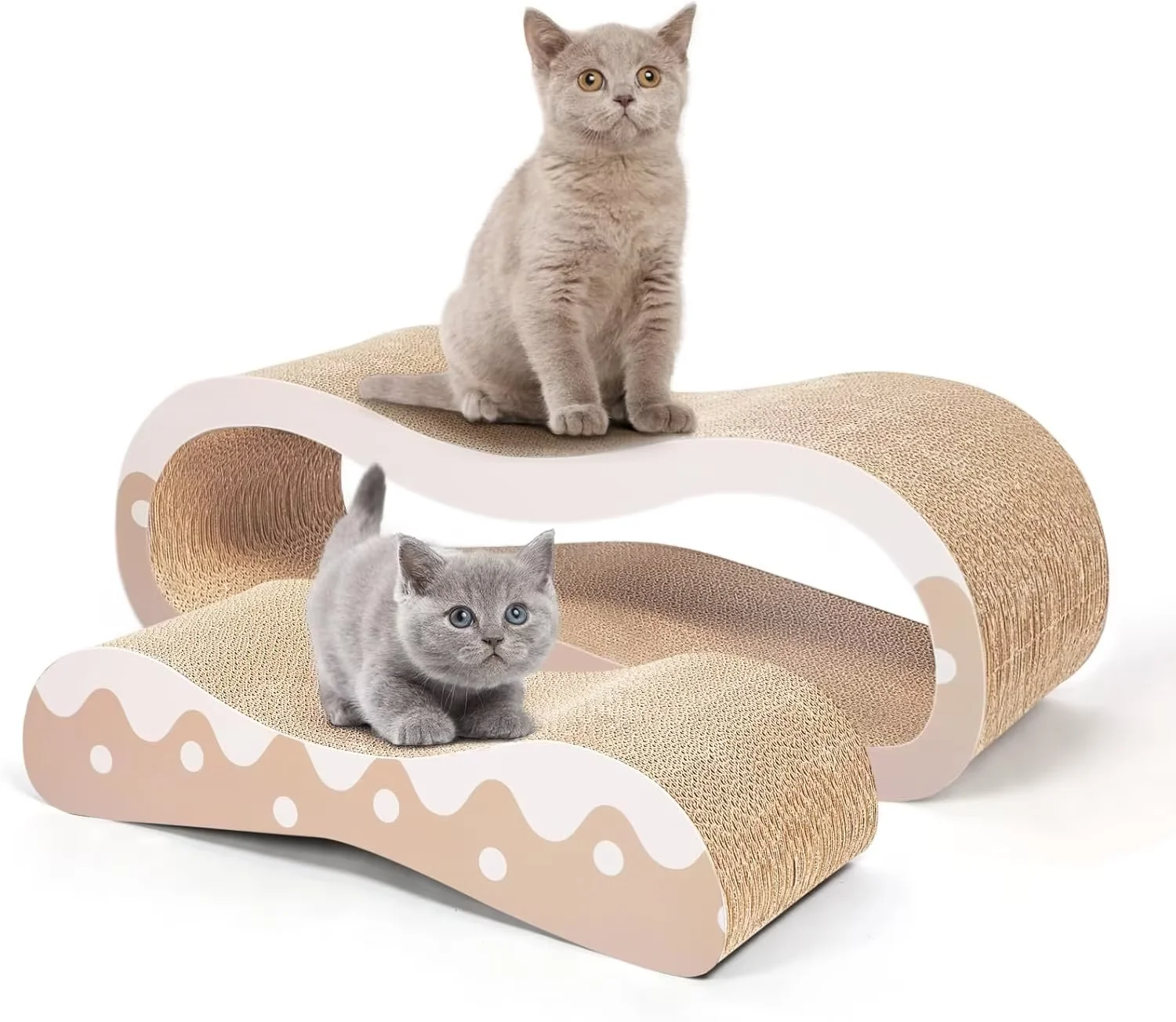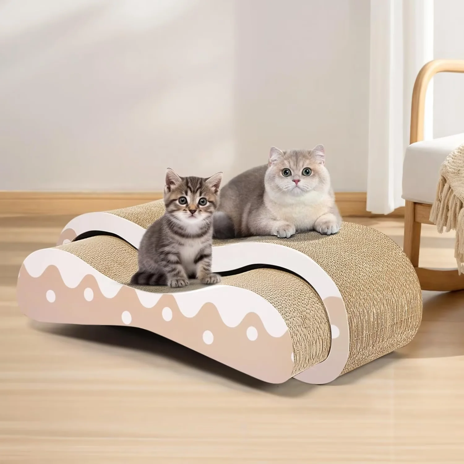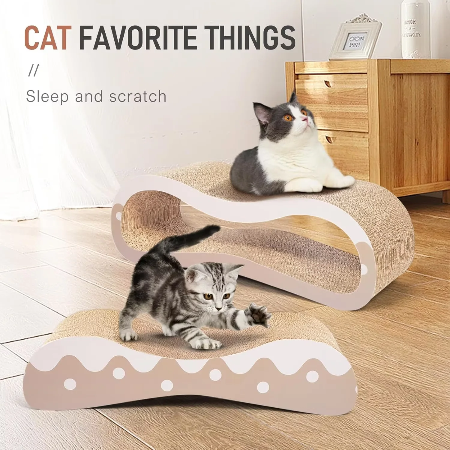 - 😺[REST & PLAY]-Lounge-shaped corrugated cardboard scratcher is a perfect place for rest & play. Apart from scratching it, cats treats it like bed and lie on it.