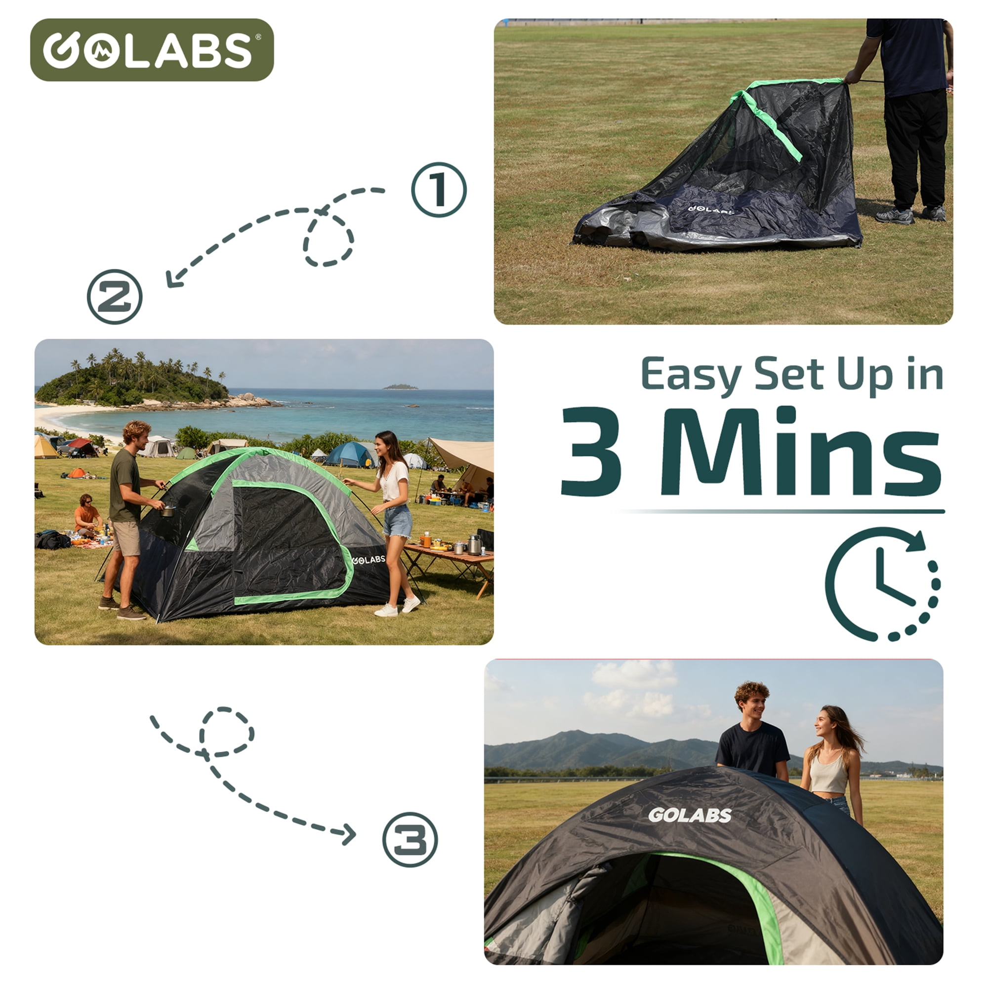 Golabs CT1 2 Person Dome Tent for 2 Adults, Easy Setup Waterproof Lightweight All-Season Camping Tent, Gray