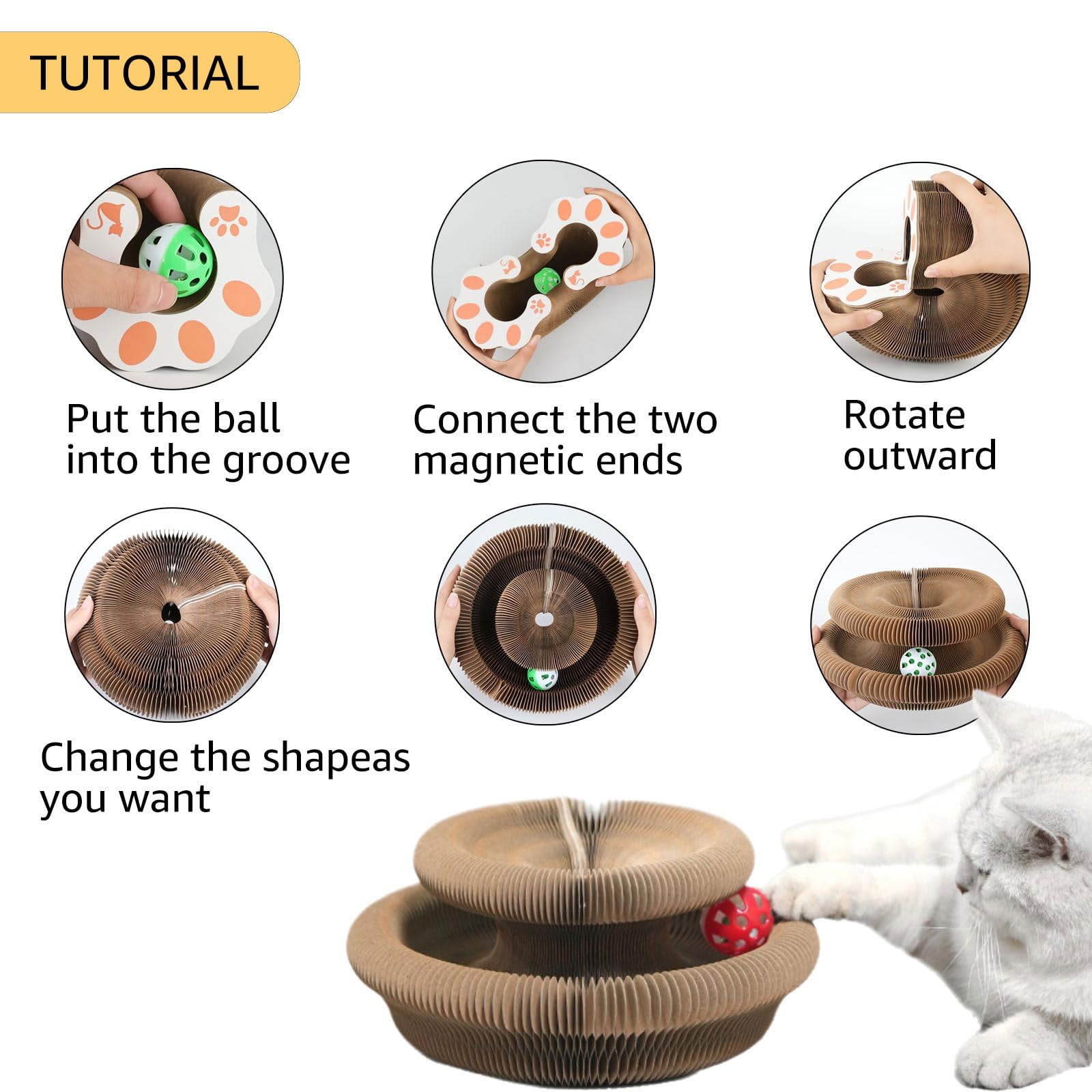 Cat Toy, Magic Organ Cat Scratch Board, Compact Cats Accordion Toy, Interactive Cardboard Cat Scratcher Pad Toys with Bell Ball for Indoor Exercise