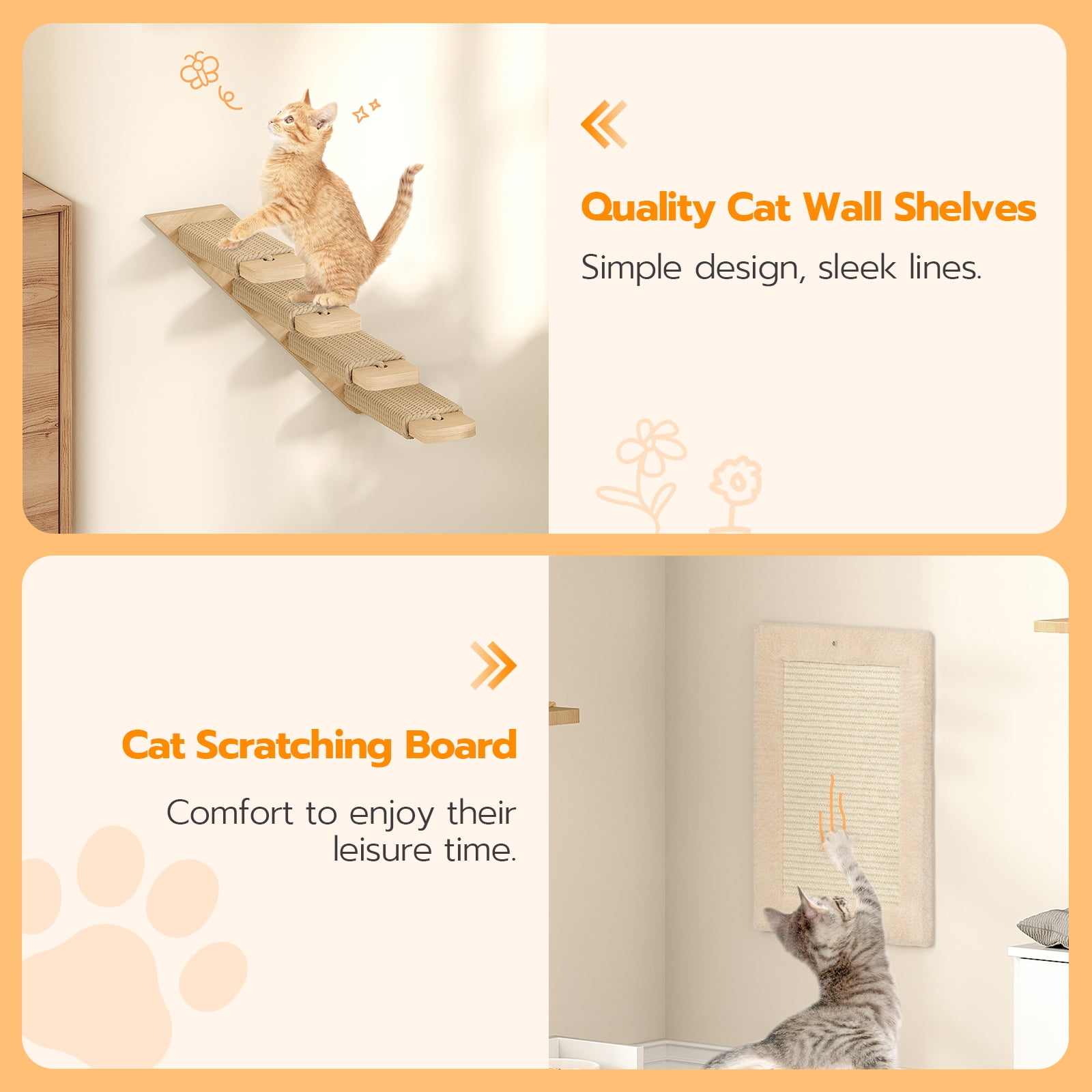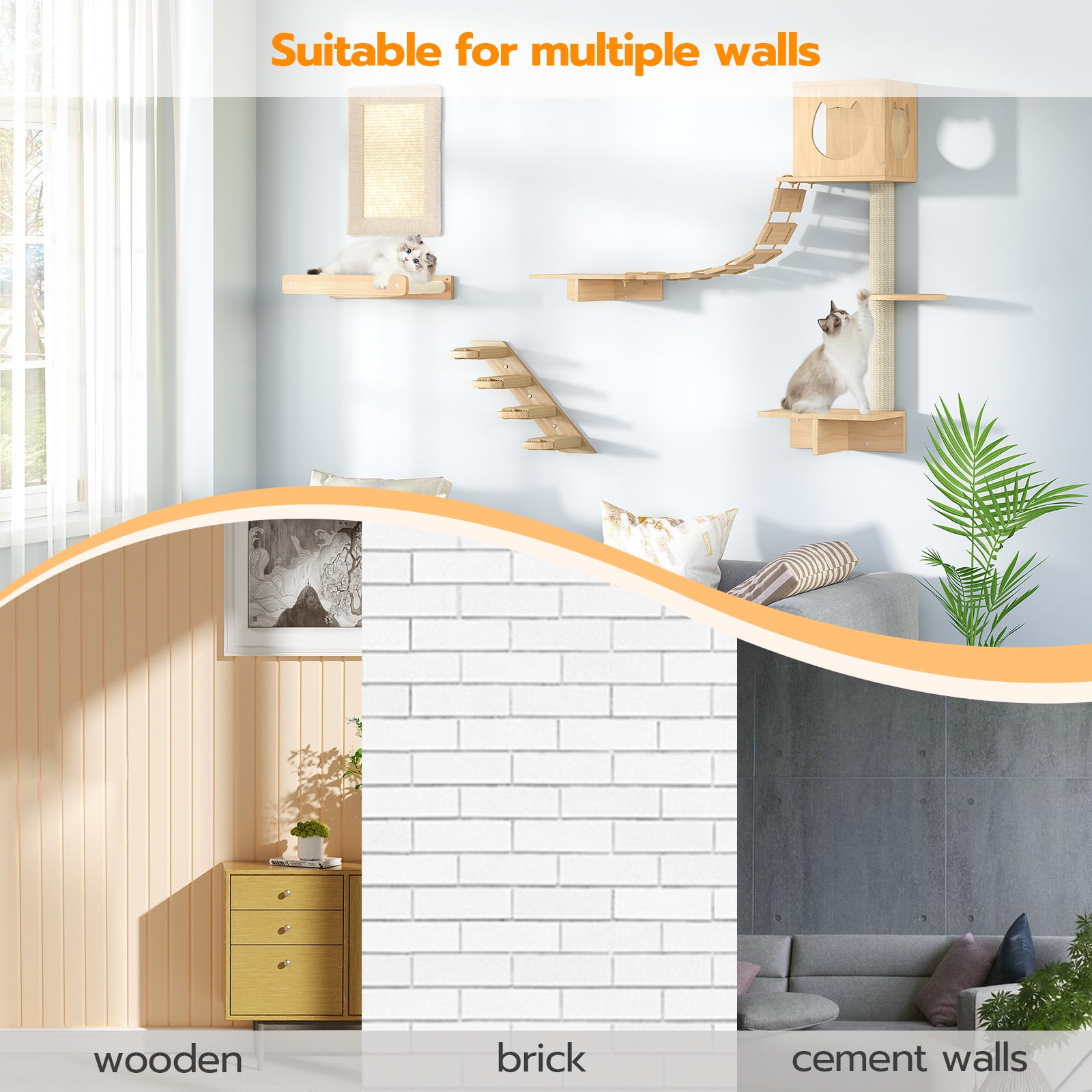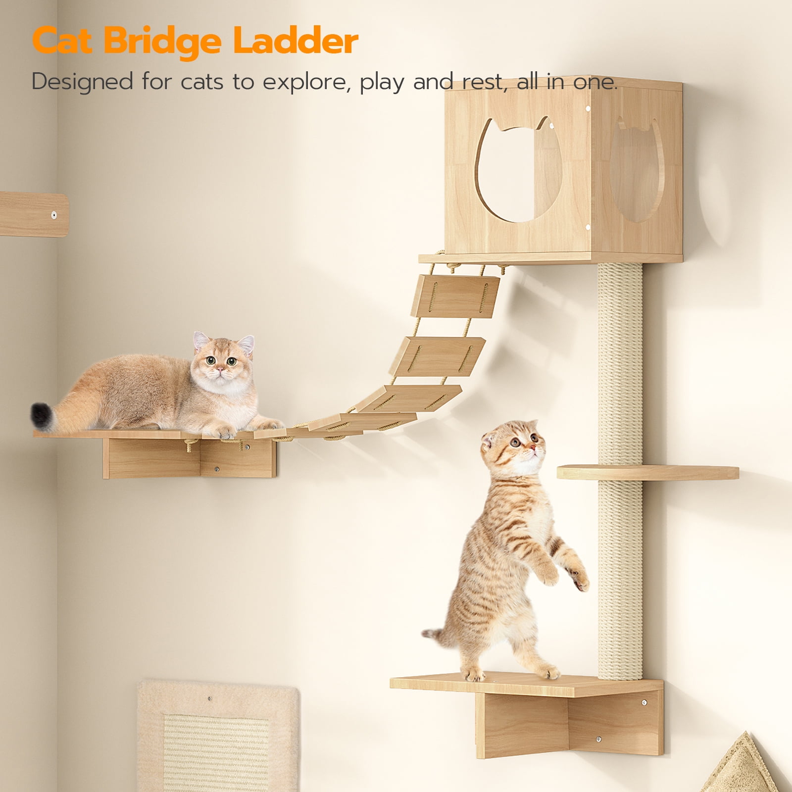 - DIY Creative Combination: With diversified accessories, you can freely combine and install them based on your wall conditions and your cats’ specific needs. This allows your cats to move, climb and play freely, satisfying their instincts for exploration