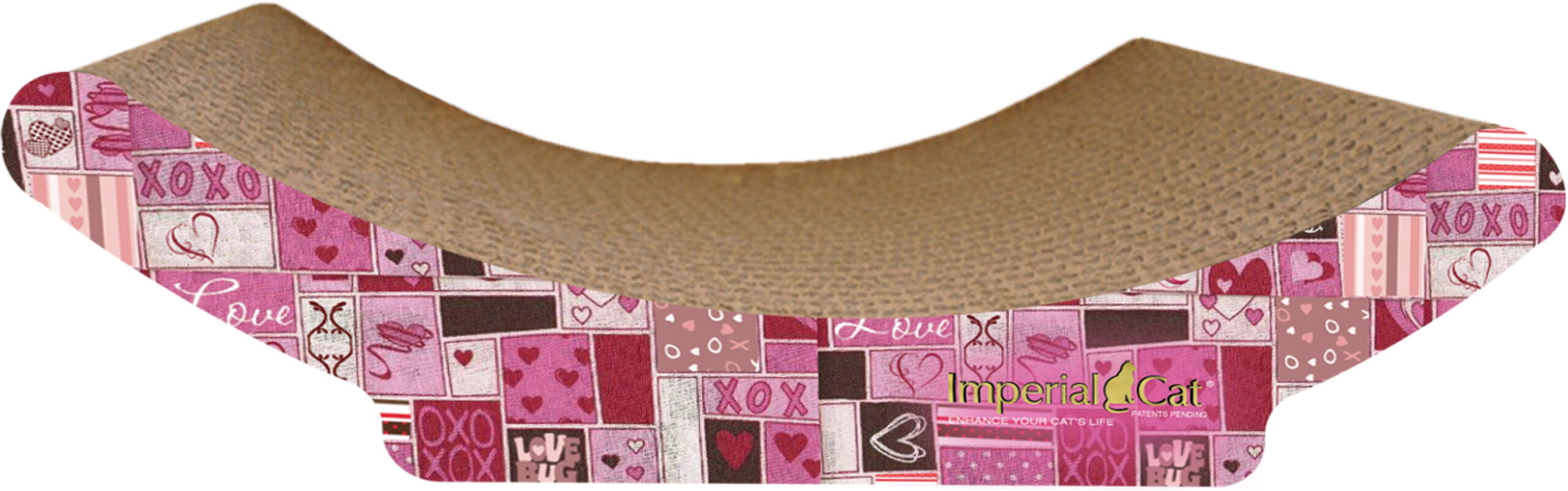 The Imperial Cat Scratch ‘n Shapes Cozy Curl features a purr-fectly scooped center designed to cradle your cat during many afternoon snoozes after a long day of scratching! Made from rough, durable corrugated cardboard, the Imperial Cat Scratch ‘n Shapes Cozy Curl mimics the feel of real tree bark, so it feels natural to kitty’s claws and paws. The Imperial Cat Scratch ‘n Shapes Cozy Curl is designed to rip and tear under your kitty’s claws, providing for great visual marking – a main reason your cat scratches in the first place. You think it looks torn up and ugly, but your cat thinks it looks like home! Contrary to popular belief, your cat doesn’t scratch to “sharpen” his claws, but rather to remove the outer layer of nail which sheds naturally every few weeks. And the corrugated cardboard is a unique surface in your home – it feels different than your carpet or sofa – so it’s easier to train your cat to use the Imperial Cat Scratch ‘n Shapes Cozy Curl instead of your furniture. Plus, it just feels good to your kitty to stretch out and scratch away! Cats may also like to sleep and play on the Imperial Cat Scratch n’ Shapes Cozy Curl, and that’s okay – The Imperial Cat Scratch n’ Shapes Cozy Curl is made with non-toxic paper, ink and glue, so it’s purrfectly safe for cats and kittens. In fact, every Imperial Cat Scratch ‘n Shapes comes with a bag of Imperial Cat 100% Organic Catnip – sprinkle on a little or sprinkle on a lot for an aroma that will attract your cat like a magnet and get the fun started!