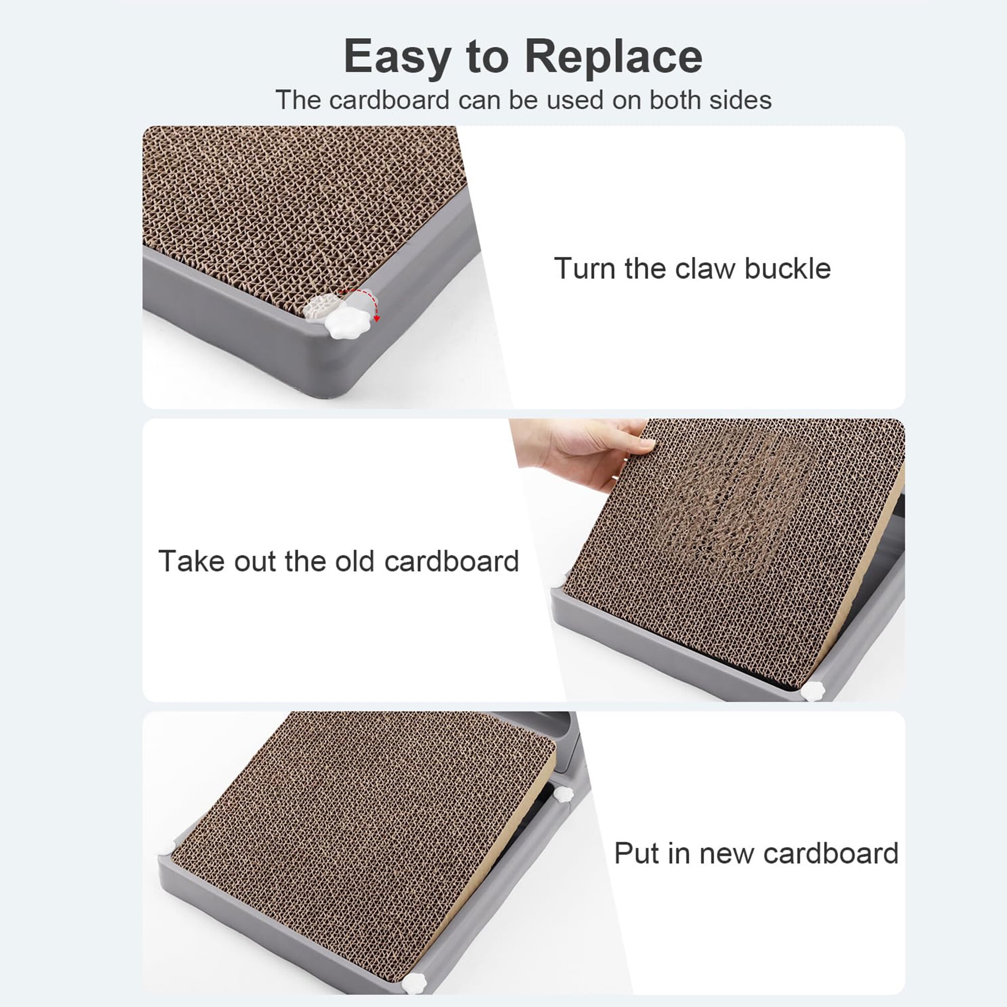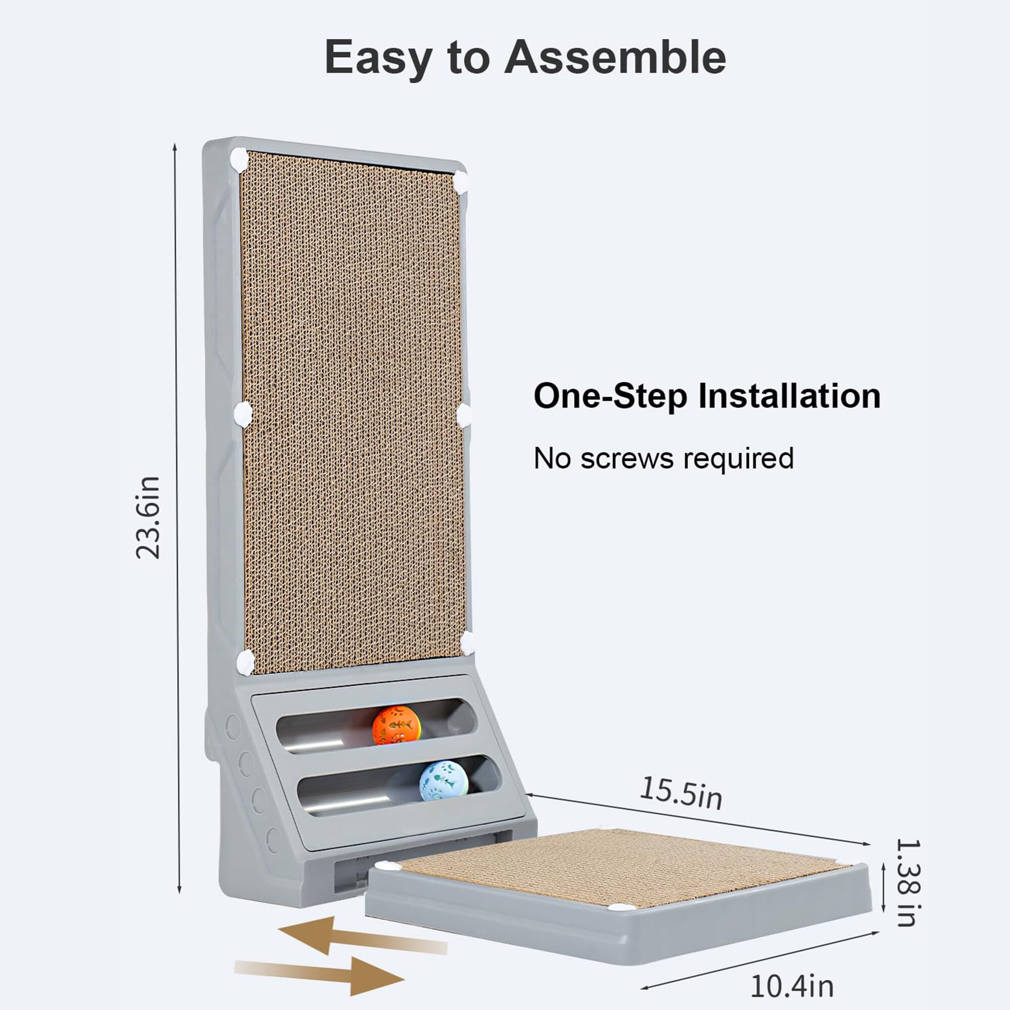 - Easy to Setup: Snap-on assembly (no tools) & reversible cardboard for extended use