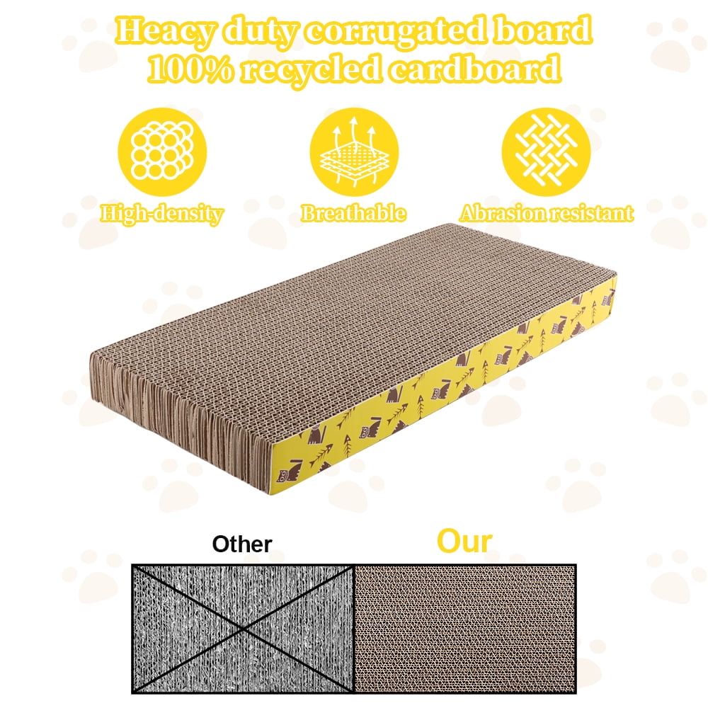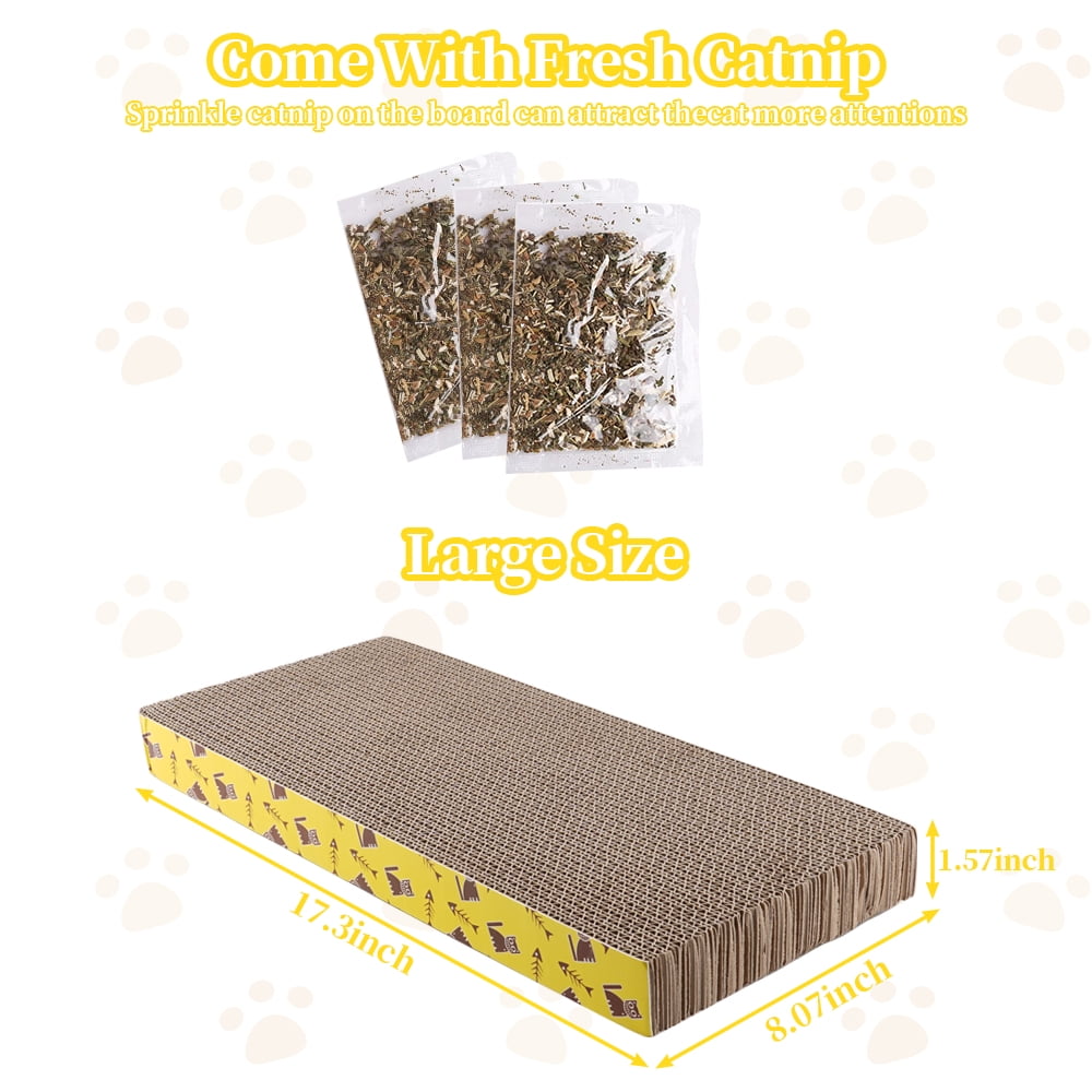- Eco Advantages:Each scratch board comes with a packet of catnip. Catnip grown and produced without insecticides, and the corrugated cardboard is made from recycled paper pulp doing our part to help reduce waste and use sustainable practices