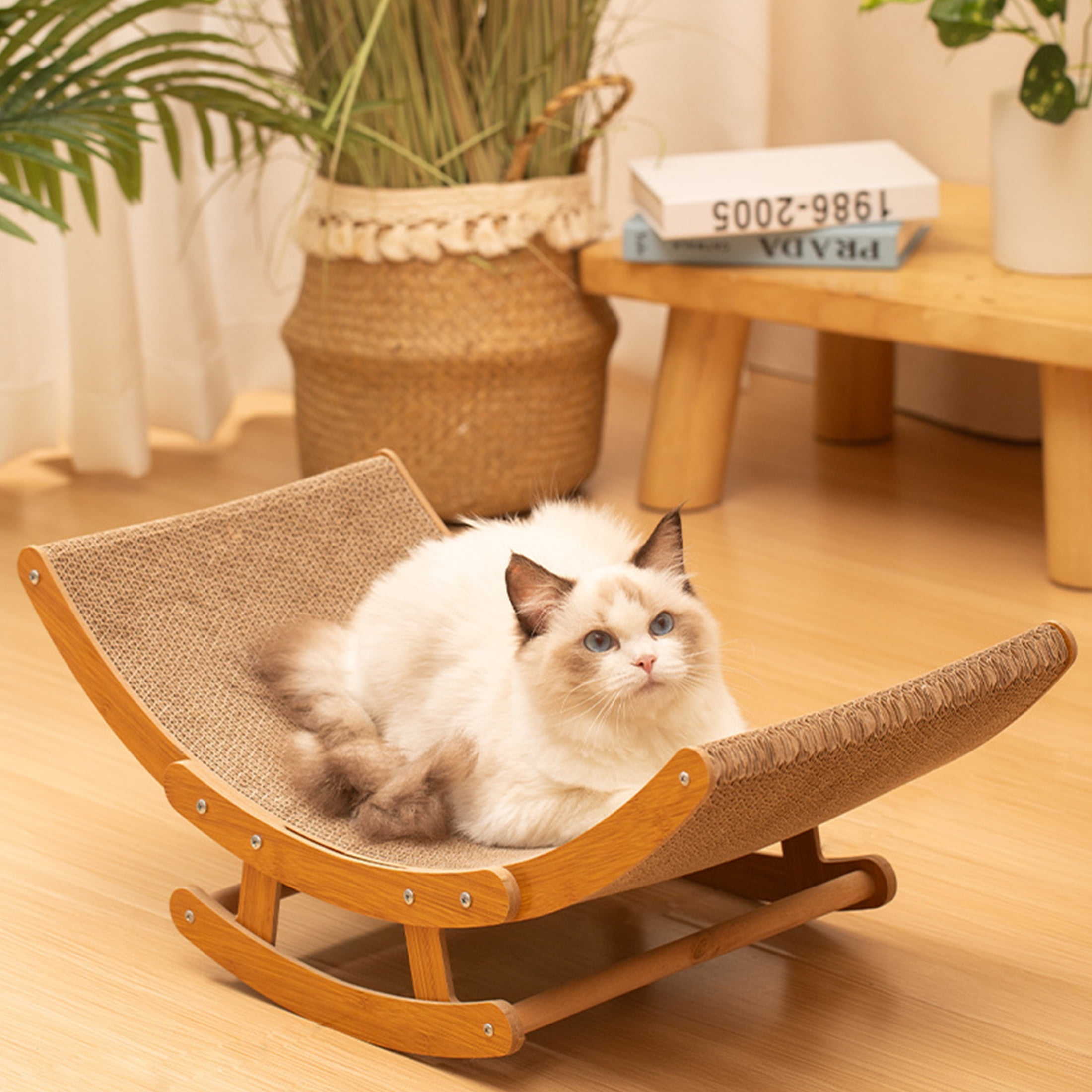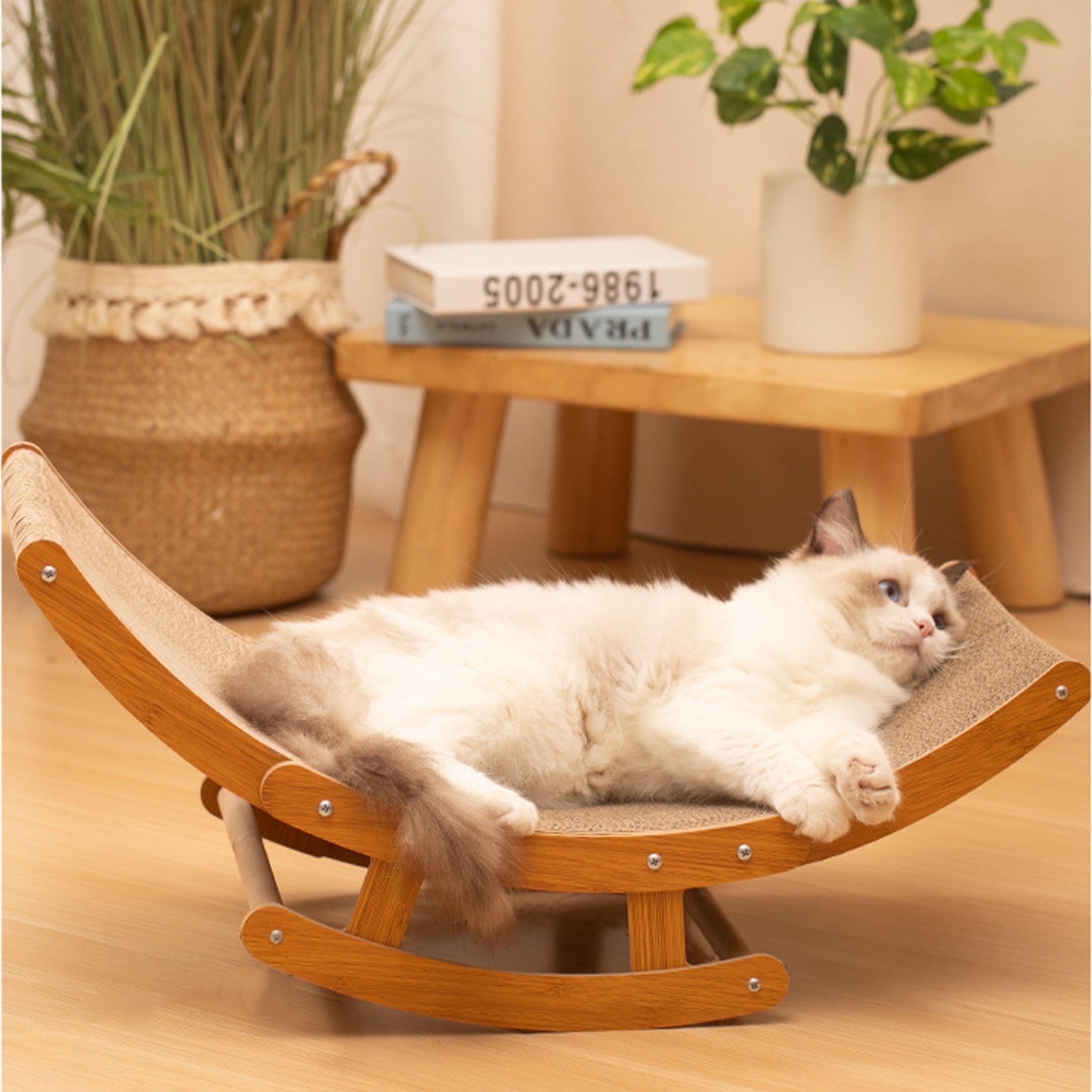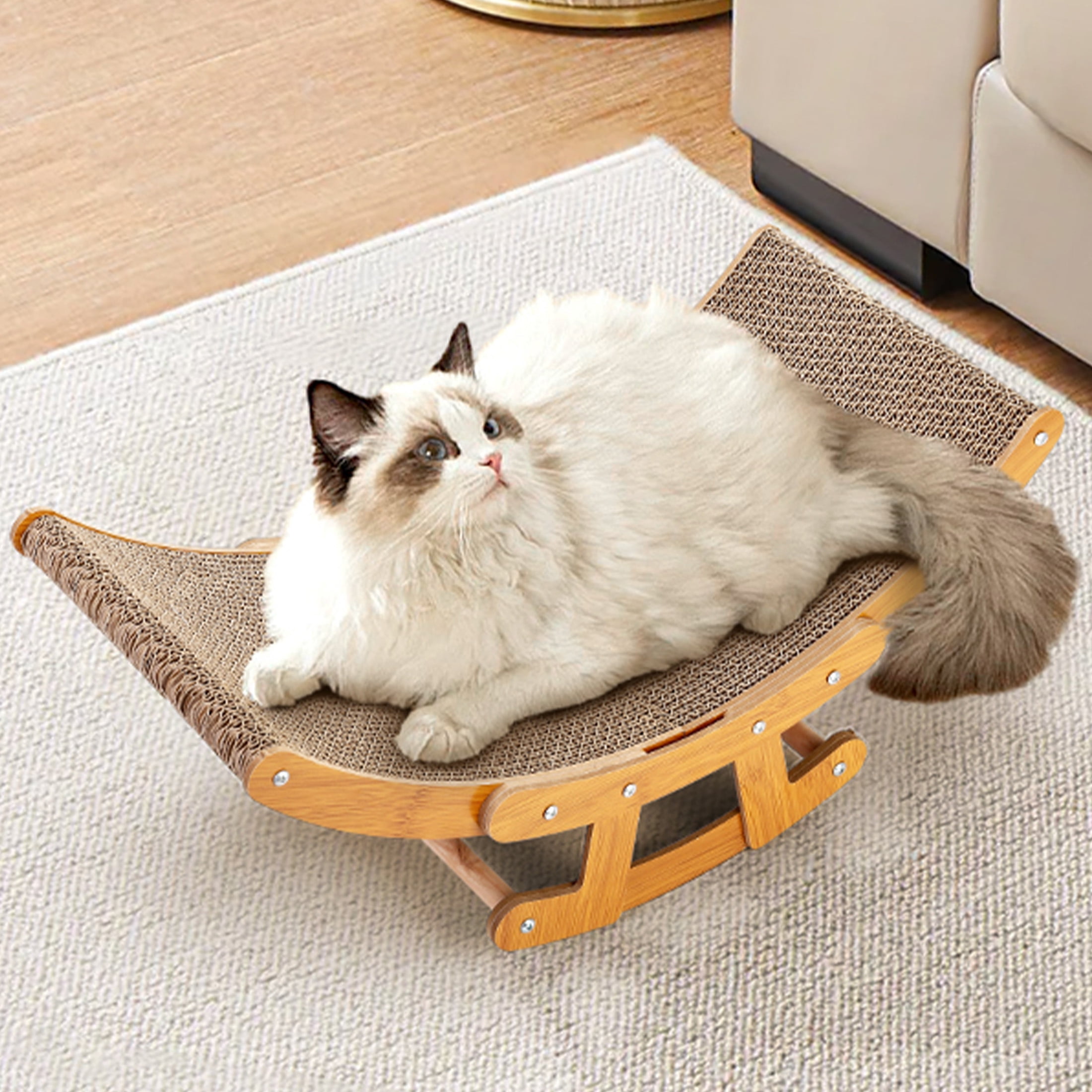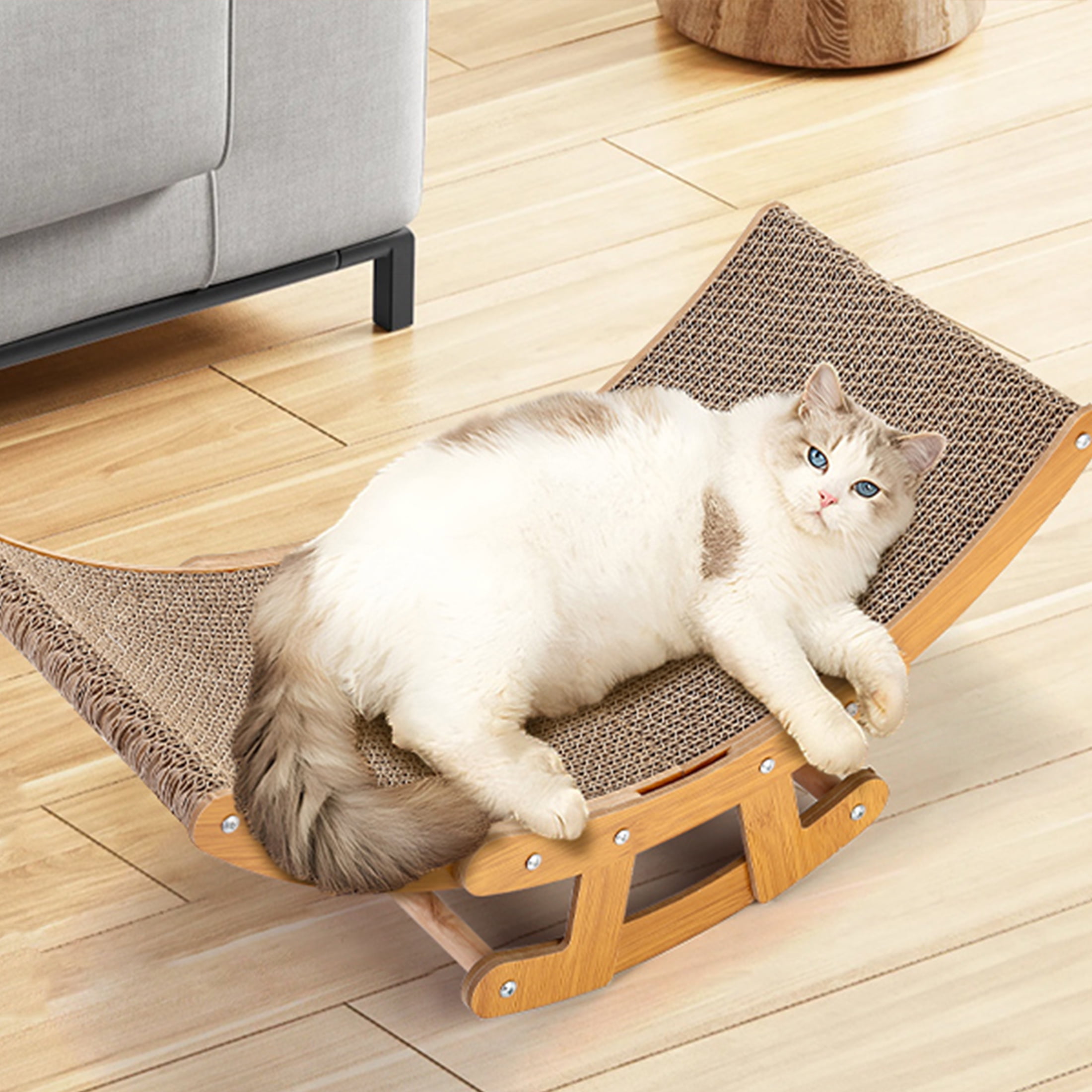 - This 2-in-1 rocking chair cardboard cat house serves as both a convenient scratching pad and a cozy cat bed, providing your furry friend with the ultimate comfort and versatility while withstanding vigorous scratching.