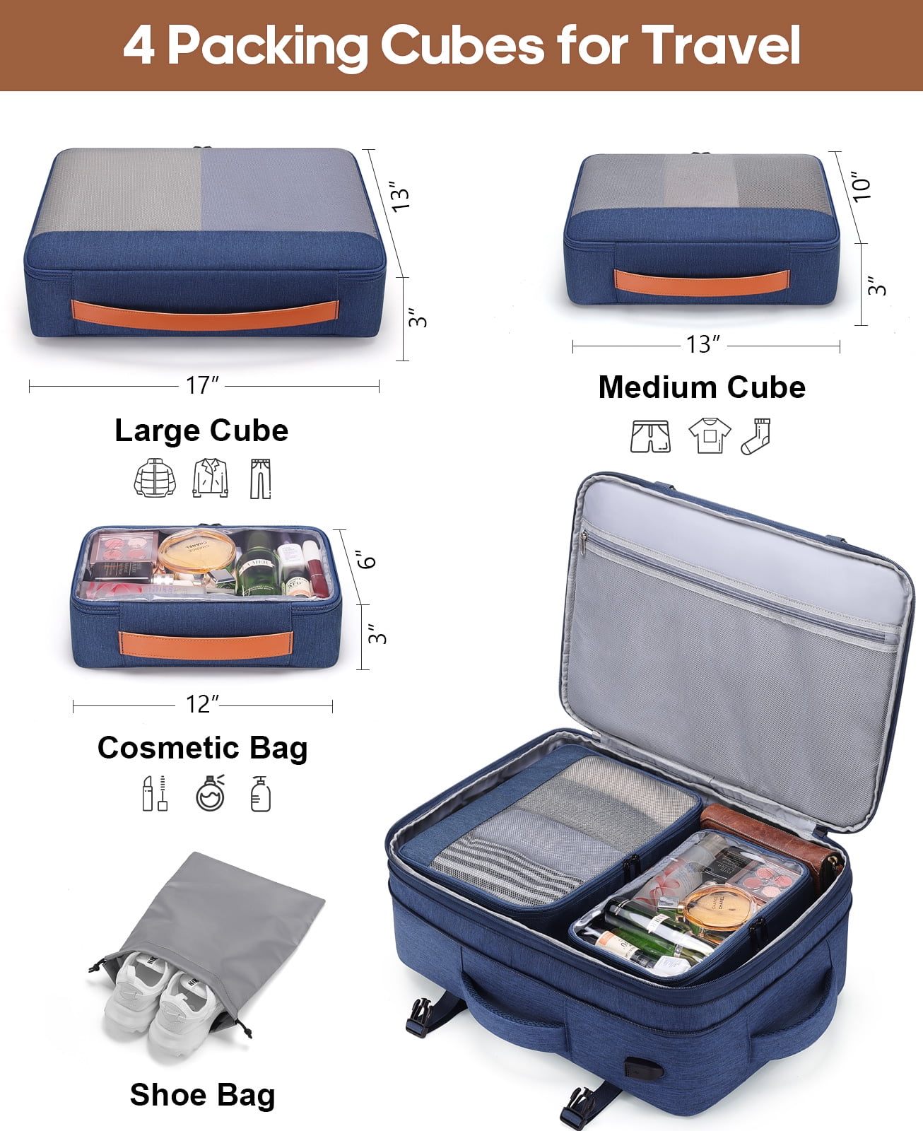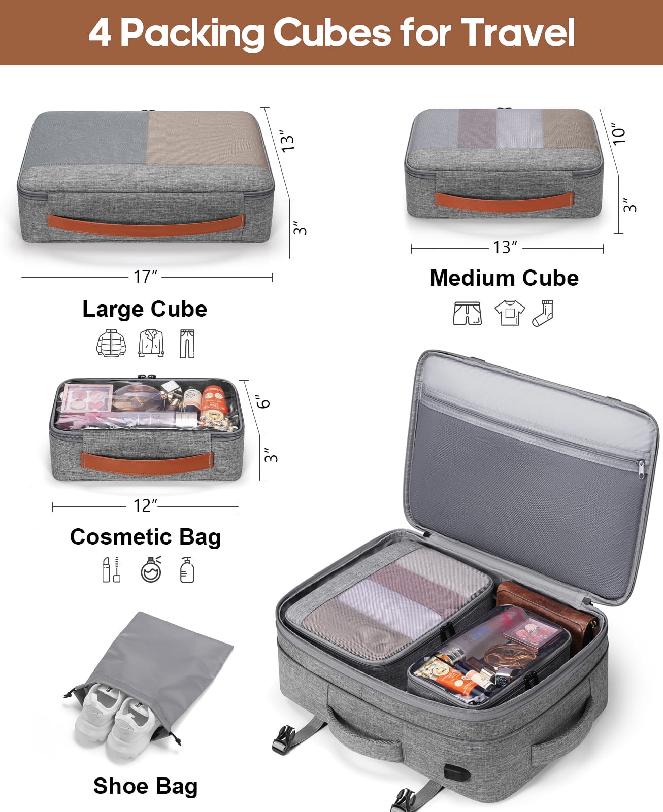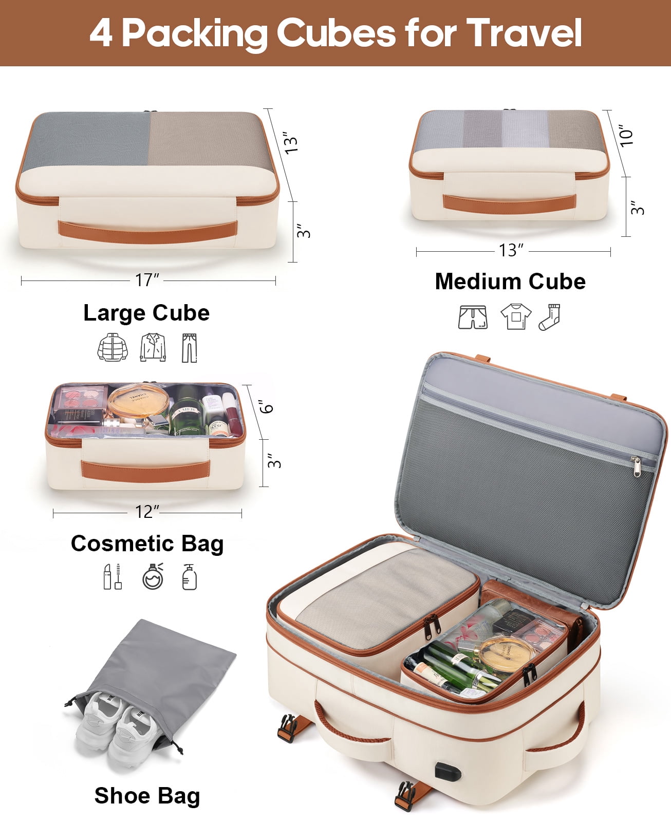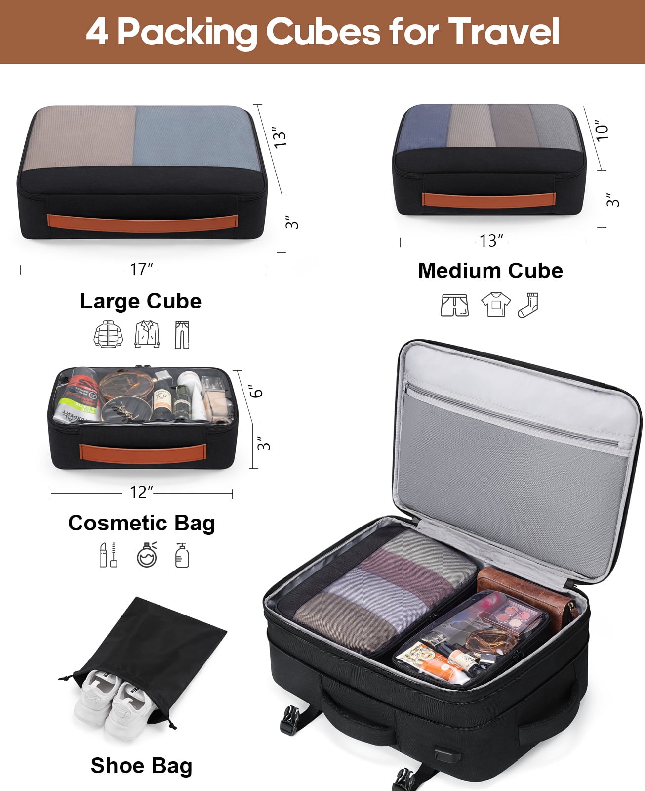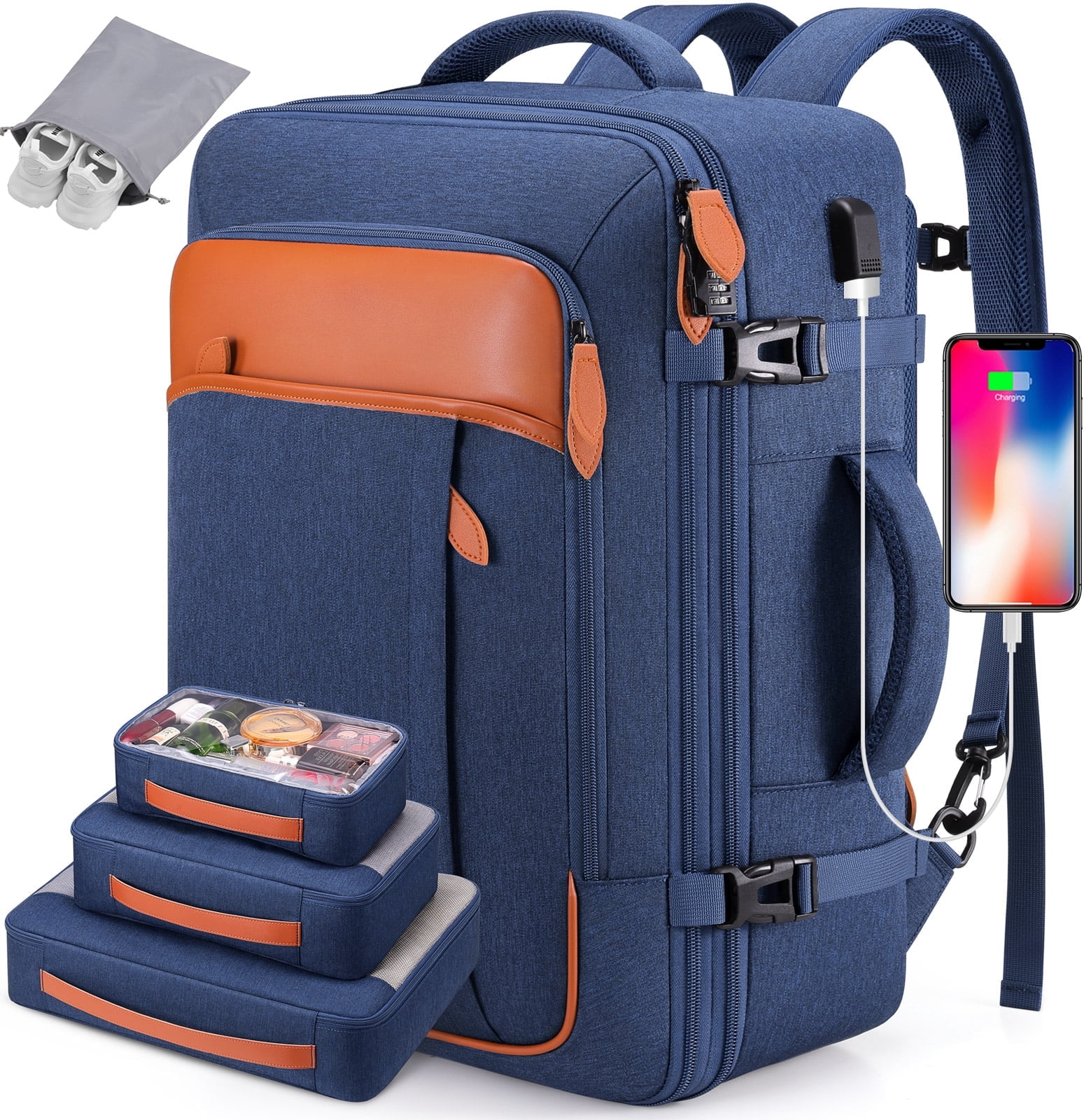• Spacious Expandable: Features an expandable capacity from 35L to 42L, including multiple pockets, three packing cubes, and a dedicated shoe pocket for organized storage.