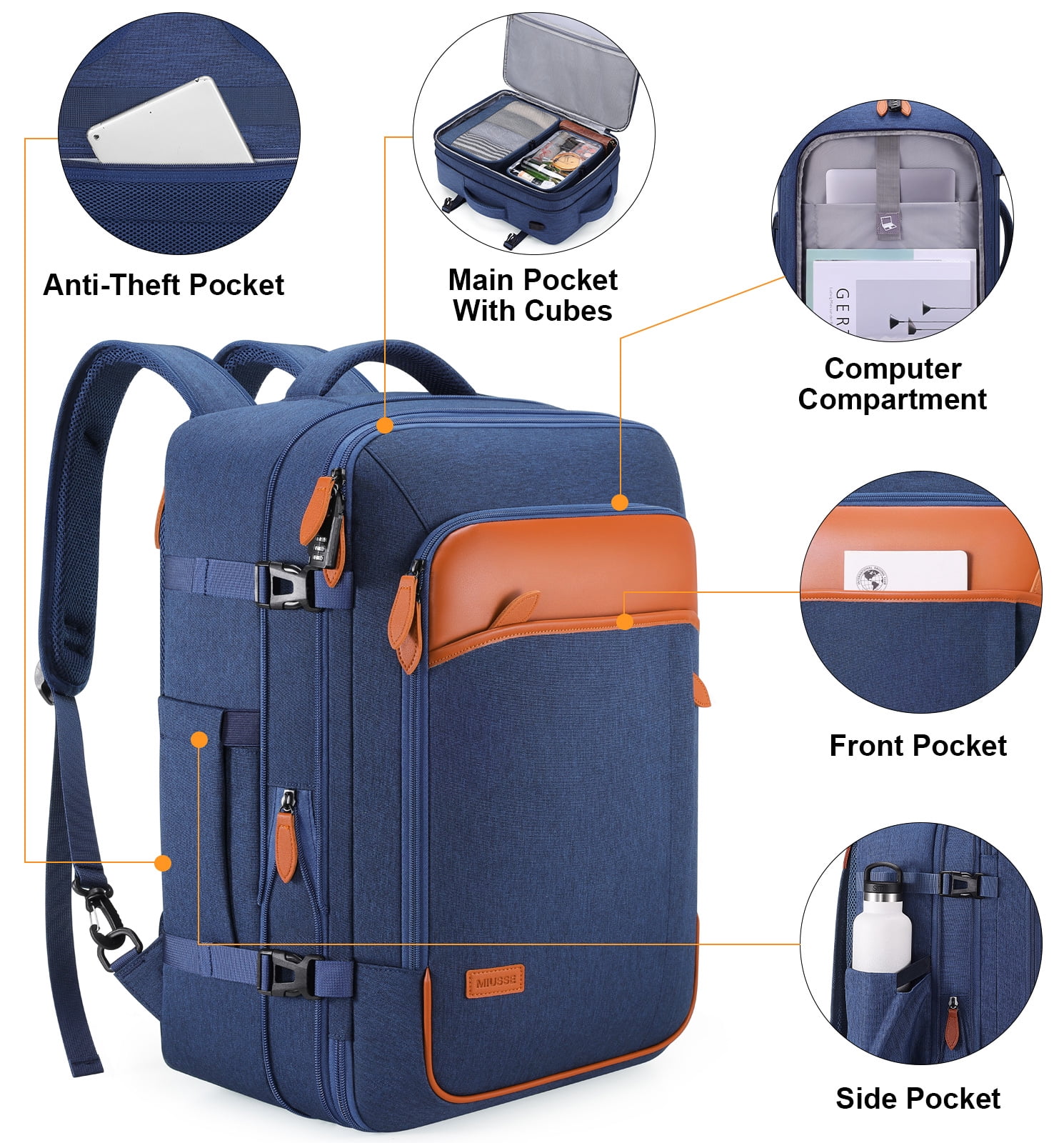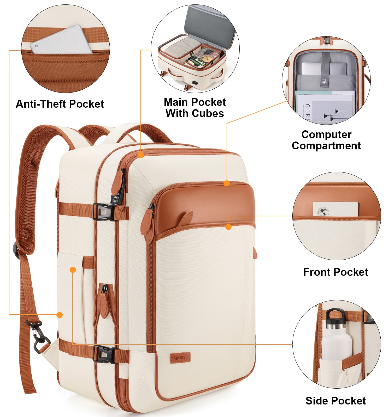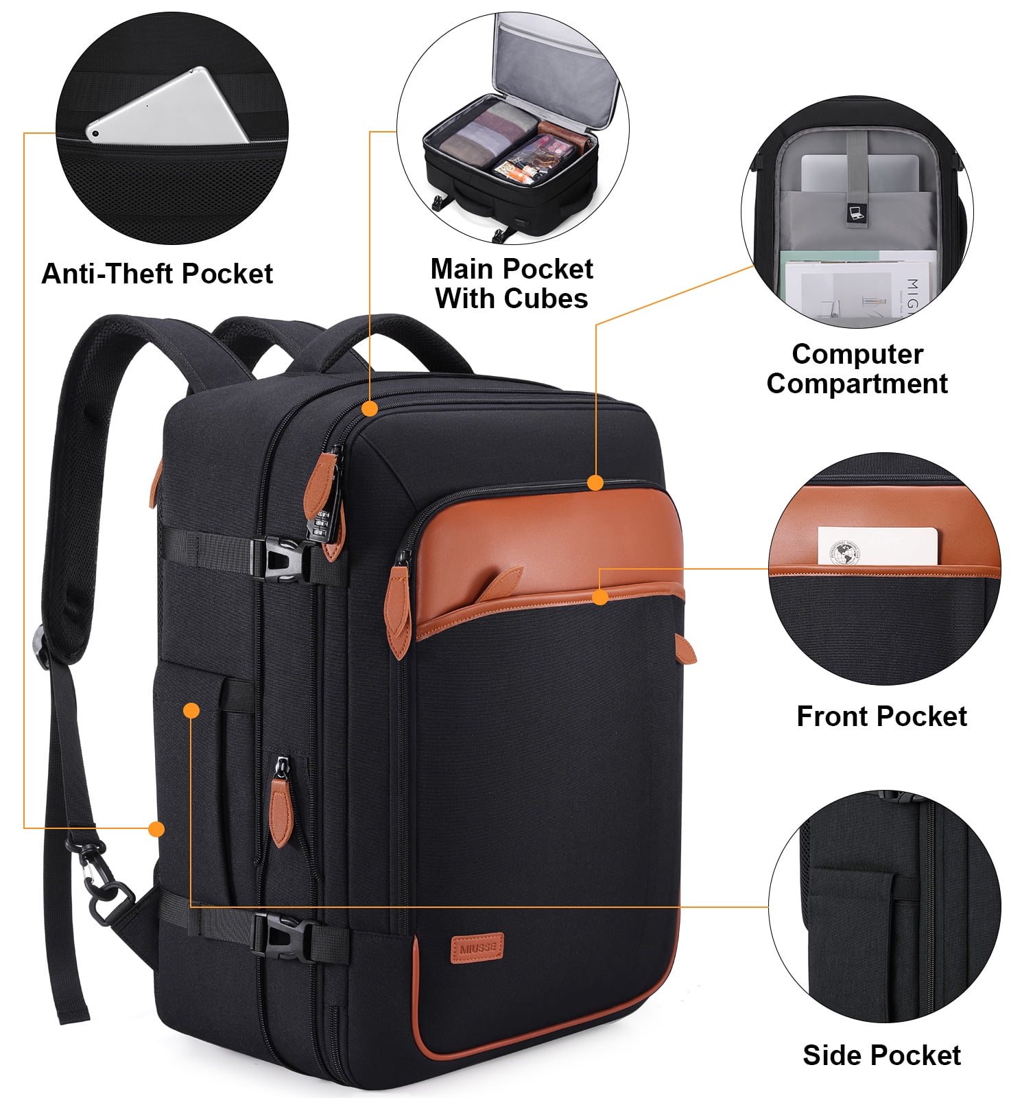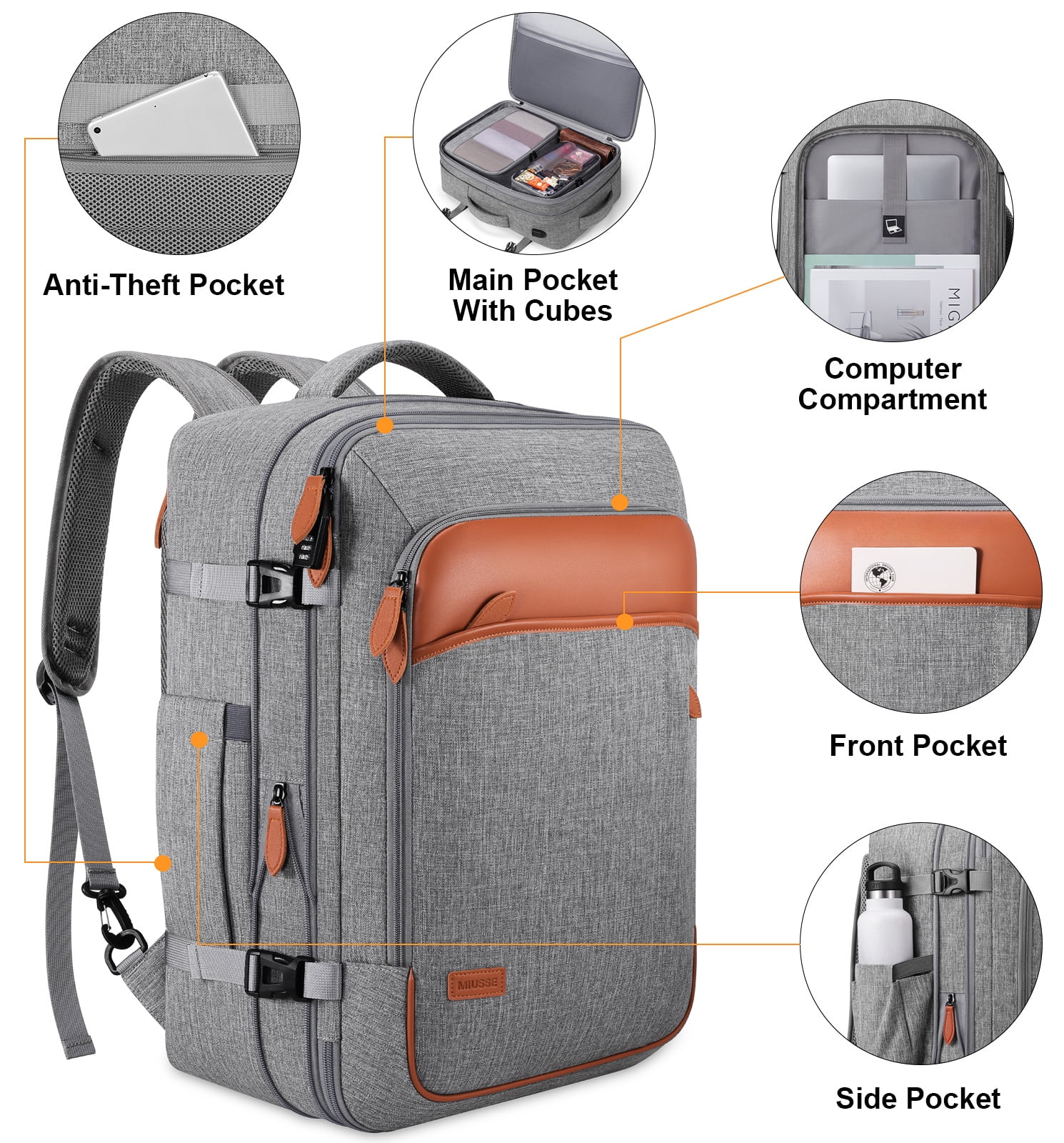 UKEIN Travel Backpack for Men & Women Carry On Backpack Flight Approved Expandable 42L Waterproof Anti-Theft Personal Item Backpack with Packing Cubes and Shoe Pocket