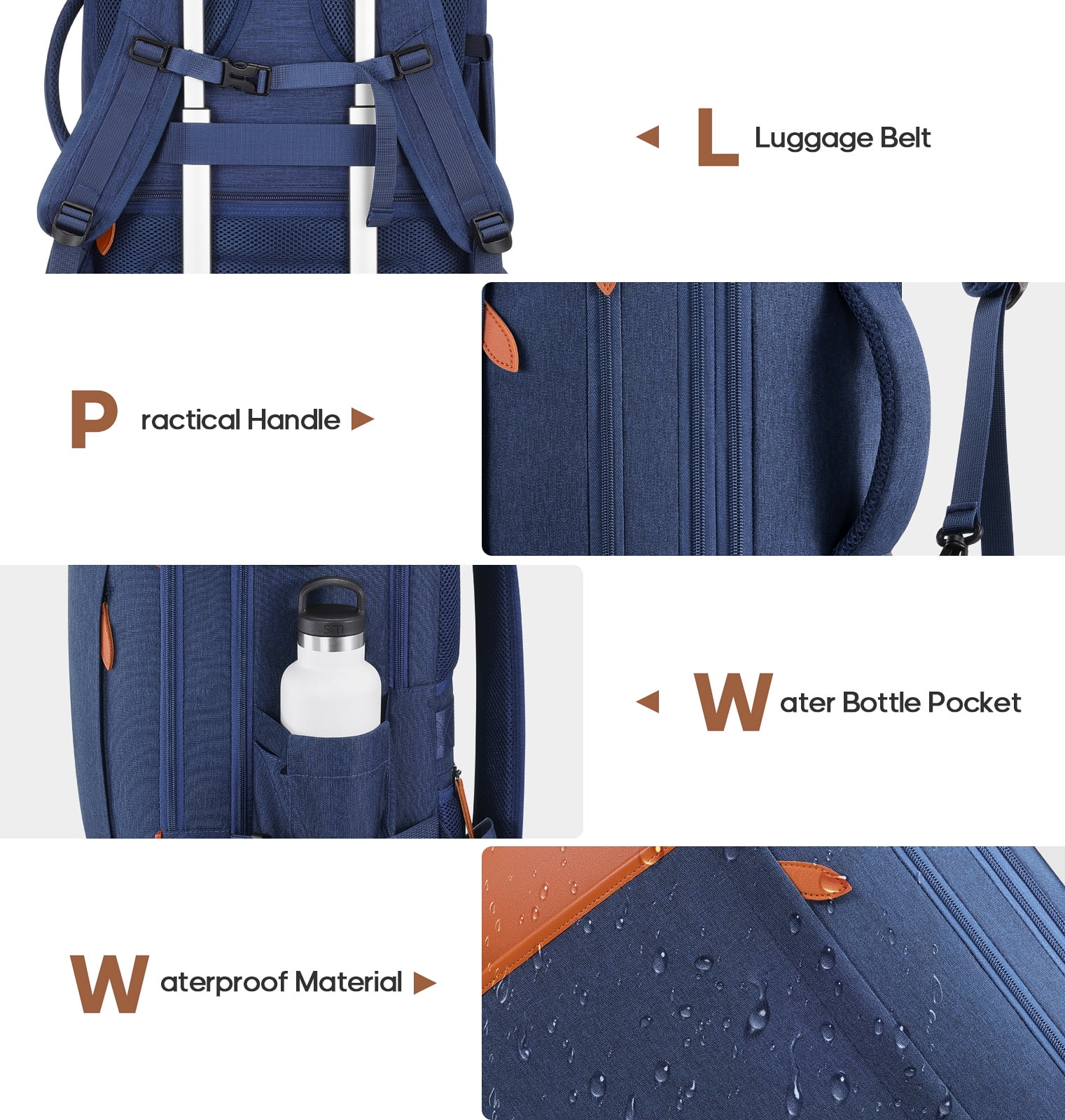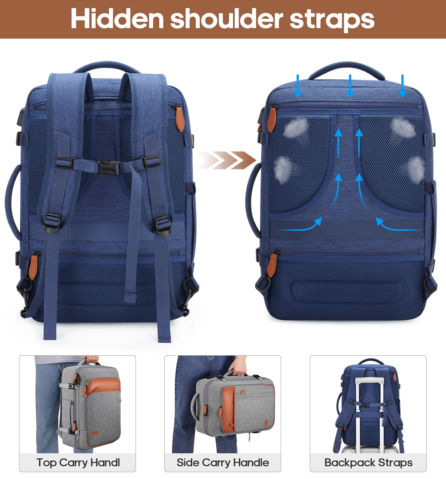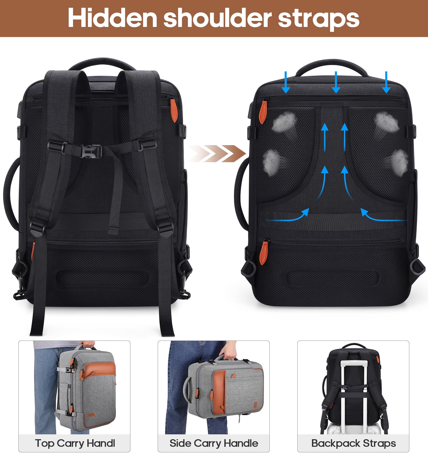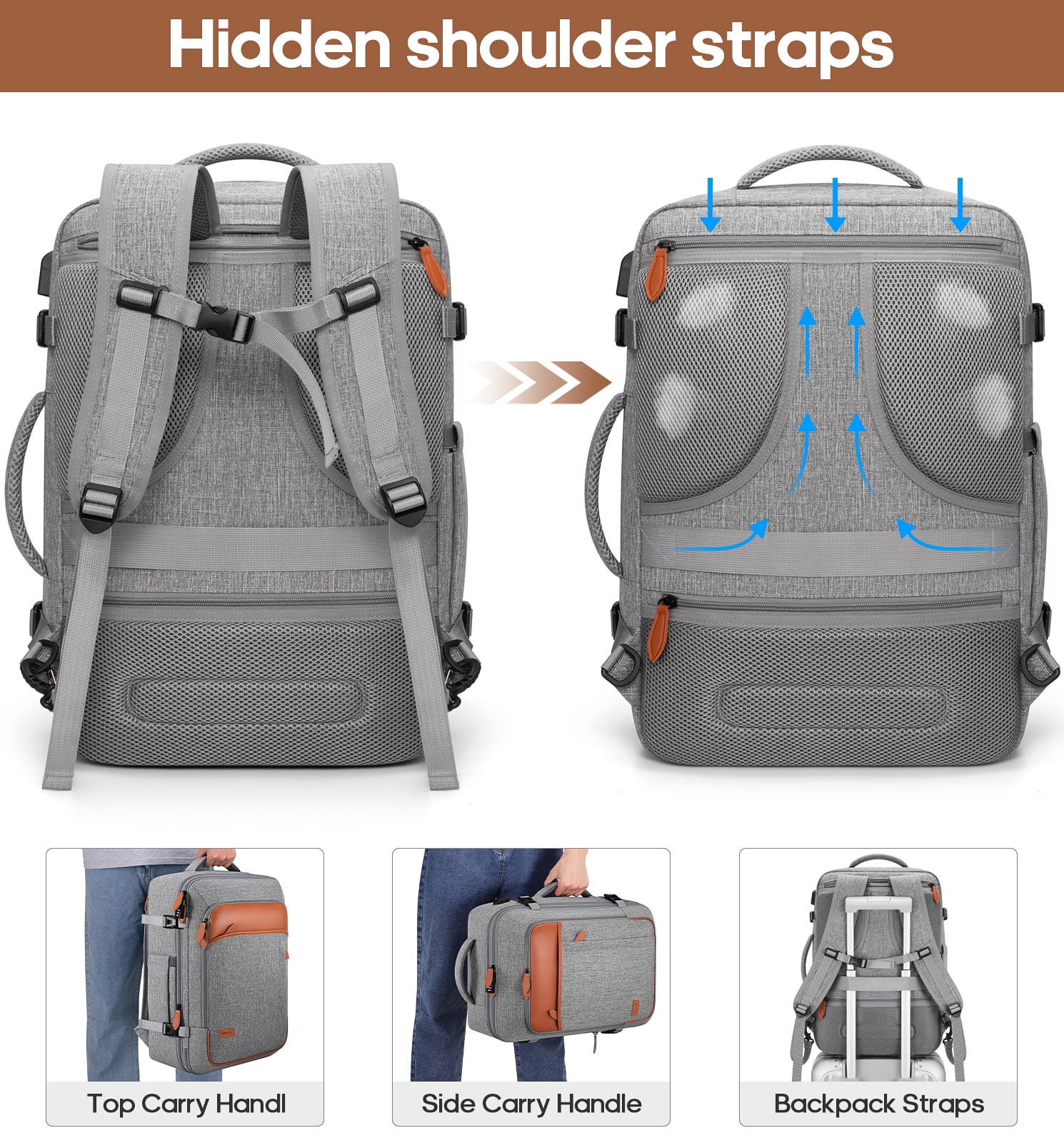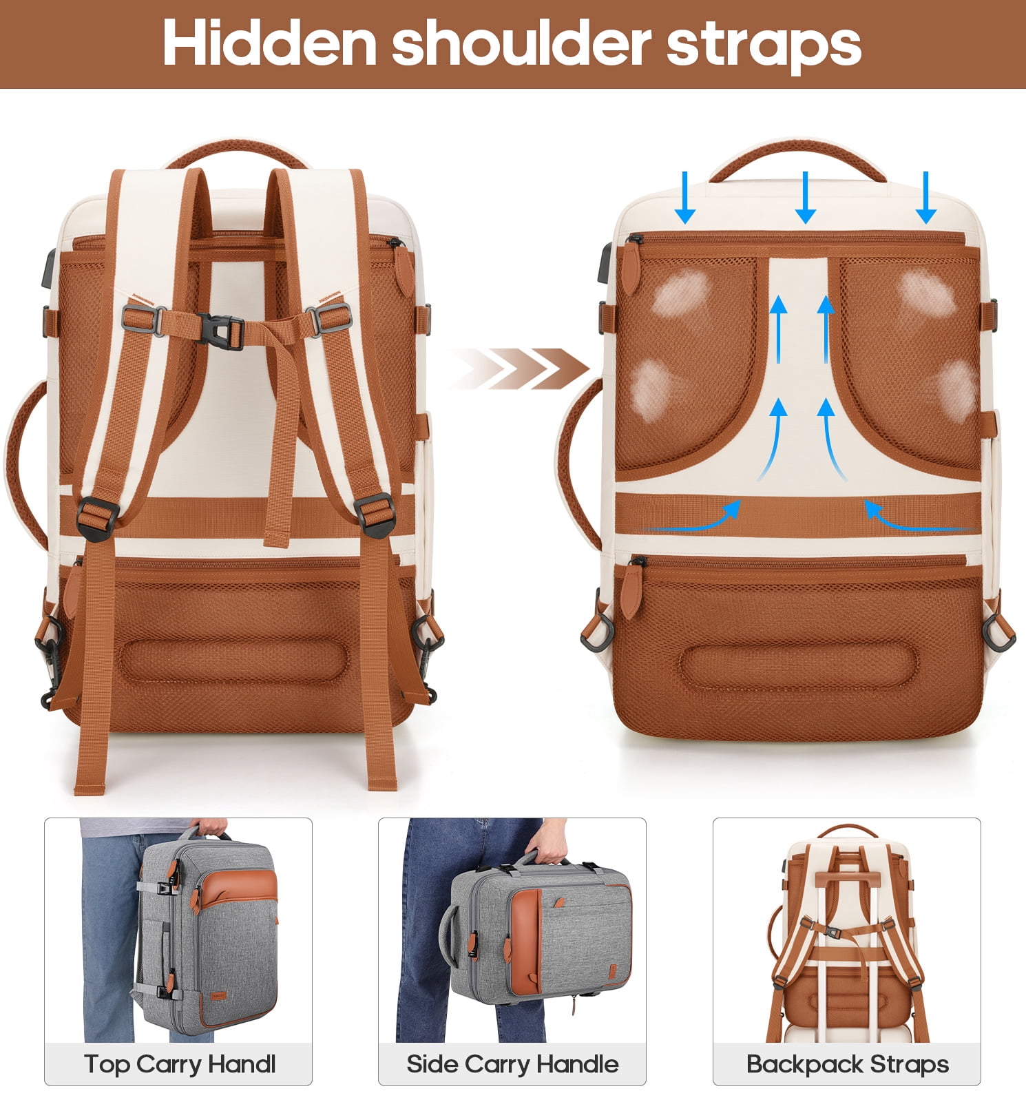 • Convenient Connectivity: Equipped with an external USB charging port and built-in cable for easy device charging, plus a luggage strap for airport convenience.