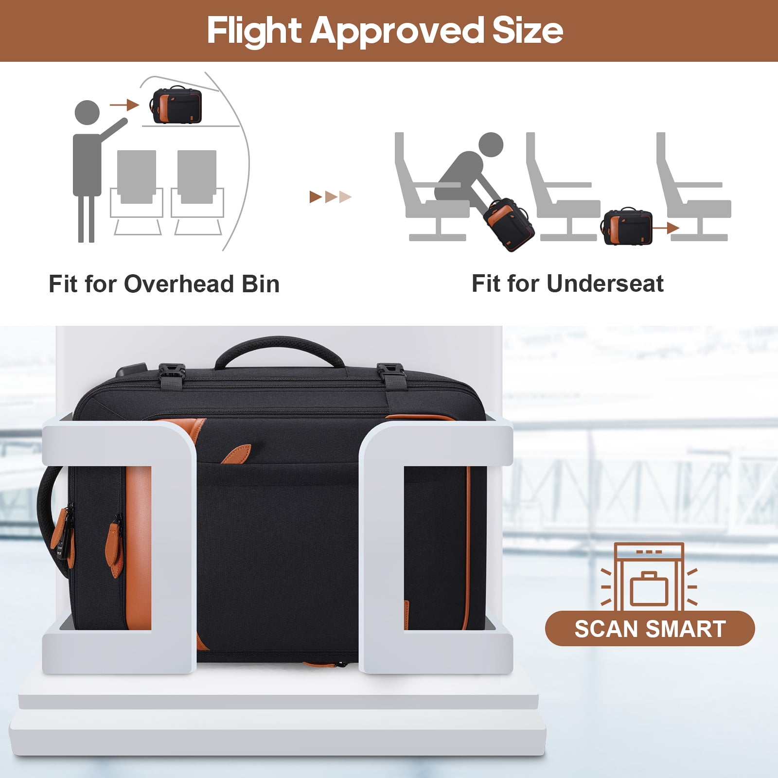 • Flight Approved: Meets airline carry-on requirements, allowing it to be placed under the seat or in the overhead bin for hassle-free travel.