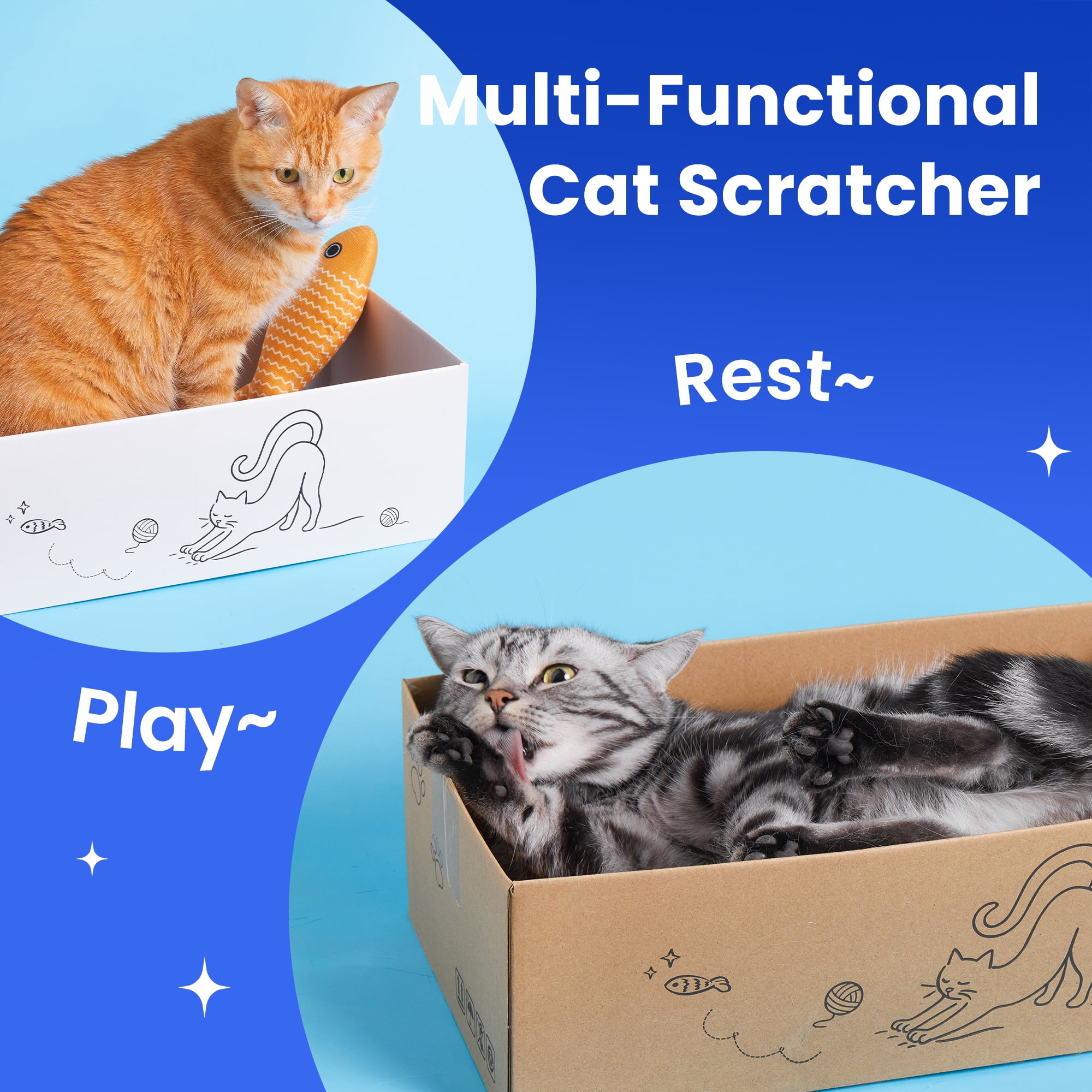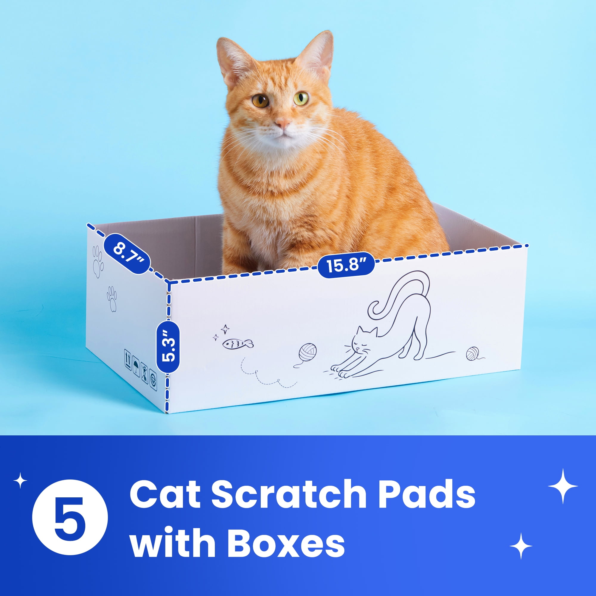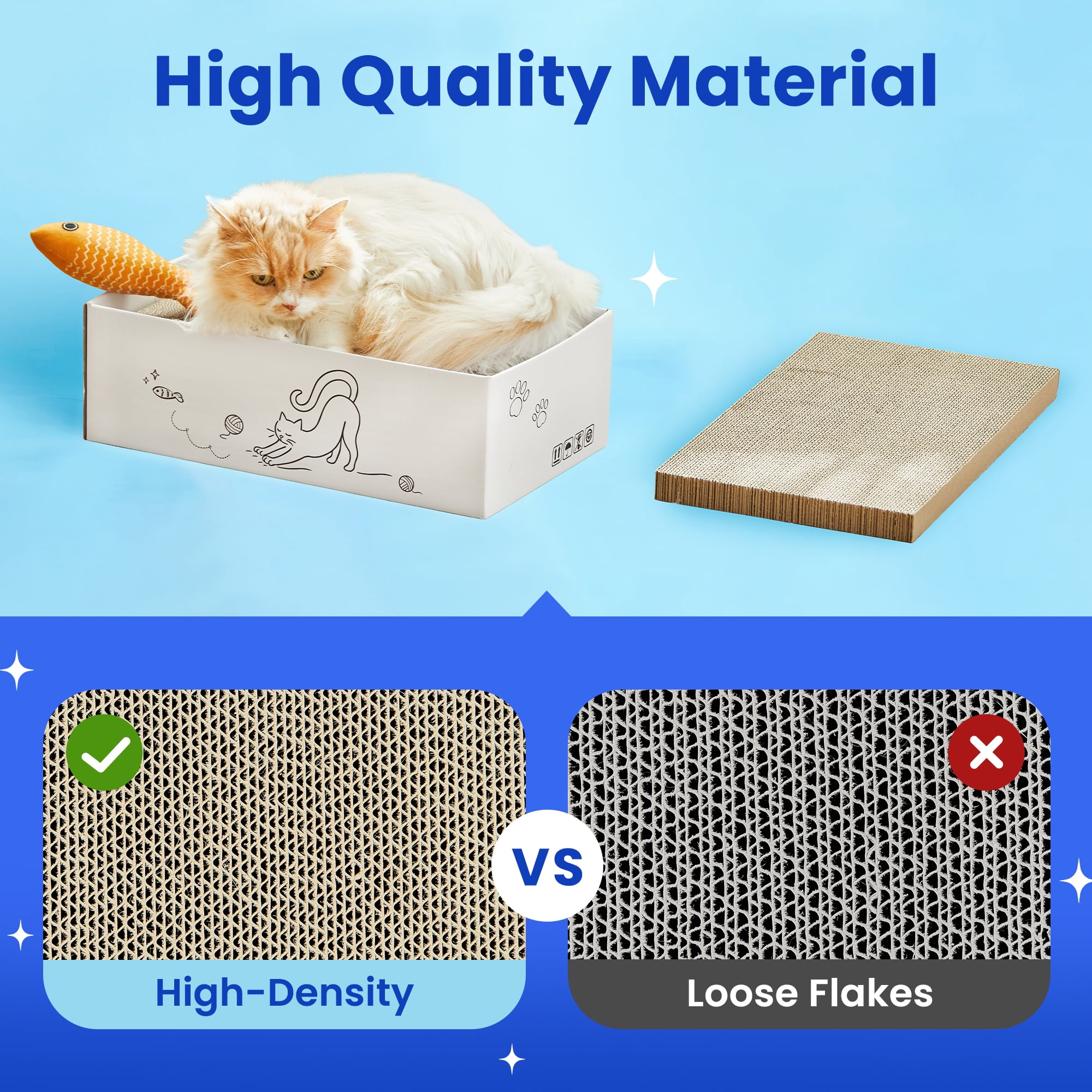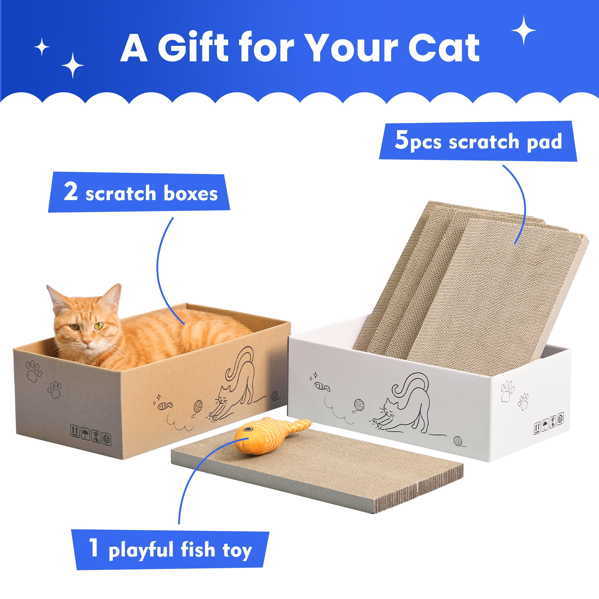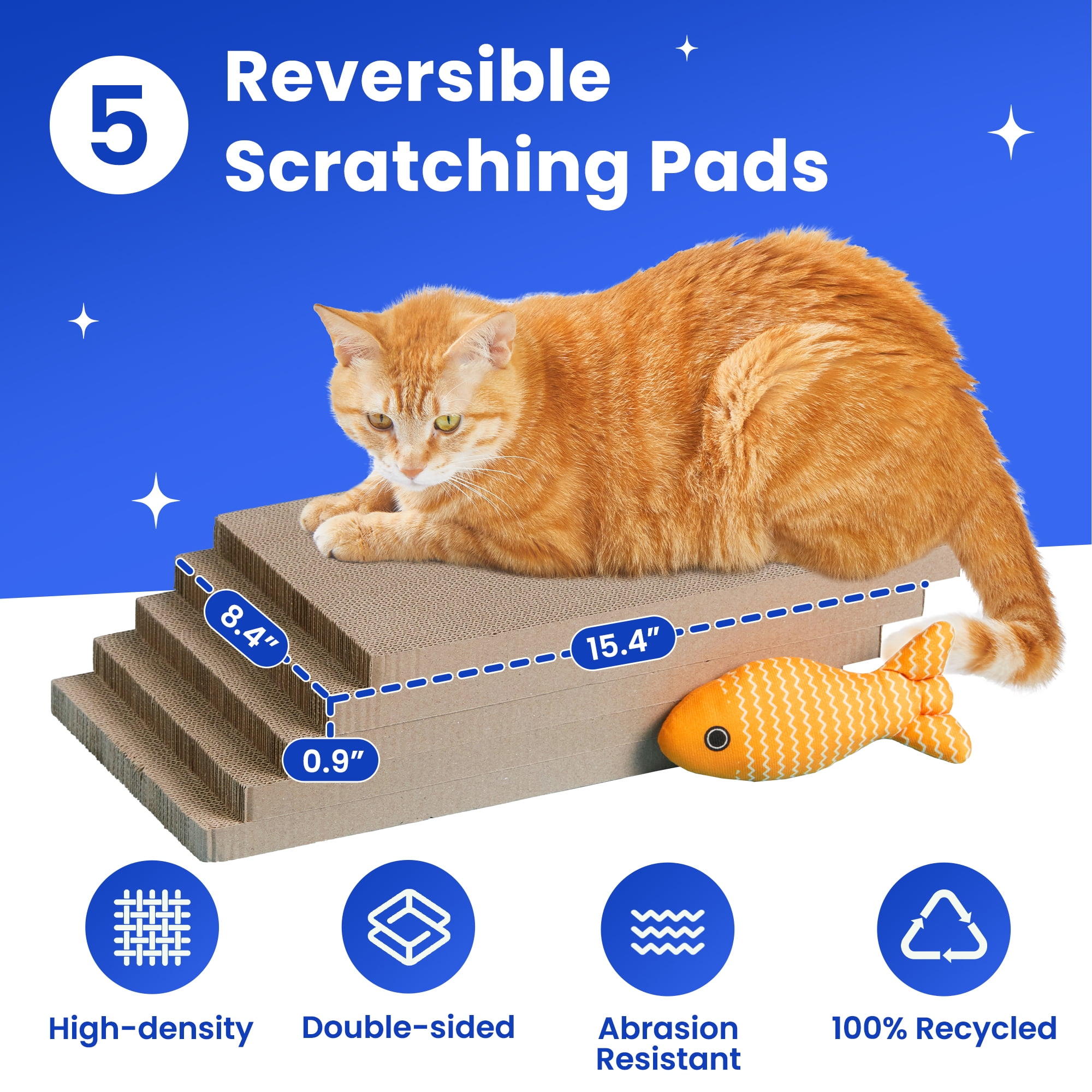 MWPO 5 Pack Cat Scratcher Cardboard, Reversible Corrugated Cardboard Cat Scratching Pad Set with Box and Fish Toy