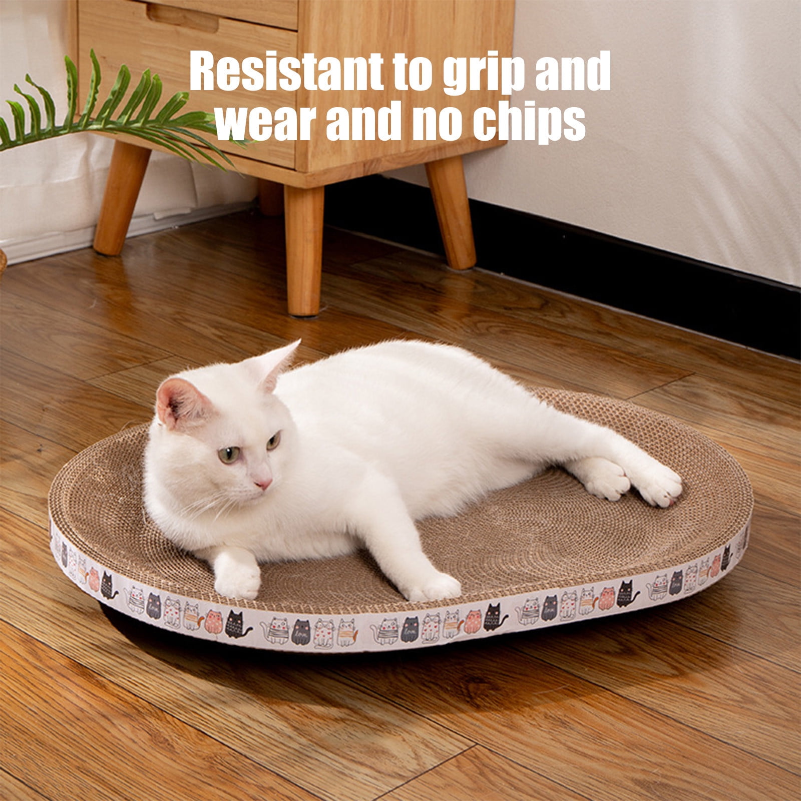 Oval Cardboard Cat Scratcher Bed Lounger Couch for Indoor Cats, Corrugated Cat Scratching Pad Box, Cat Scratch Lounge Furniture Protection (18.5 Inch)