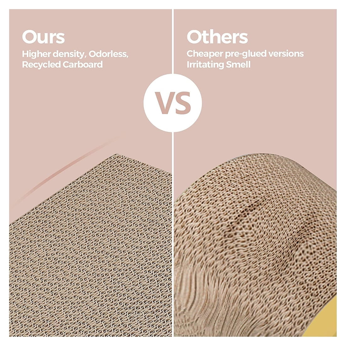 - -Safe and durable: Made out of recycled, cardboard with harmless corn starch glue. Have your cat scratch away and release it’s stress!