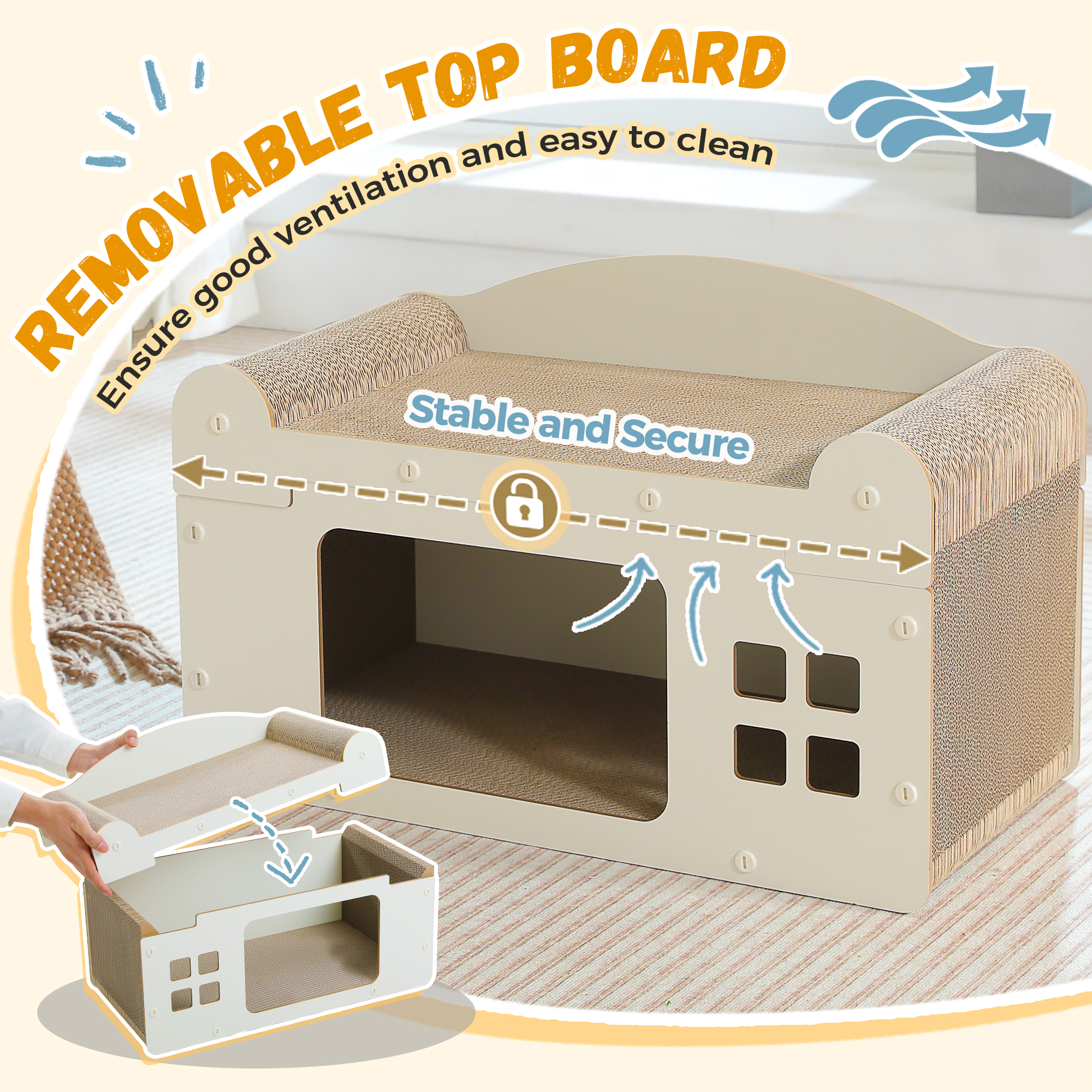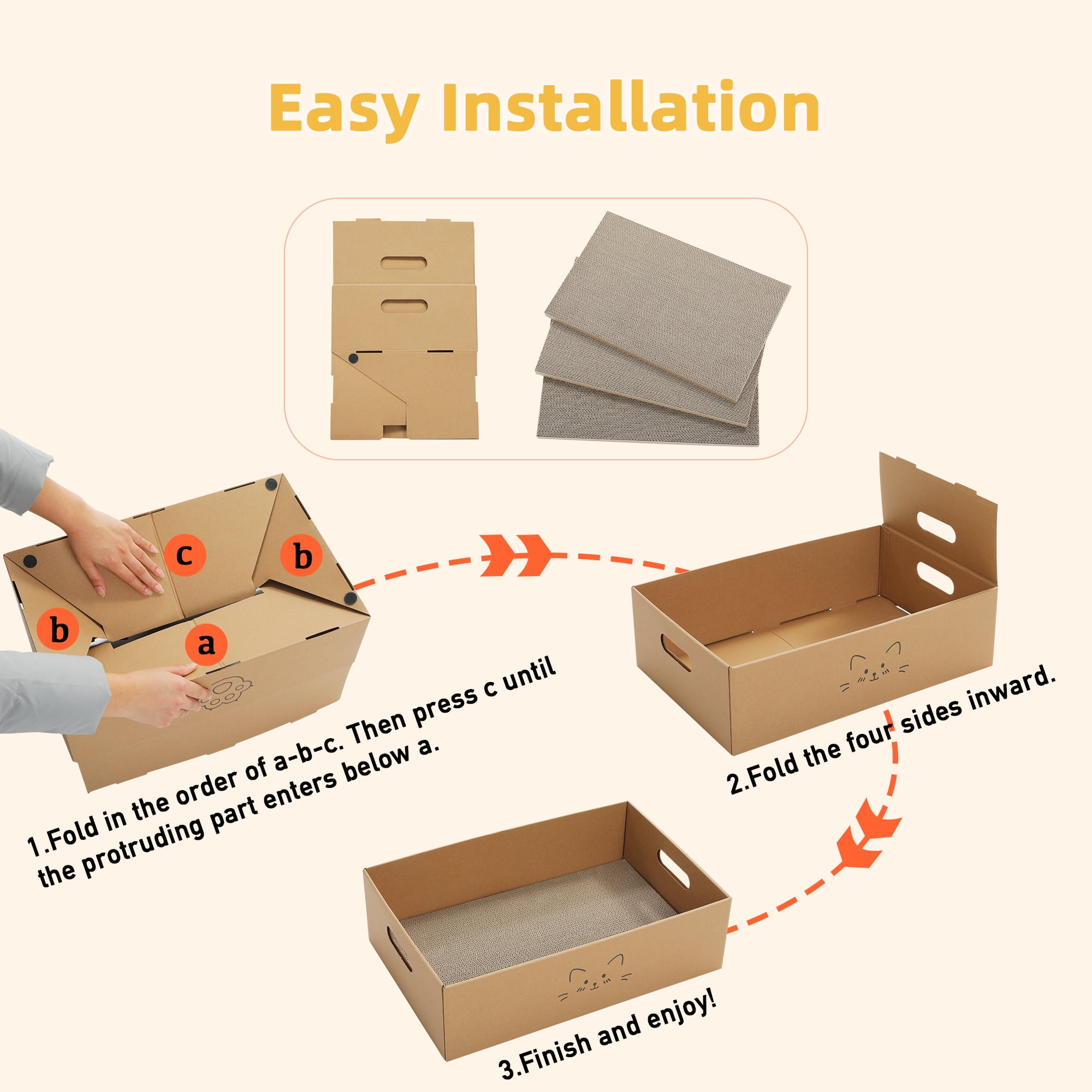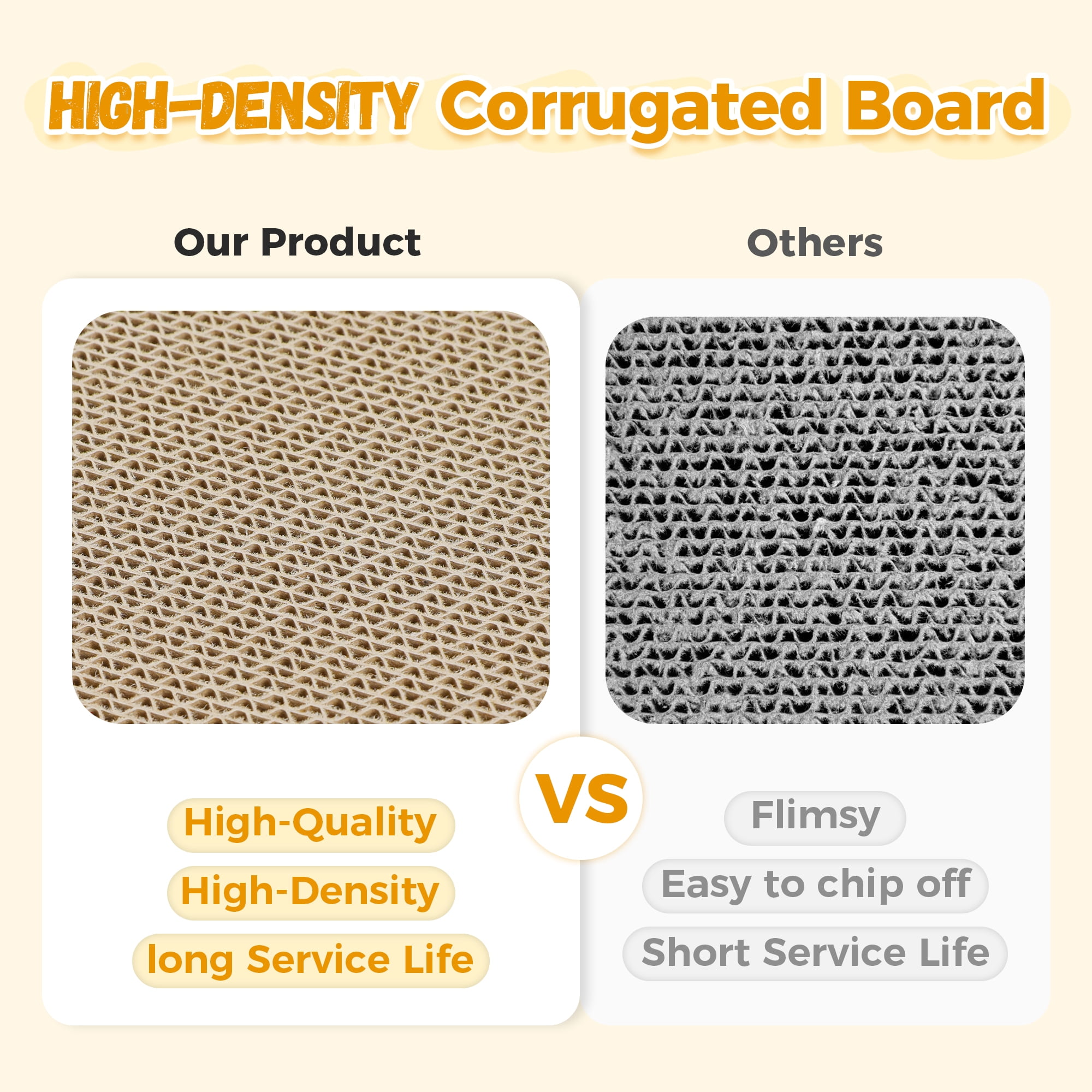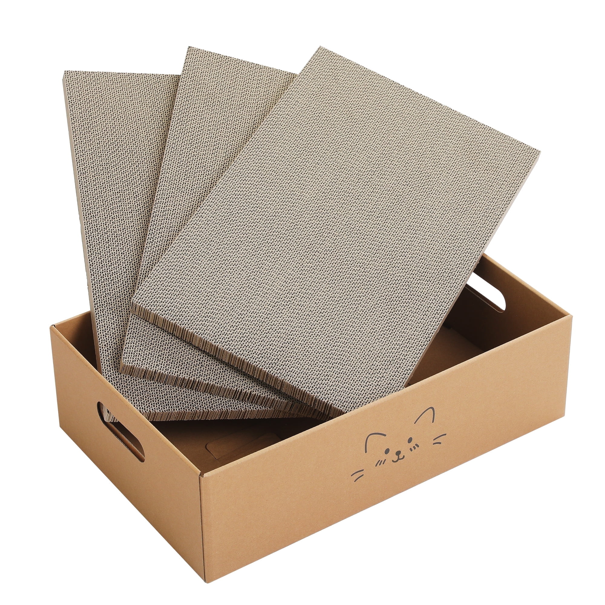 - Made from high-density corrugated cardboard for an extended lifespan. The product includes three interchangeable pieces that can be used on both sides, maximizing material usage and providing your cat with long-lasting scratching enjoyment.