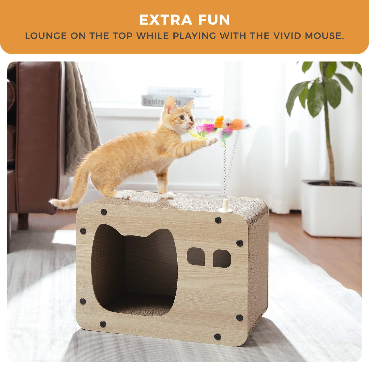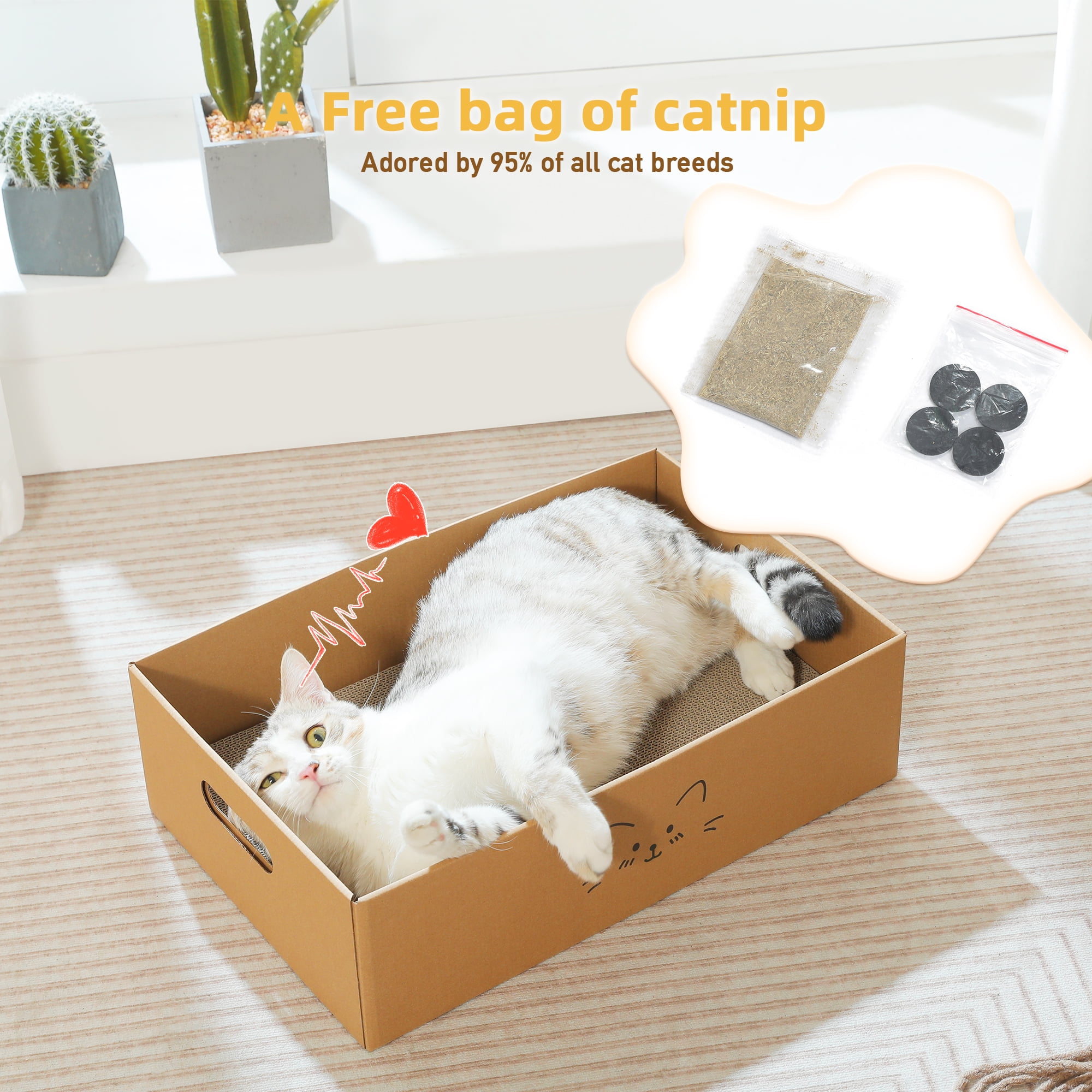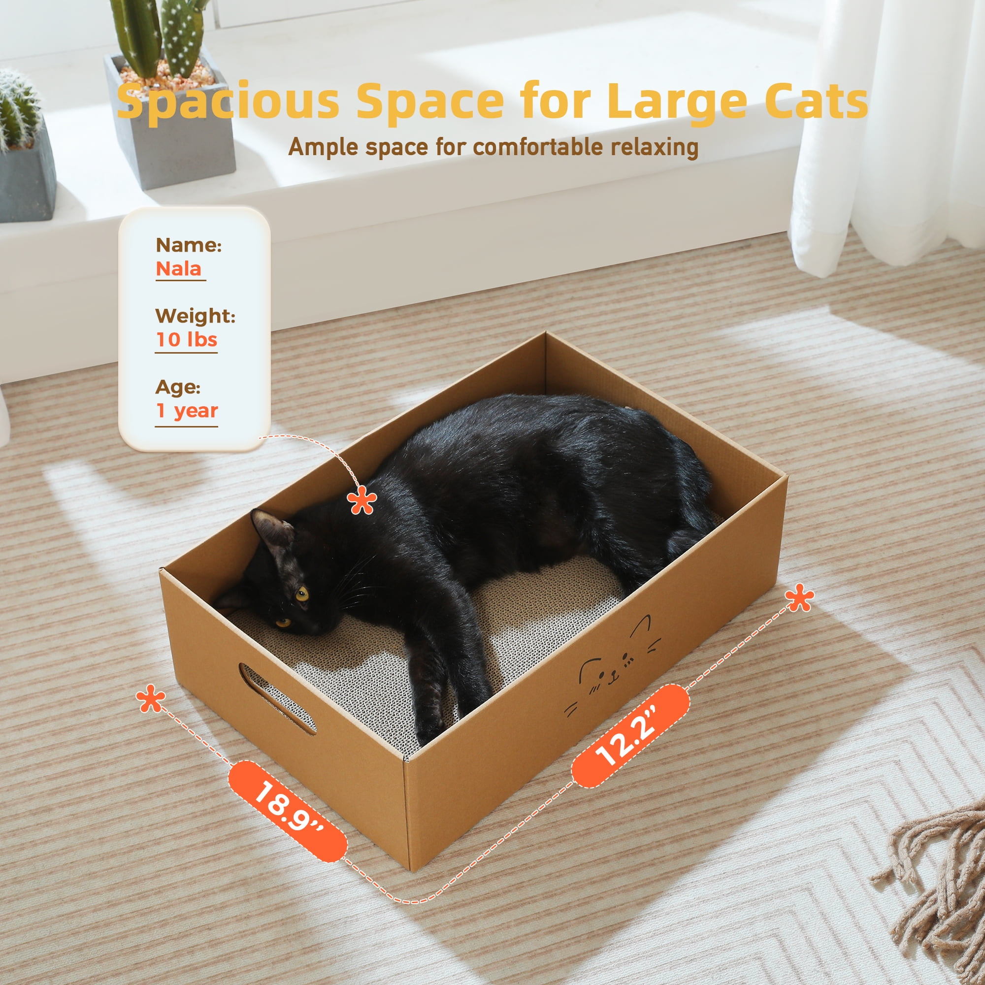 - The box measures 18.9″L x 12.2″W x 5.5″H, providing ample space for your cat to play and relax comfortably.