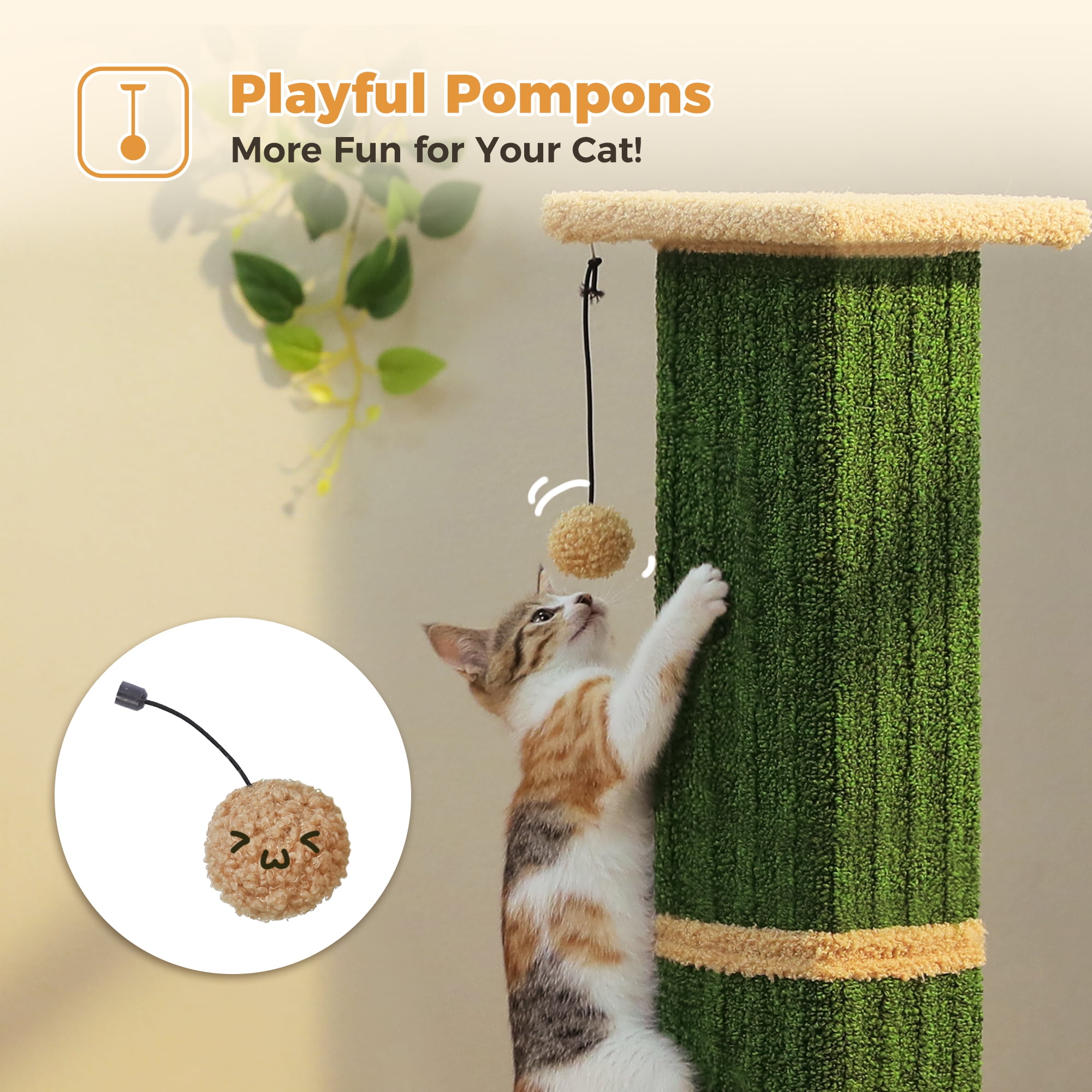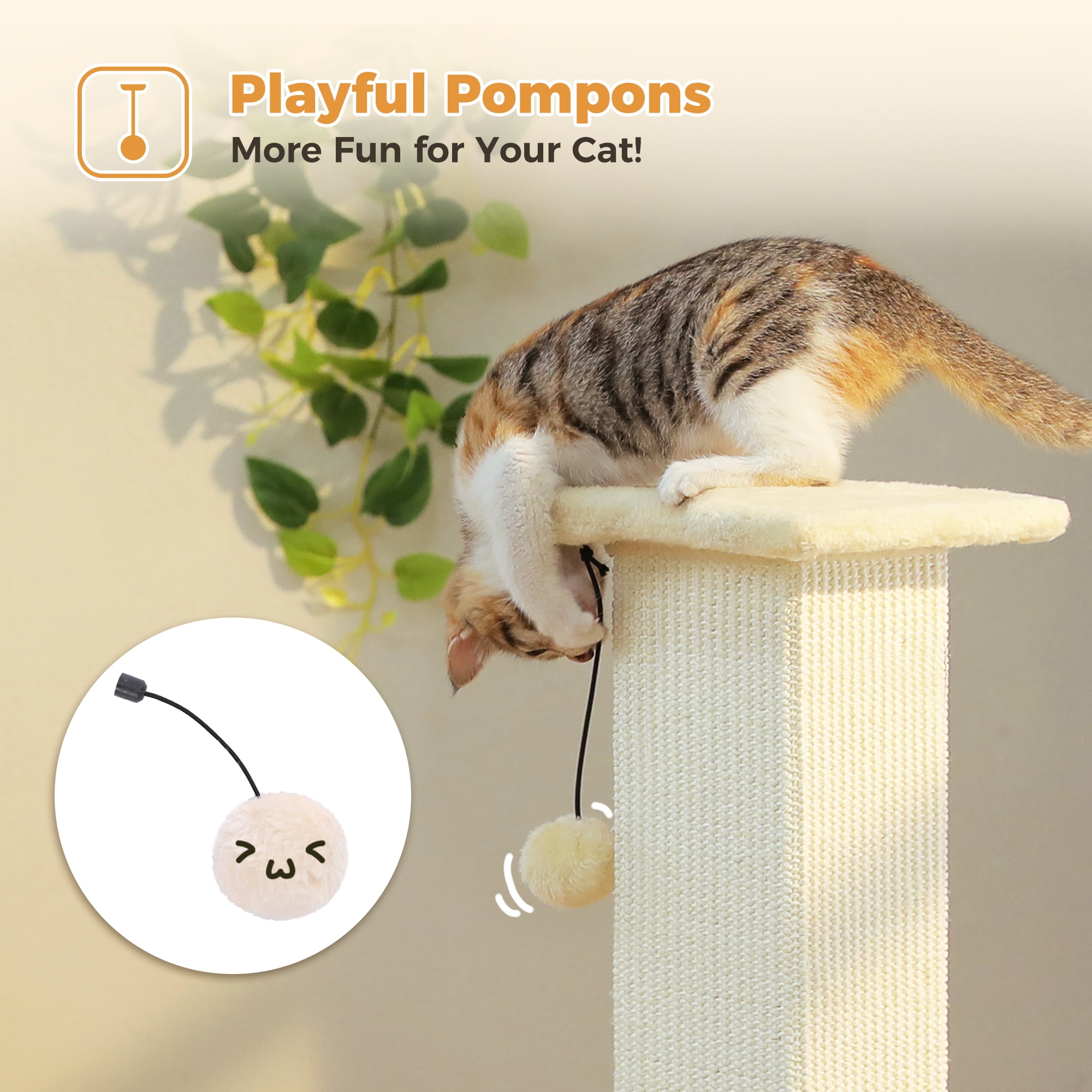 Engaging Plush Playball: This cat scratcher for indoor cat includes a playful dangling ball that bounces with every touch! The engaging toy keeps your pet entertained while they scratch, blending fun and claw care. Made from tough materials to survive energetic play.