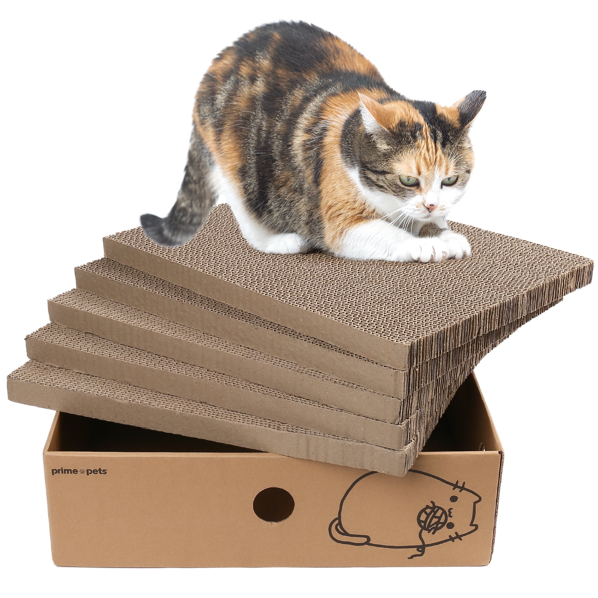 Prime Pets 5 Pack XL Wide Cat Scratcher Cardboards with Box, Reversible Corrugate Cat Scratch Pad