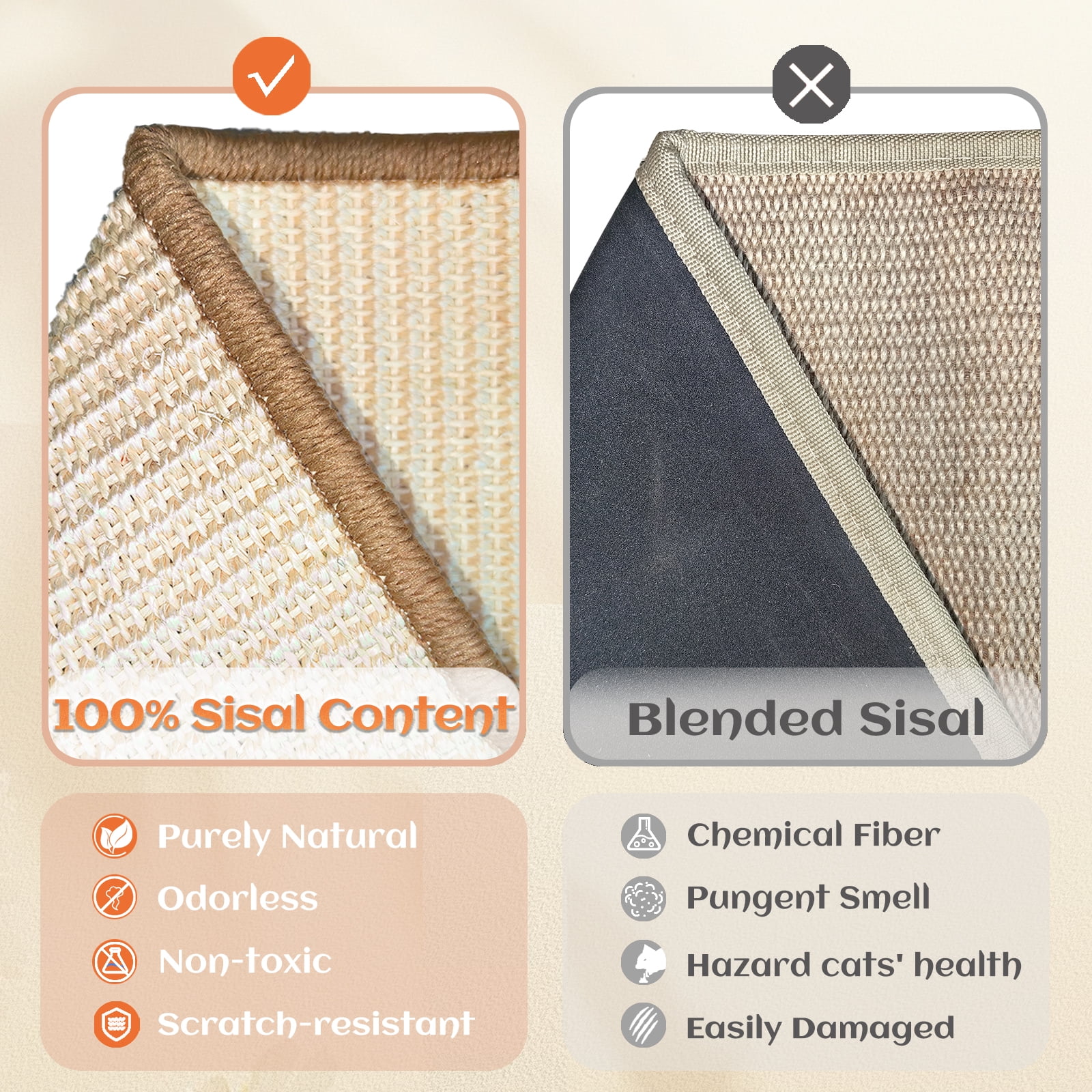 - 100% Sisal Content: It does not contain any artificial chemical fabrics. It is a pure natural sisal mat, durable and non-shedding. Replaceable.