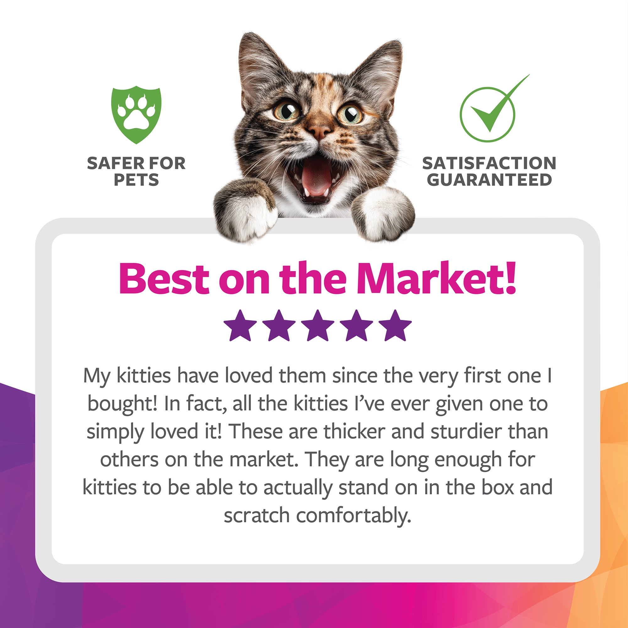 - Ultimate Scratching Satisfaction: This versatile scratcher can be laid flat on the floor or propped against the wall to meet your cat’s preferred scratching angle and natural urges to scratch and stretch.