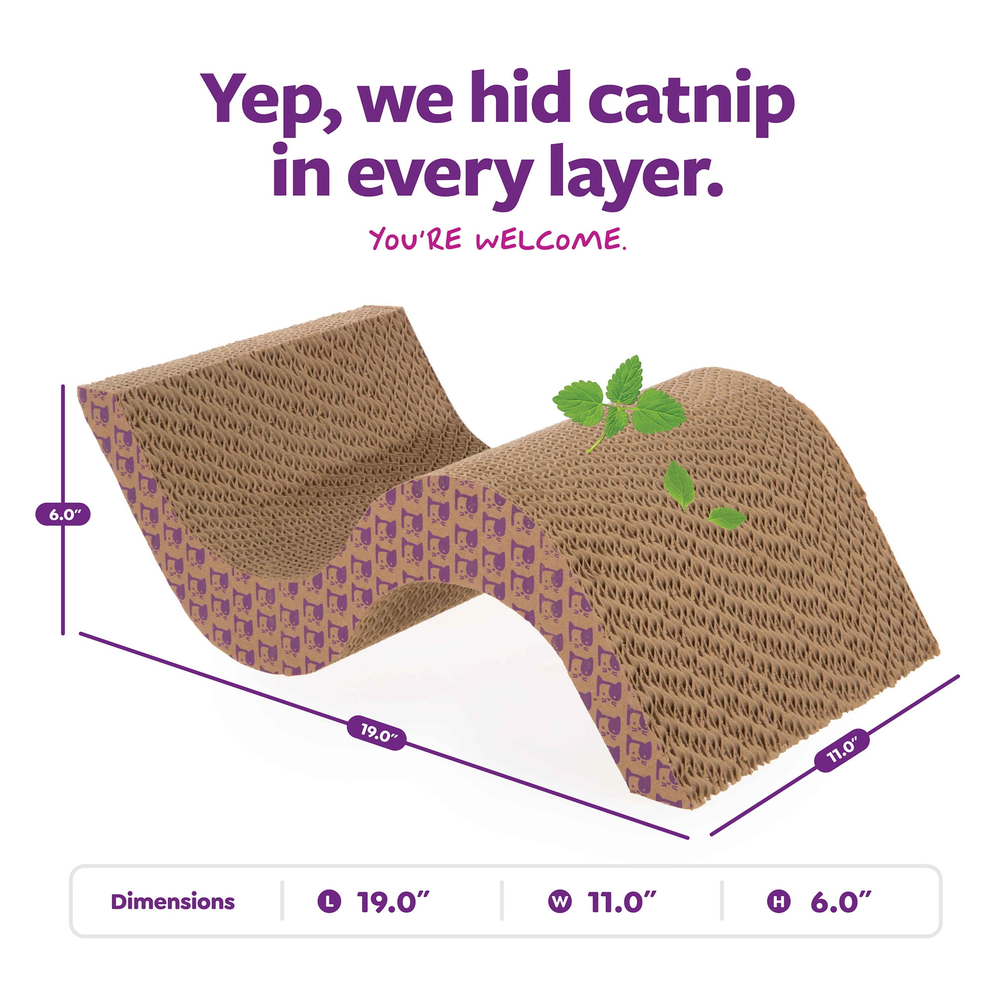 - Catnip Infusion Technology: Each layer of corrugate is infused with concentrated catnip, ensuring long-term appeal and excitement to felines as catnip scent is released with every scratch; never deal with the mess of loose catnip ever again.
