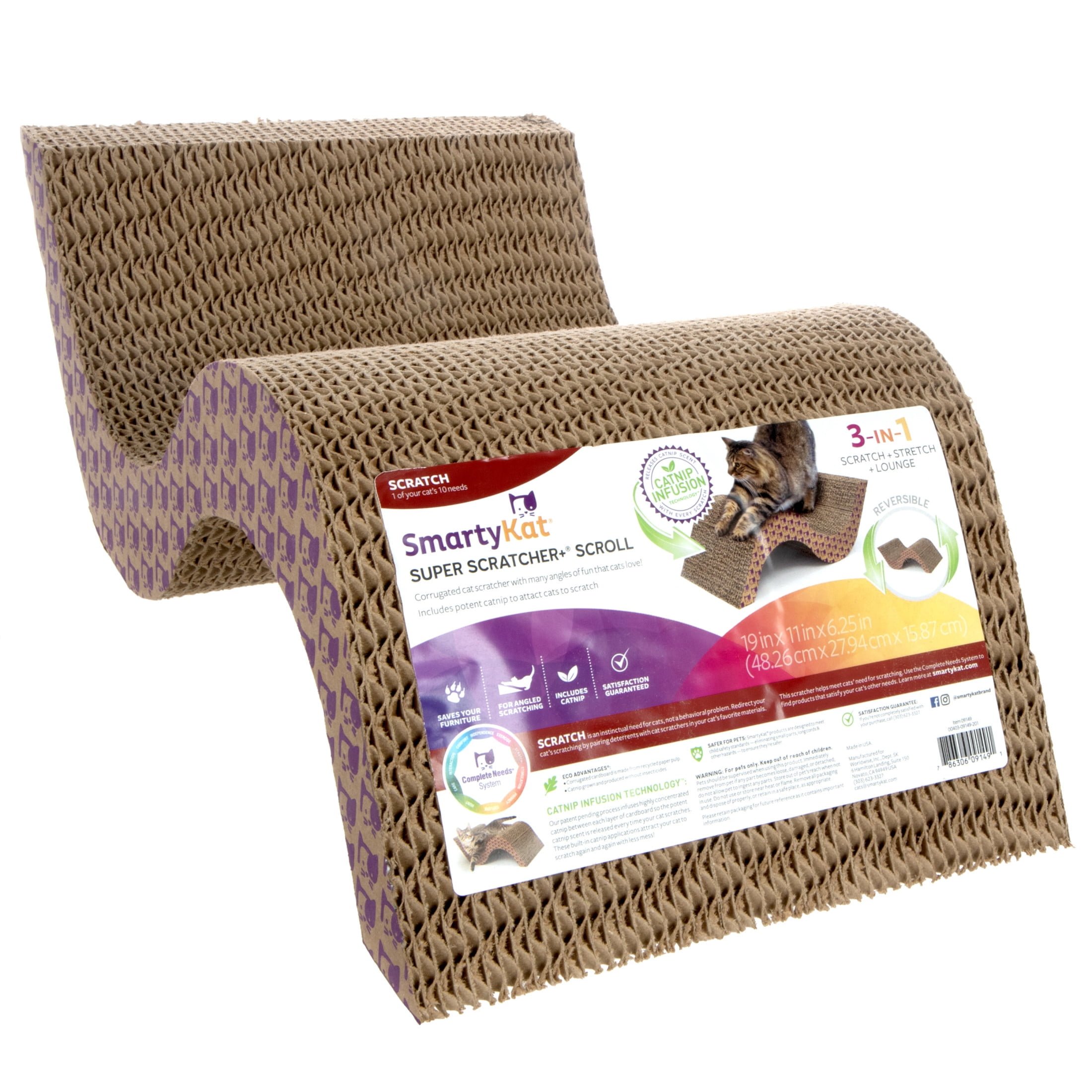 SmartyKat Super Scratcher & Scroll, Wide Corrugated Cat Scratcher for Indoor Cat & Kittens, Catnip Infusion Technology, Recycled Material, Brown