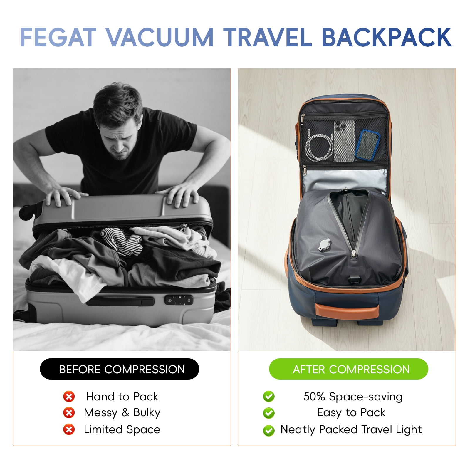 - Spacious Capacity: This vacuum backpack offers a 60L expandable capacity, including a vacuum-sealed compartment for 4-5 days of clothing, a laptop compartment, and a dry/wet separation bag.