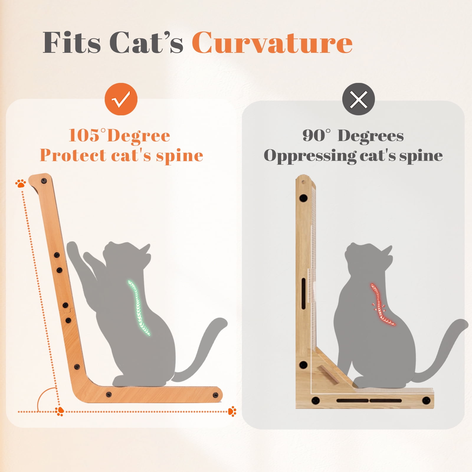 • Unique Design: 105° tilt angle, 15° more than the vertical cat scratching board, one more degree of thoughtfulness. It protects the cat’s spine from compression and makes it play more voluntarily. with bell at the bottom and the cat teaser, cats can play to their heart’s content.