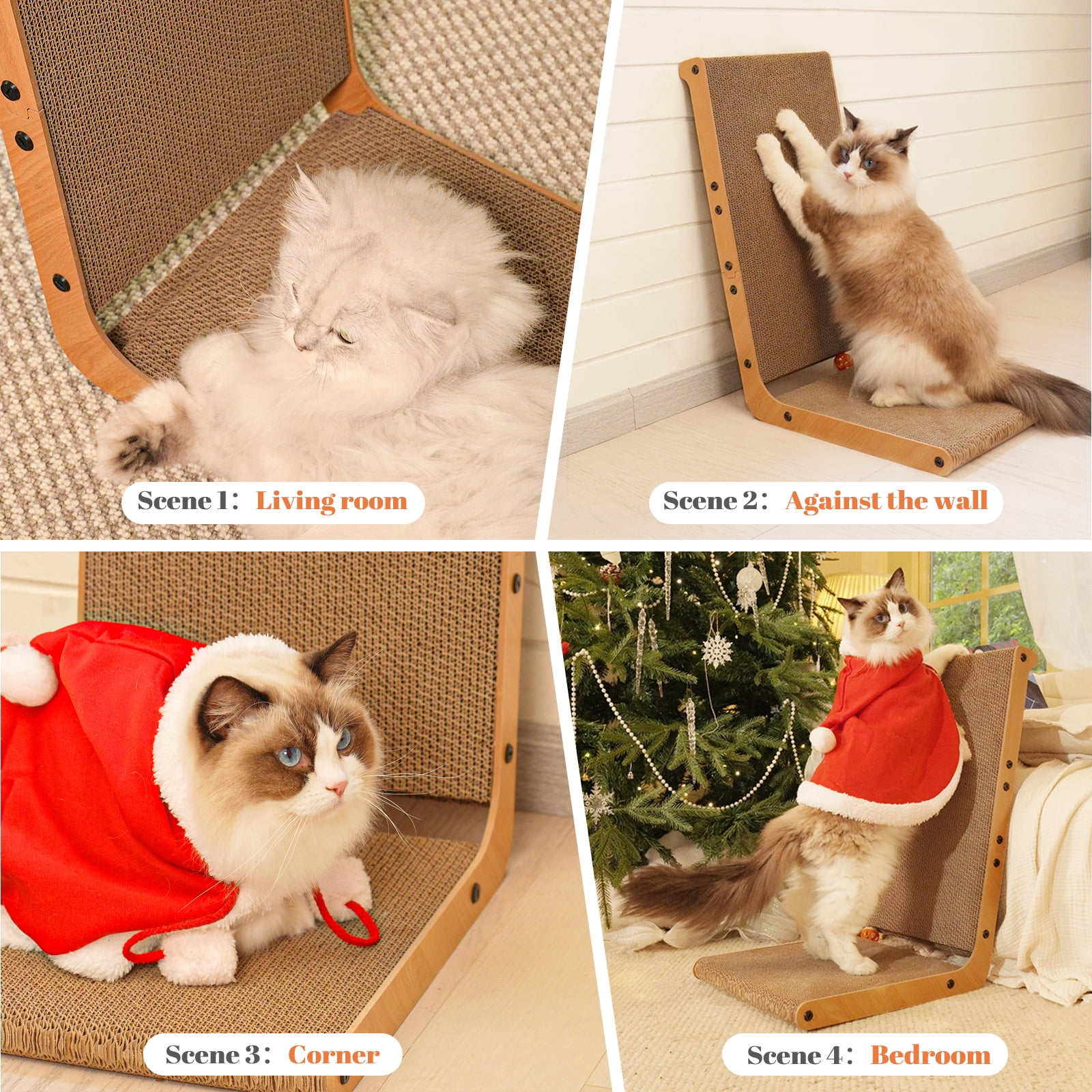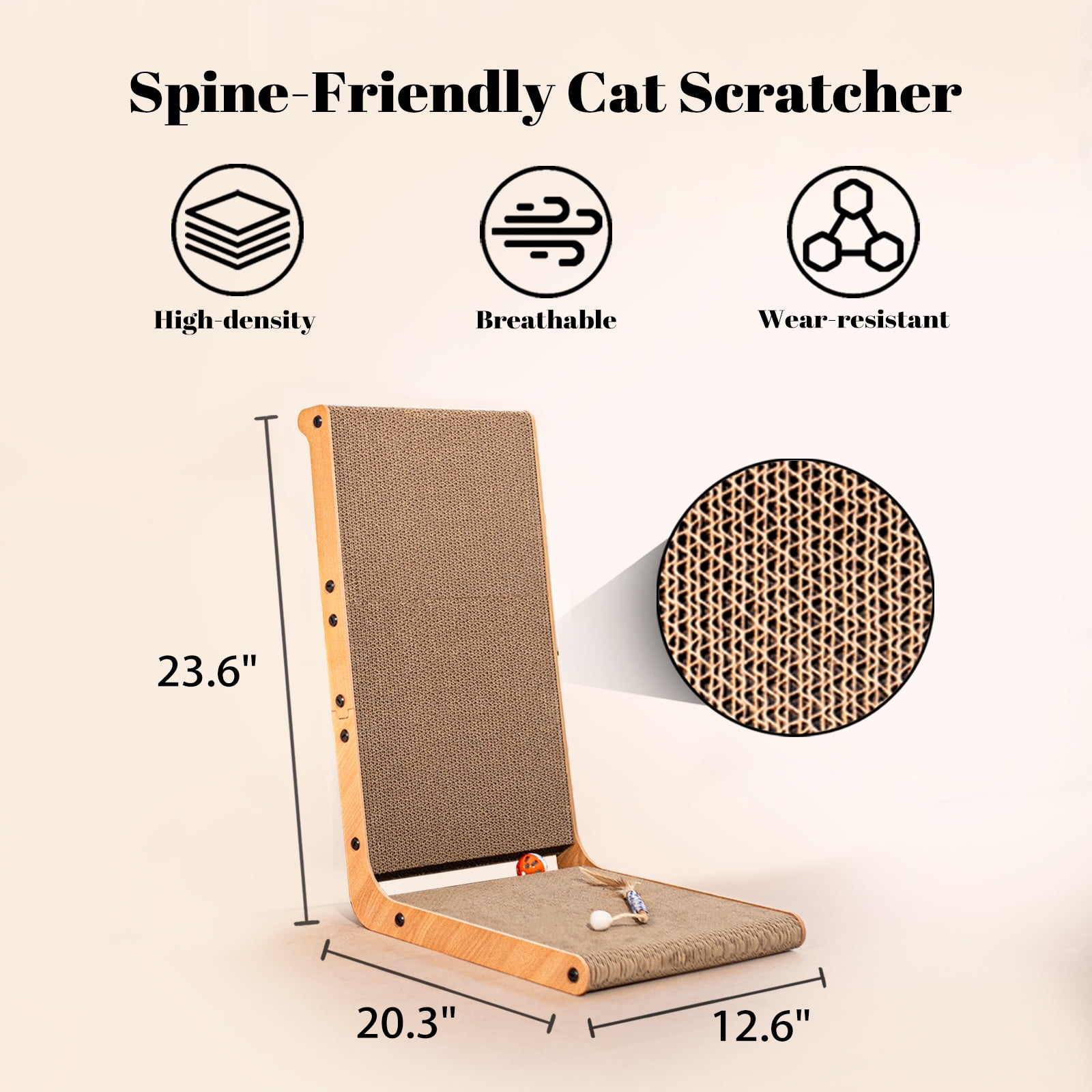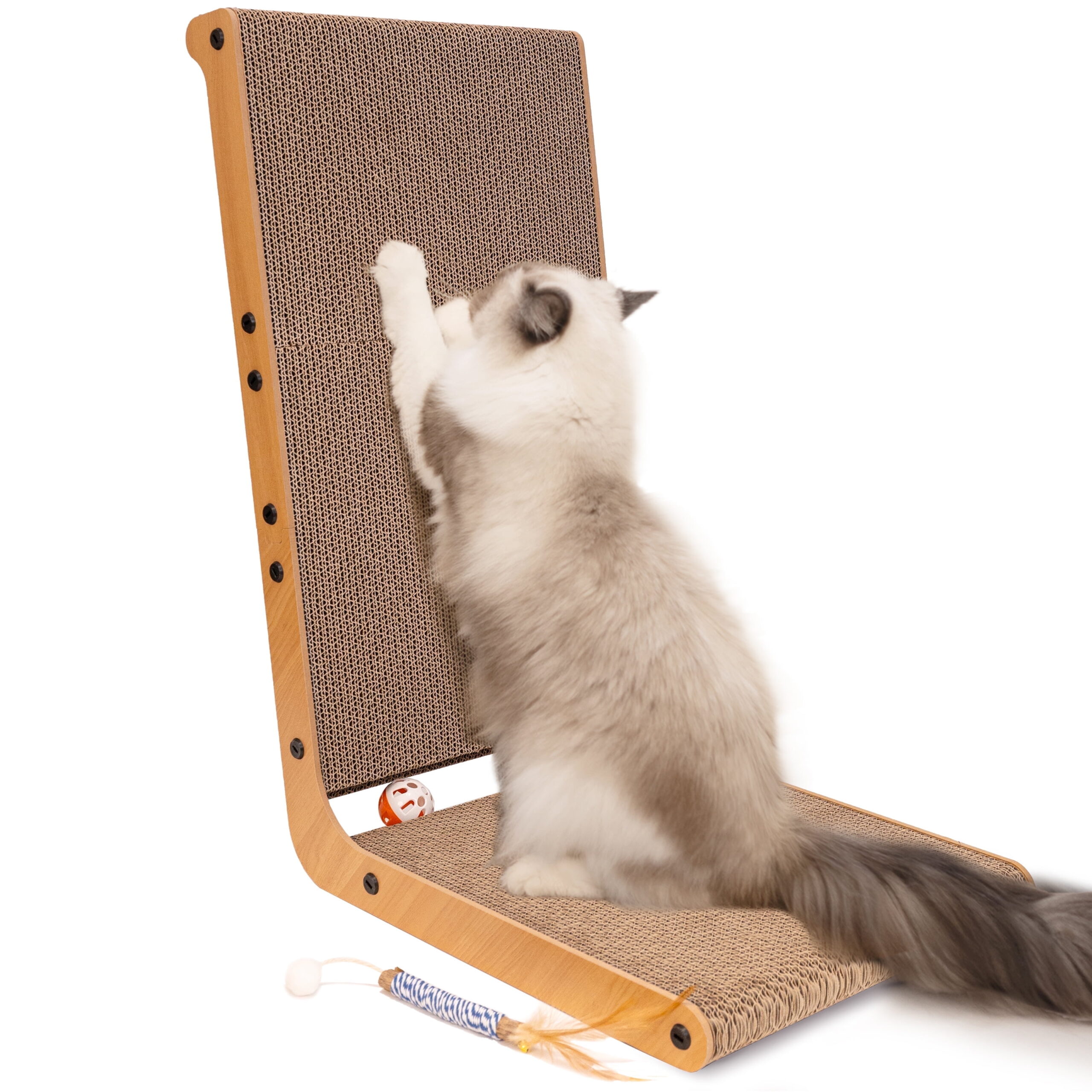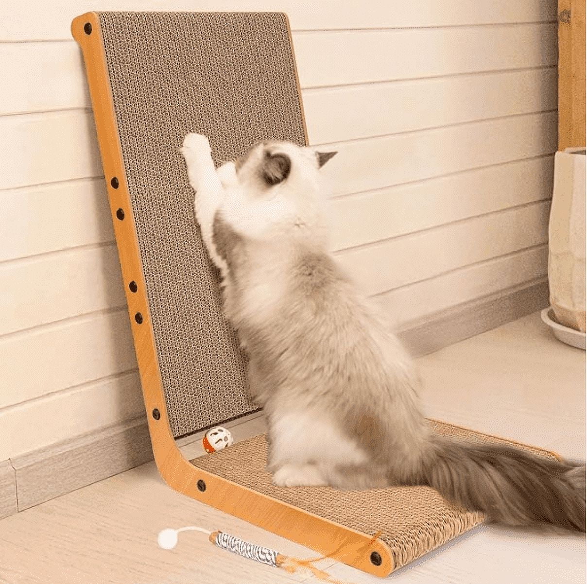 CheerPals Cat Scratcher, 12.6″x20.3″x23.6″ L-Shaped Scratching Board,120° Scratch Post with Bell Teaser-wand for Indoor